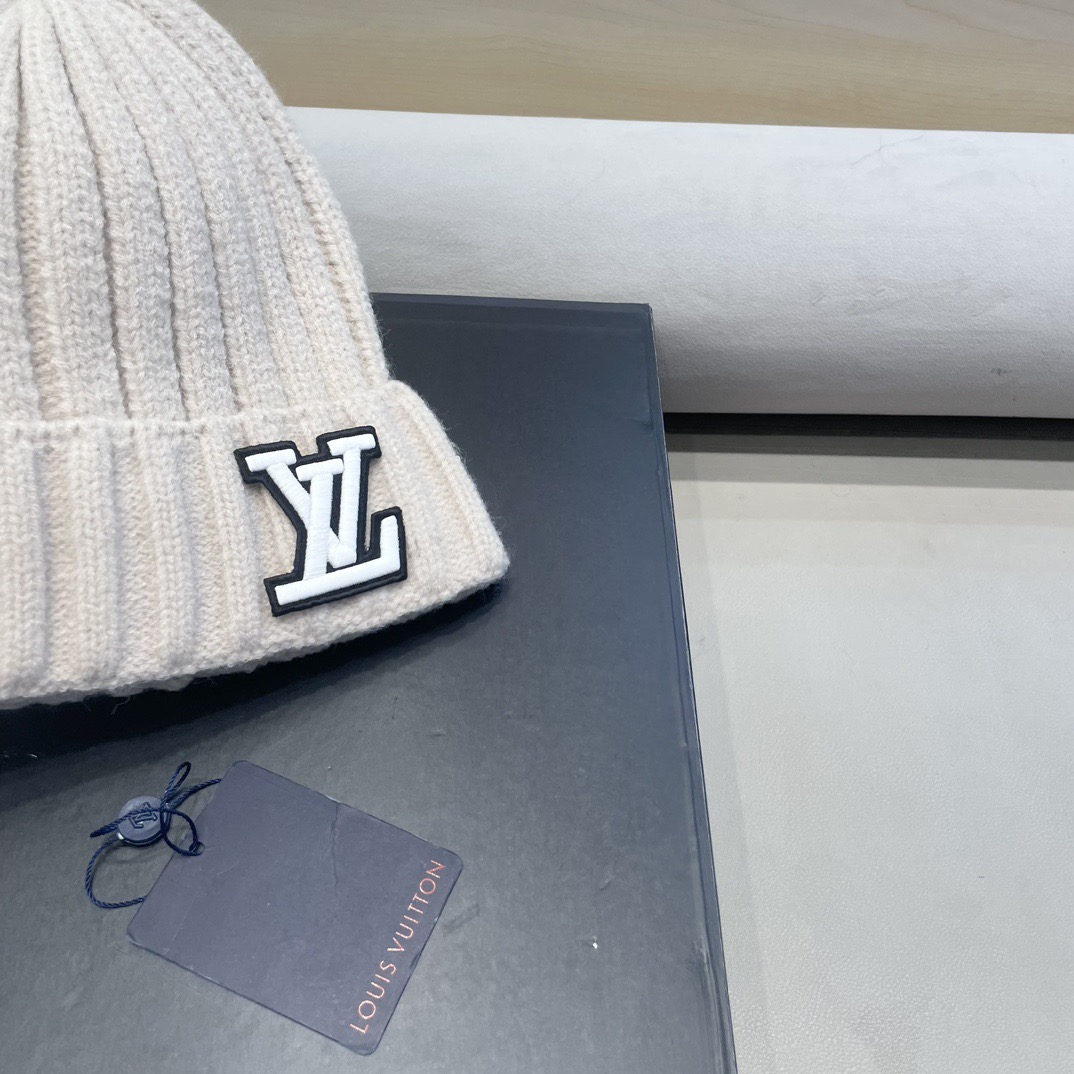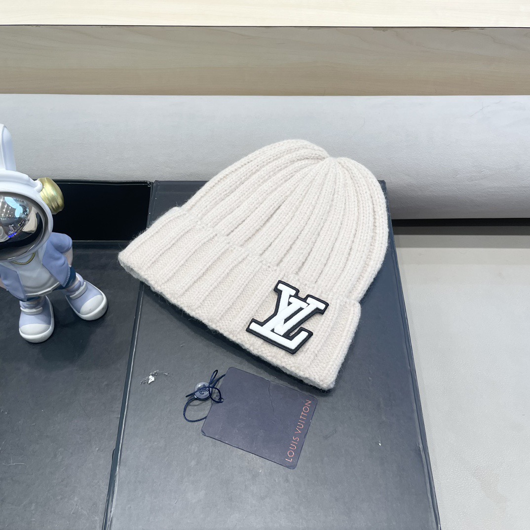 P110 lv路易威登大头围粗毛线帽子女秋冬季宽松保暖堆堆冷帽大脸显脸小针织护耳帽