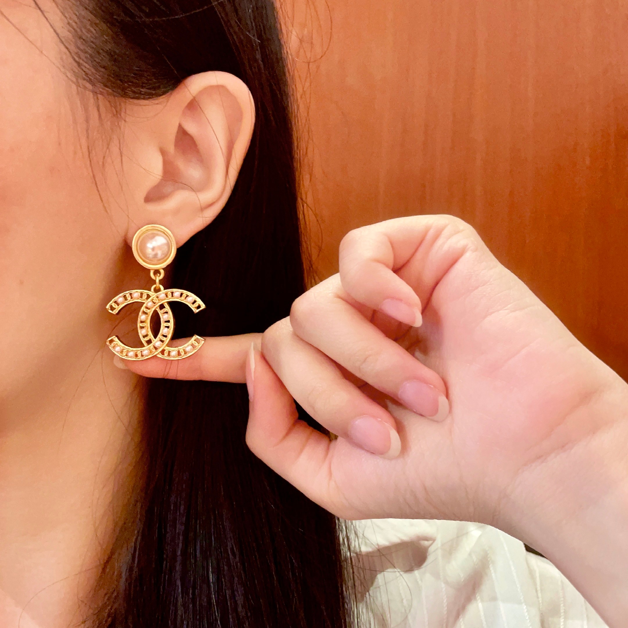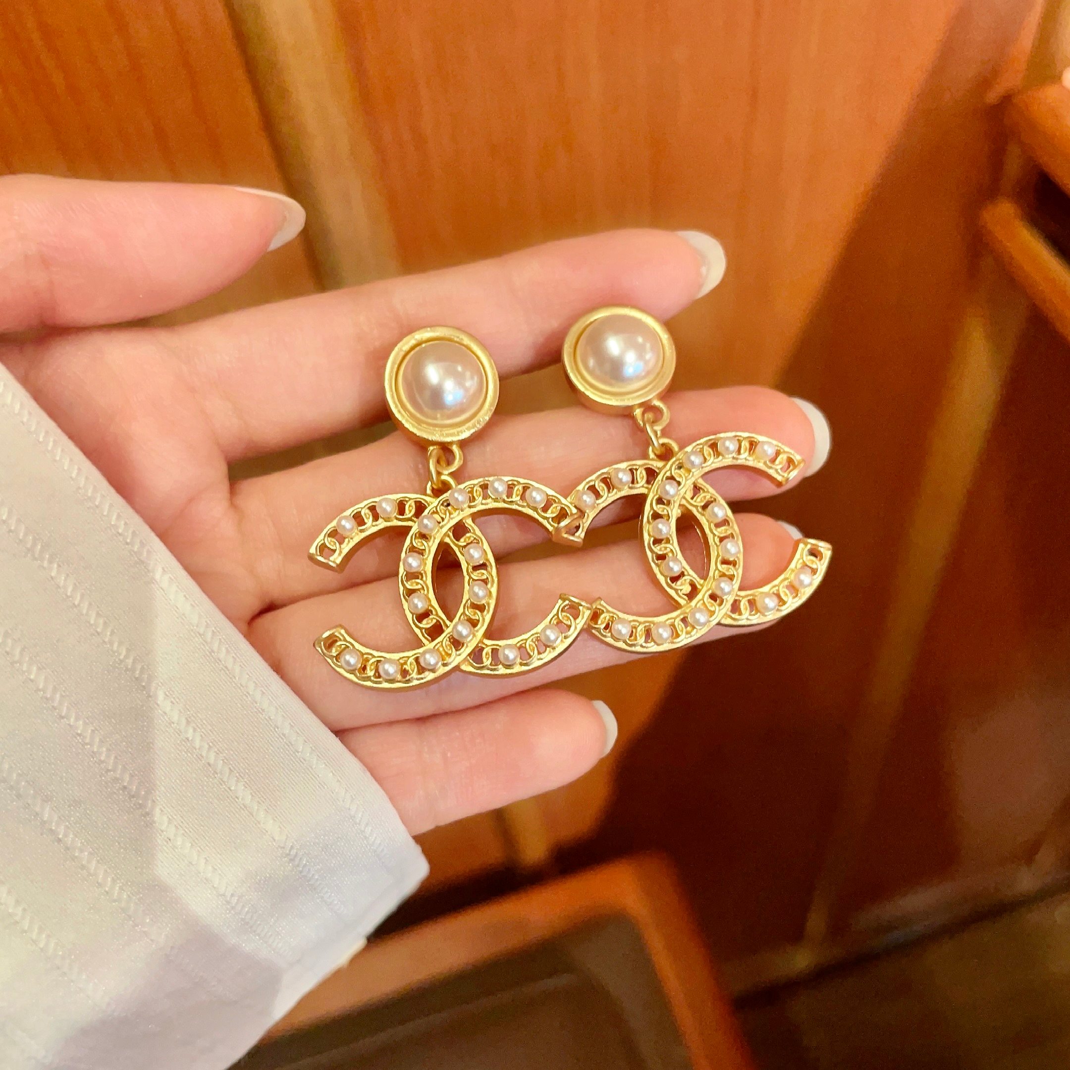 P130 香奈儿✨珍珠双C耳环