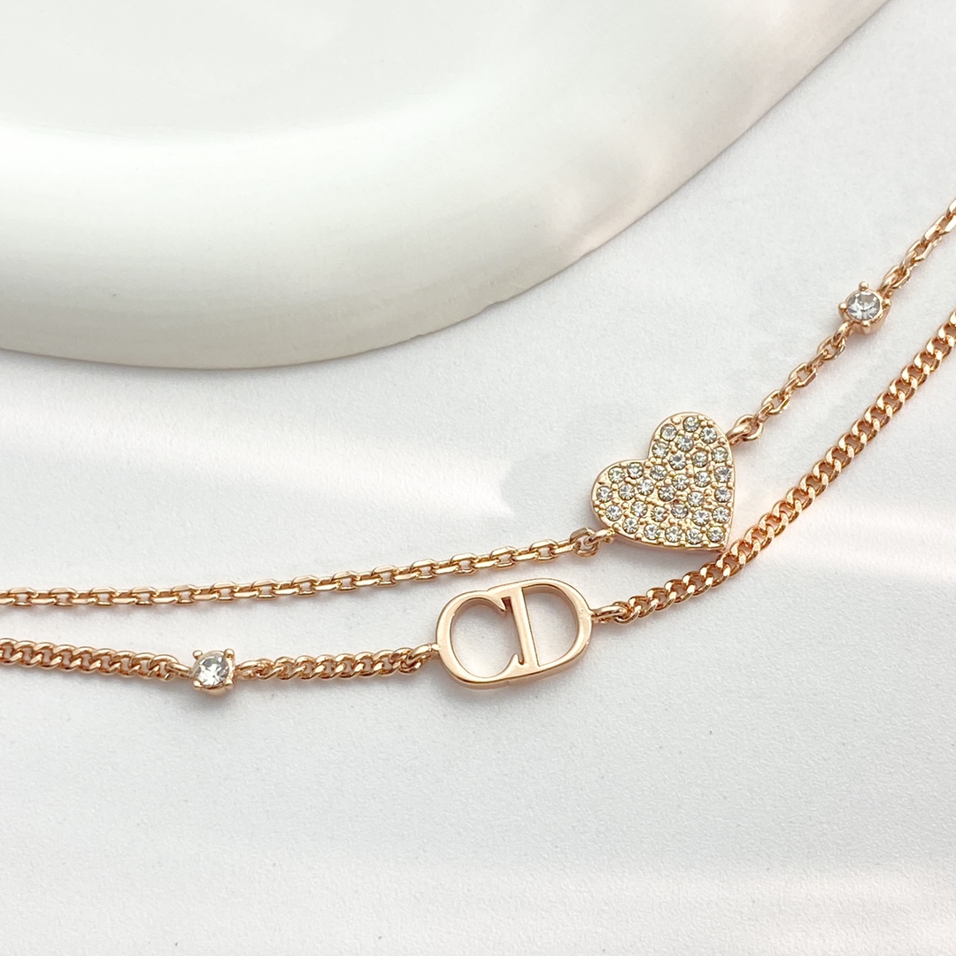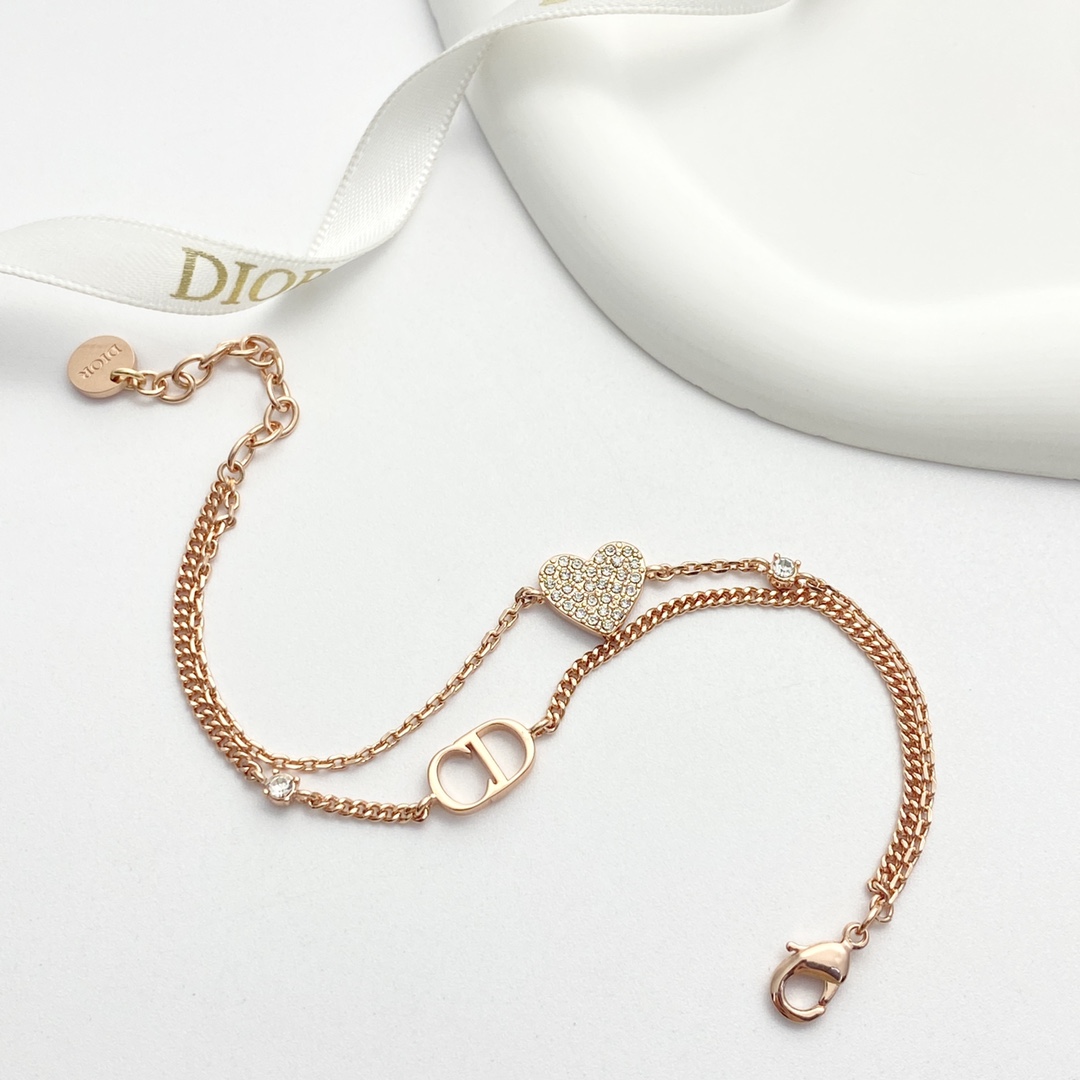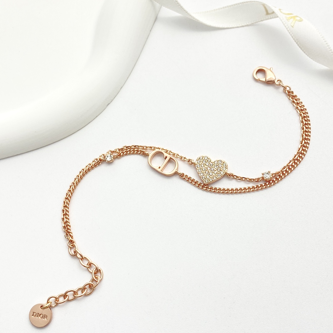 【P110 今日新款】编码H566 0255820 🛍DIOR手链热销款🔥爆上新🆕🆕🆕 🤑迪奥玫瑰金CD爱心双层手链 😈满钻小小爱心blibgbling的很闪✨ 🤩双链设计 上手优雅又温柔,贵气中又不失少女心❤