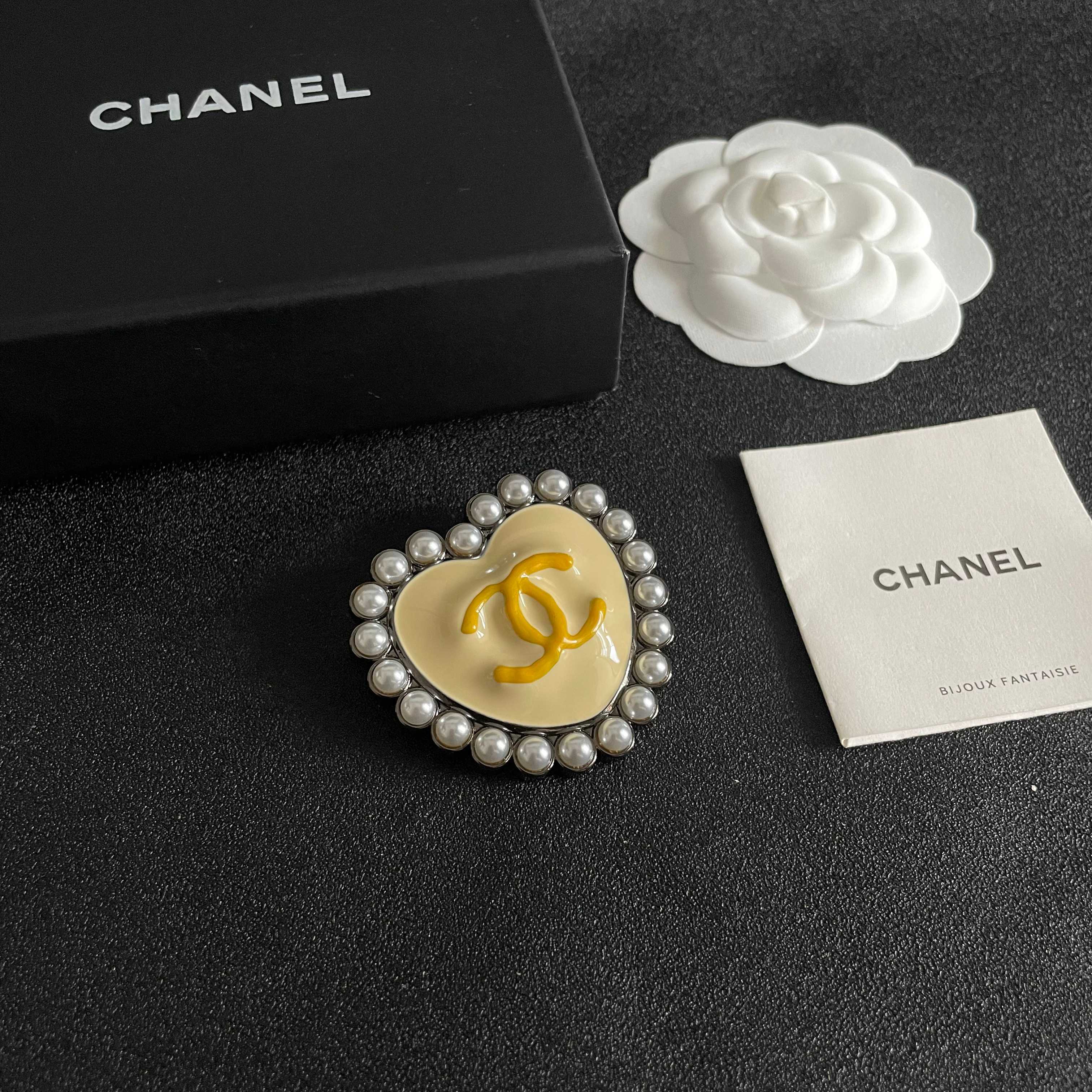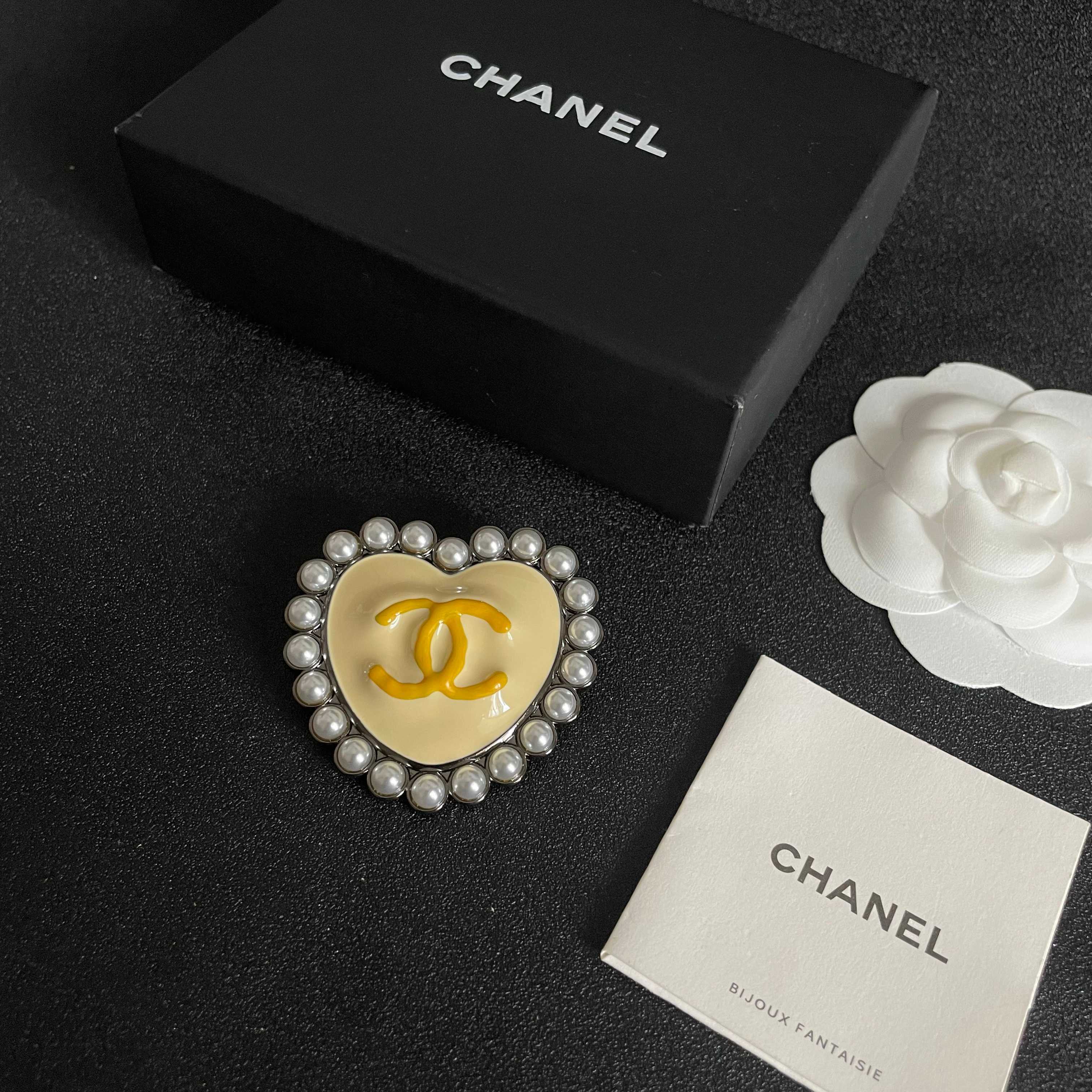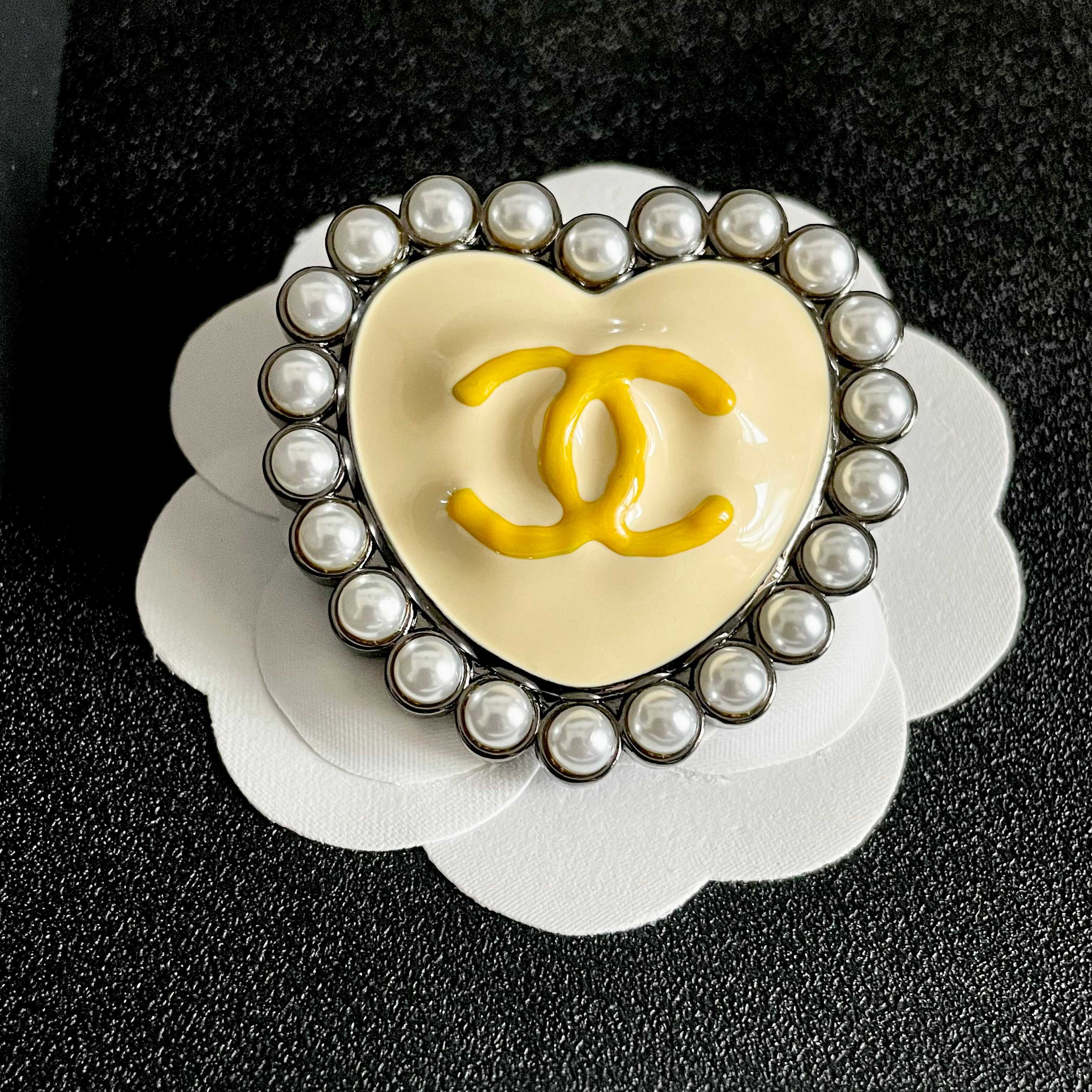 P135 香奈儿✨爱心❤️珍珠双C胸针