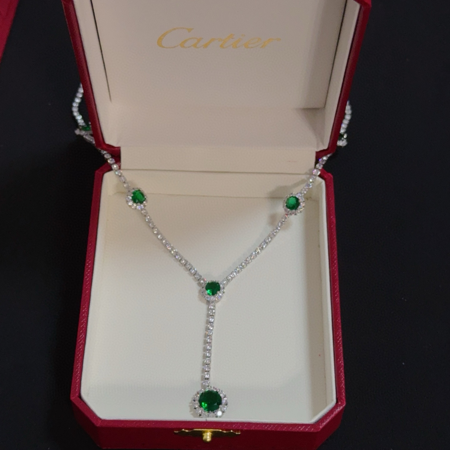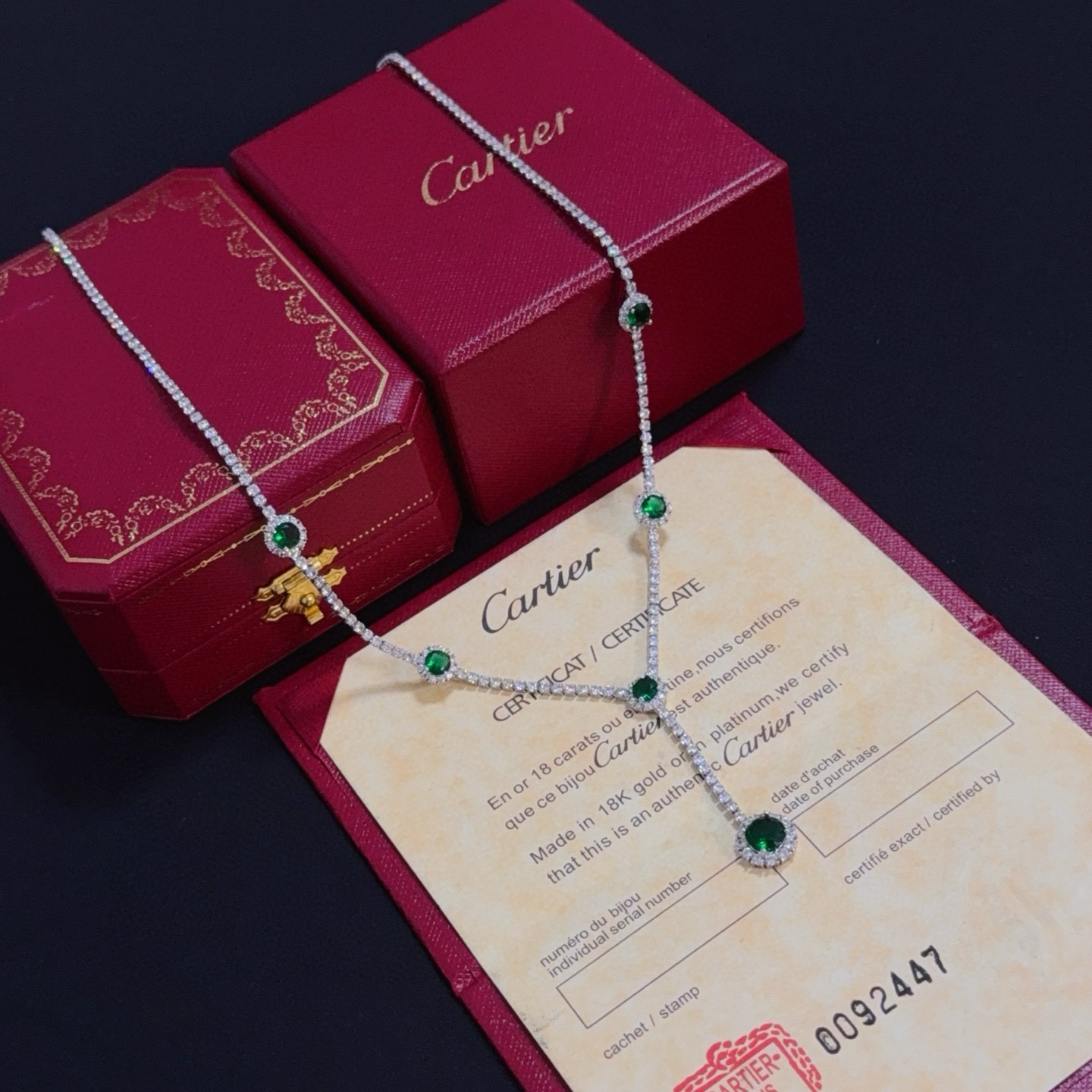 💰175 卡地亚祖母绿钻项链 高端定制版本 镶嵌钻工艺 V金材质 经典而时尚风格 用凌厉线条重构爱情美学!打破常规,镶嵌钻设计反而成就高级感天花板——无需浮华堆砌,爱本应纯粹如初 卡地亚受众多明星网红的爱戴 豹子系列手镯 绝对是永恒经典 而且男女不限 年龄不限 !戴上它你就是焦点!