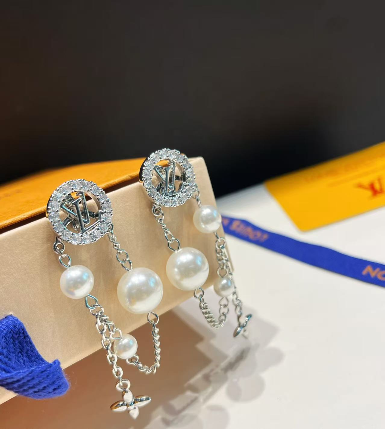 P105💘明星同款 Lv 路易威登 2025年🆕新品流苏链条珍珠茶花字母珍珠耳钉 ✨经典老花耳环 超精工cnc工艺技术 上身美美哒 特别适合夏日搭配T恤 低调奢华有内涵 采用进口黄铜材质电镀古金 不褪色不过敏🥰🥰🥰.