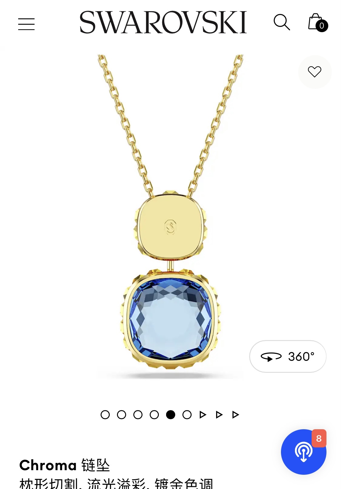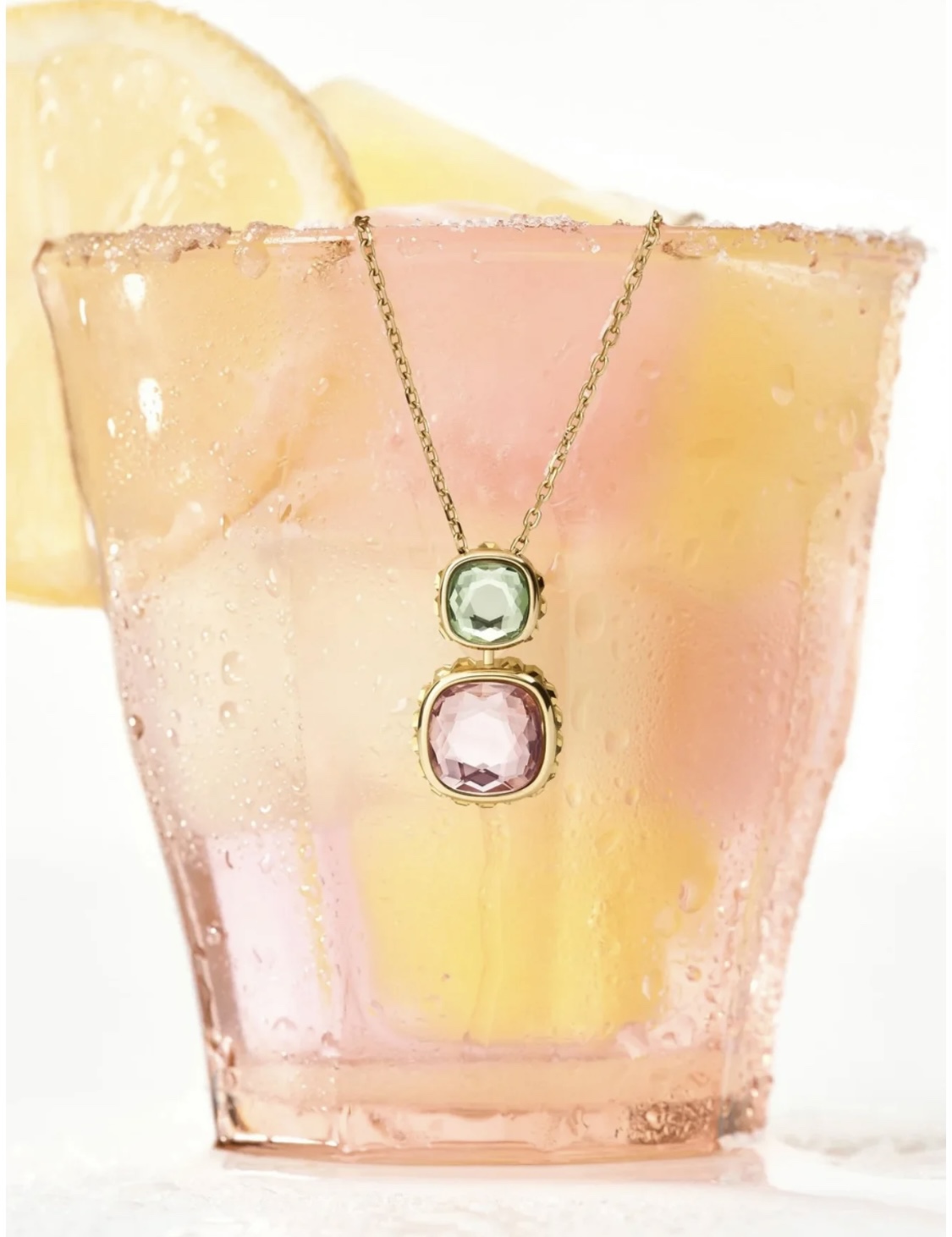 P140 施华洛世奇Chroma系列时尚几何粉色蓝色面彩色宝石可翻转糖果色八角枕形切割水晶锆石双面亮彩设计链坠项链 黄铜材料