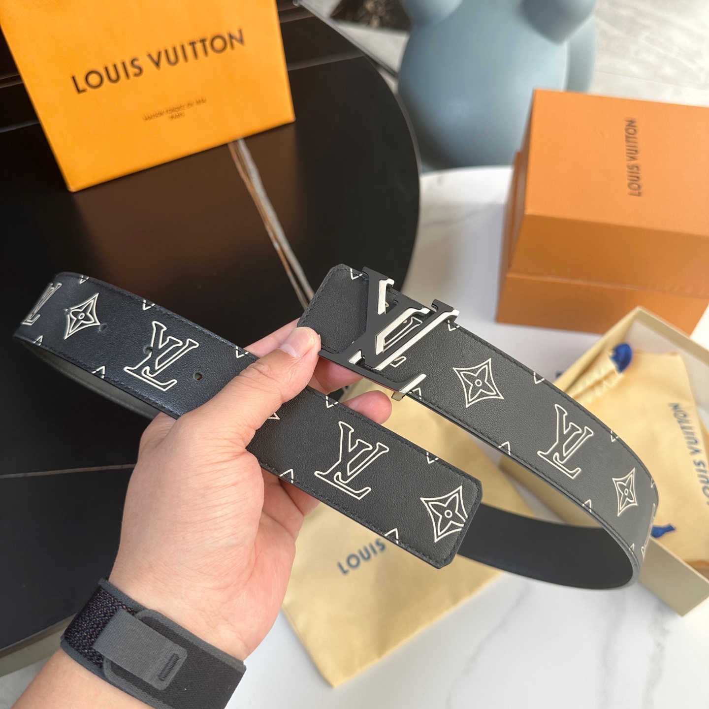 P;155[原版包裝➕1.0】 L0UIS VUITT0N 今季新品 男士原單腰帶 寬度40毫米 雙面進口頭層小牛皮絲印圖案logo設計 搭配最新設計雙層雙色五金 可雙面佩戴 適合沈穩低調的男士使用