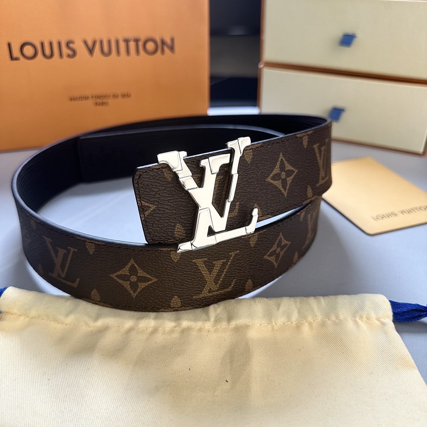 P:140(原版包裝➕1.0) L0UIS VUITT0N 專櫃最新升級版本 寬度40毫米 全新訂製帆布搭配最新進口原廠水波紋底 配置新型字母搭扣 雙面可用 經典百搭款!