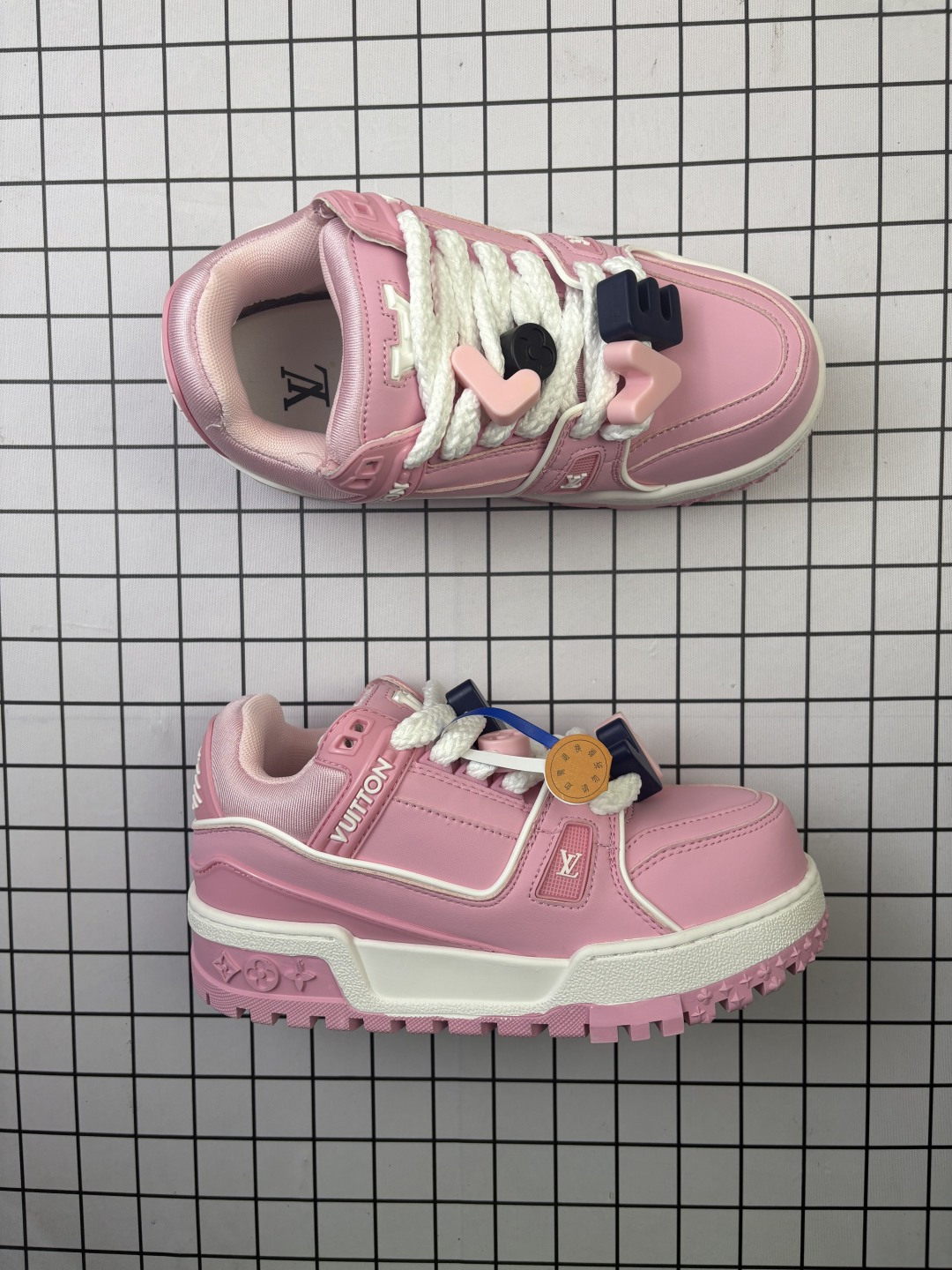 💰150 Louis Vuitton/路易威登 小胖丁 男女鞋广东原产,升级厚实抽屉礼品鞋盒及包装说明书防尘布袋物件,采用细柔小牛皮革鞋面材质,鞋垫嵌入加厚软感EVA物料,后跟耐弯折滴塑支撑片,全新开发TPU光泽组合隔色鞋底❗这双“变胖”了的Trainer好受瞩目「又大又圆」,全新LV路易威登Louis Vuitton Trainer Maxi Low Leather Sneaker 面包版马克西系列低帮休闲运动文化百搭篮球板鞋 编码577 36-41