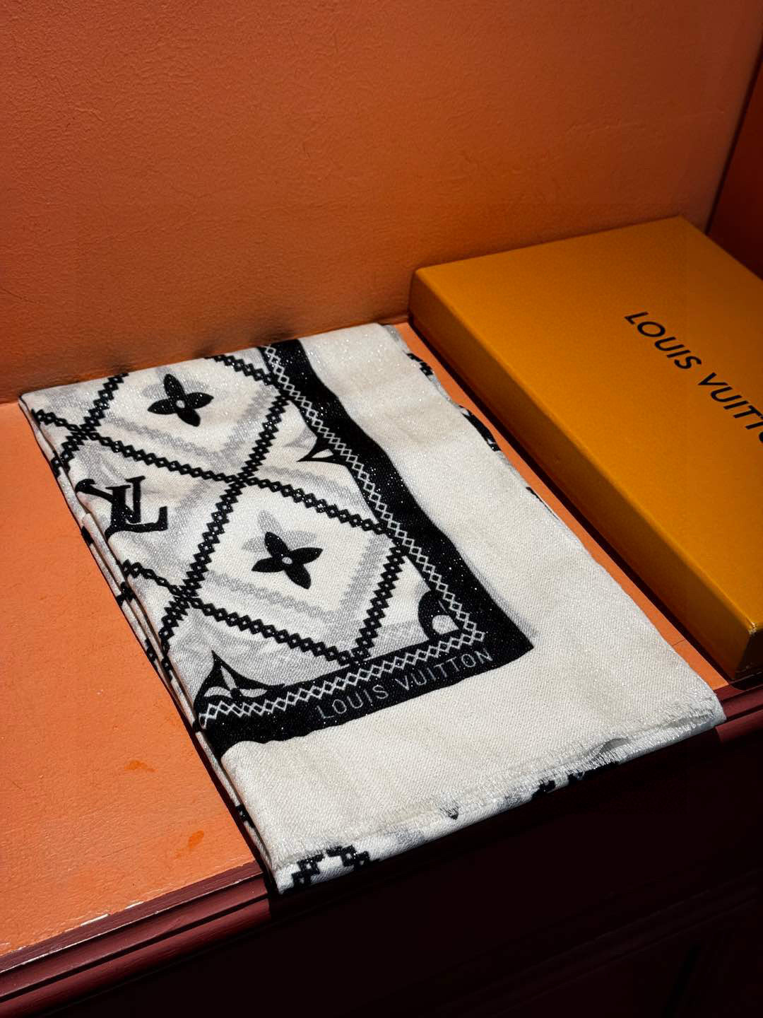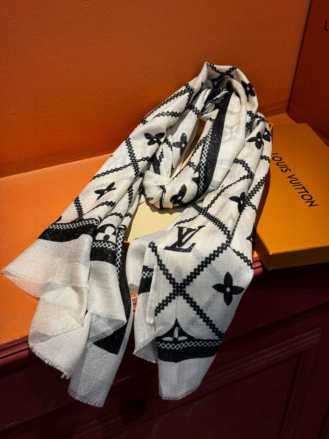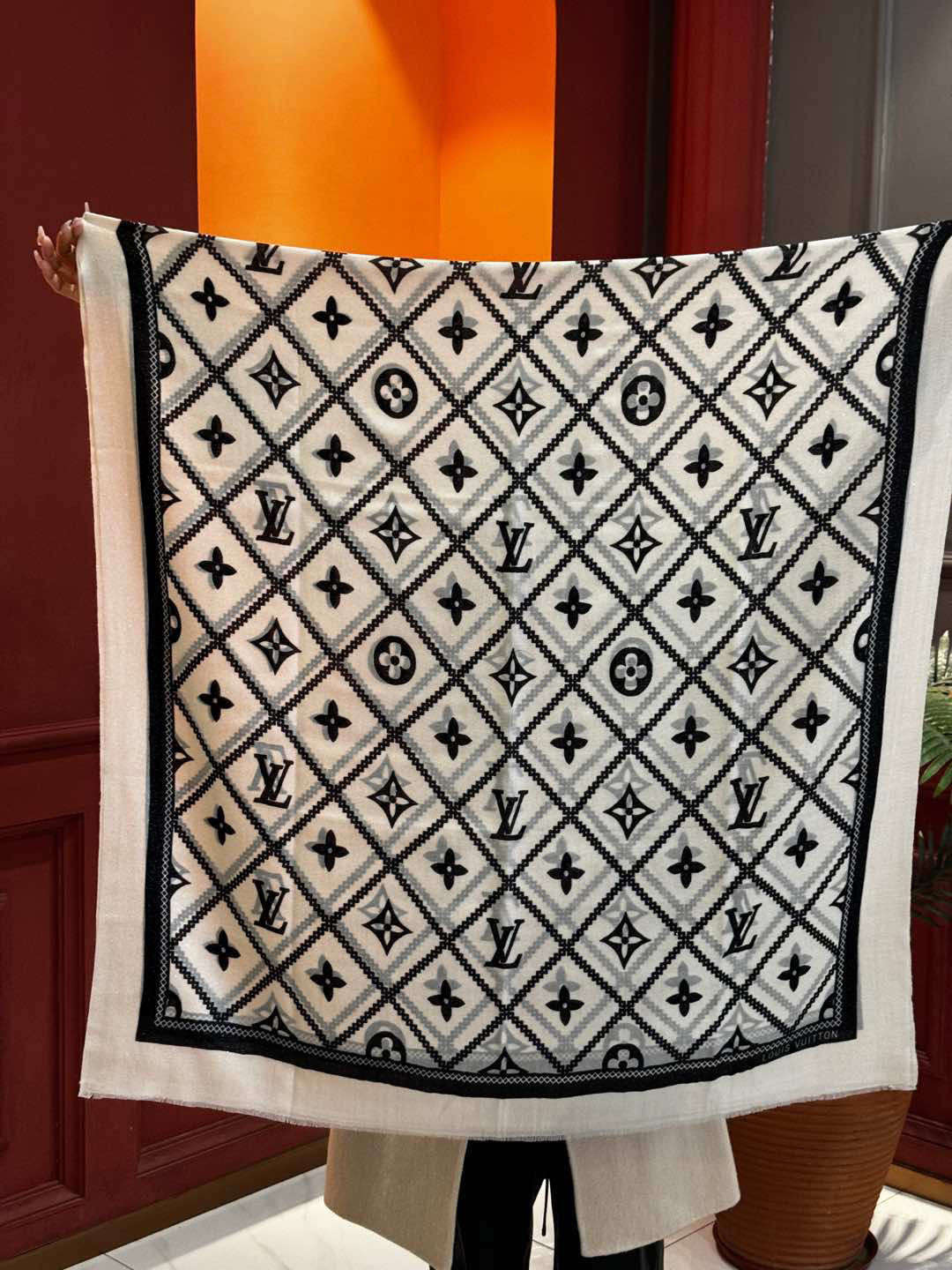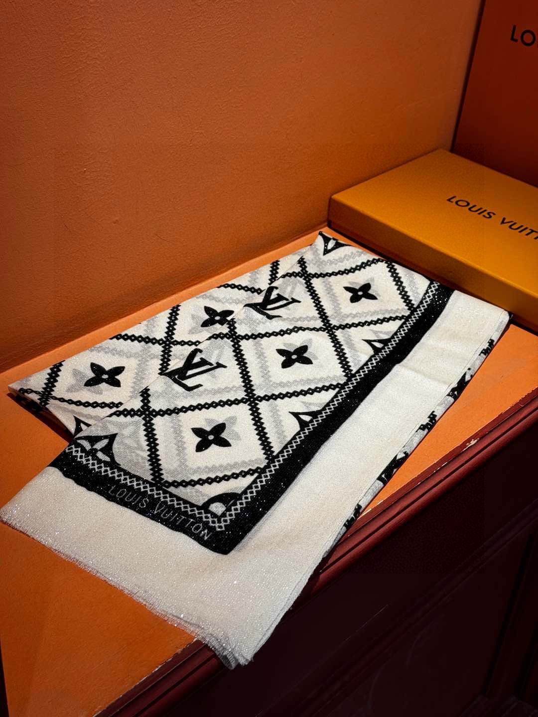 P215 【会发光发亮的围巾】LV银丝羊绒材质❗️轻奢感十足👸 🌺专柜新款🌟面料追求造型,手感挺括,高端设计师配色均考虑上身效果和色彩饱和度,色泽新鲜浓郁非常精致又有名媛气质!好货不等人,喜欢就不能错过哦!快快砸单来吧🎁【成分尺寸:100*200