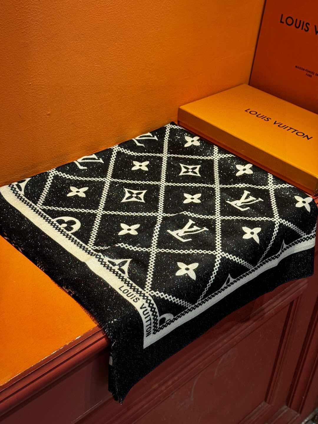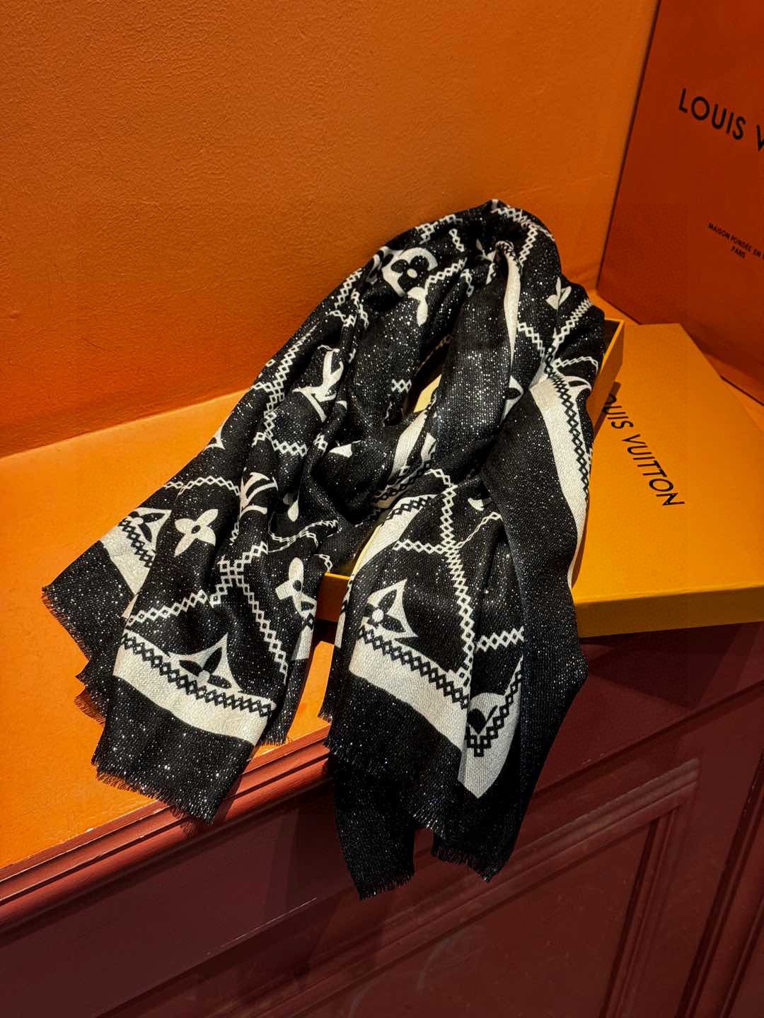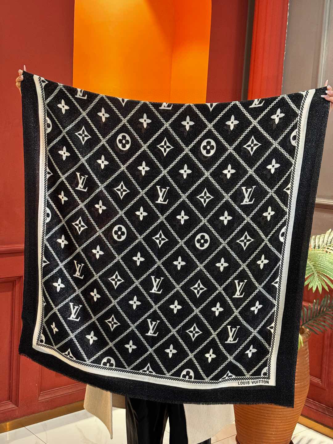 P215 【会发光发亮的围巾】LV银丝羊绒材质❗️轻奢感十足👸 🌺专柜新款🌟面料追求造型,手感挺括,高端设计师配色均考虑上身效果和色彩饱和度,色泽新鲜浓郁非常精致又有名媛气质!好货不等人,喜欢就不能错过哦!快快砸单来吧🎁【成分尺寸:100*200