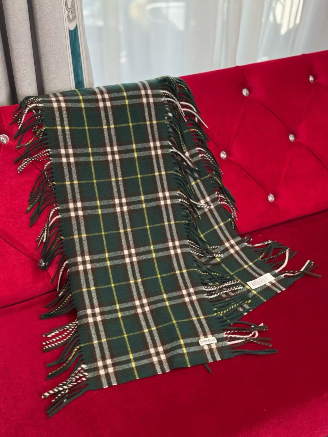 P160🆕Burberry Happy格纹流苏围巾 羊绒围巾装饰精纺 Bur格纹。两边融入流苏装饰,灵感源自品牌典藏档案。面料在高地清泉水中浸泡涤荡,后采用起绒草拉绒工艺,悉心打造出柔软触感。侧边流苏装饰,建议专业干洗。 尺寸:155*30cm 100%山羊绒