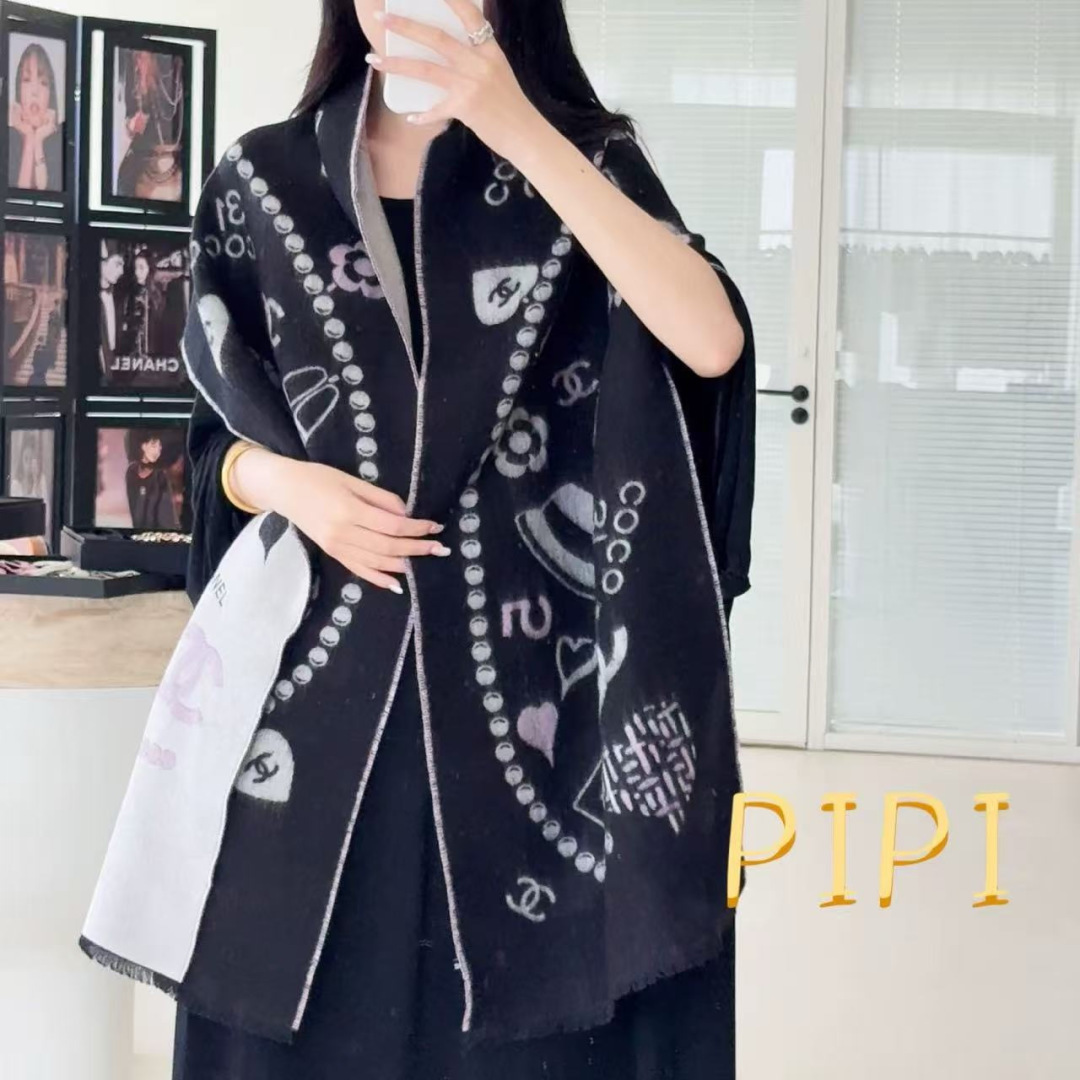 P215🆕Chanel 25B珍珠coco 50*200cm.100%山羊绒 精选顶级山羊绒/绵羊毛/桑蚕丝,融合精湛工艺。触感细腻柔滑,轻盈无负重感,给予颈间云端般的温暖与亲肤体验,诠释何为“ wearable luxury ”(可穿戴的奢华)。一身简单的穿搭,会因为一条对的围巾而变得不简单。轻松,惬意,又自带精致滤镜。