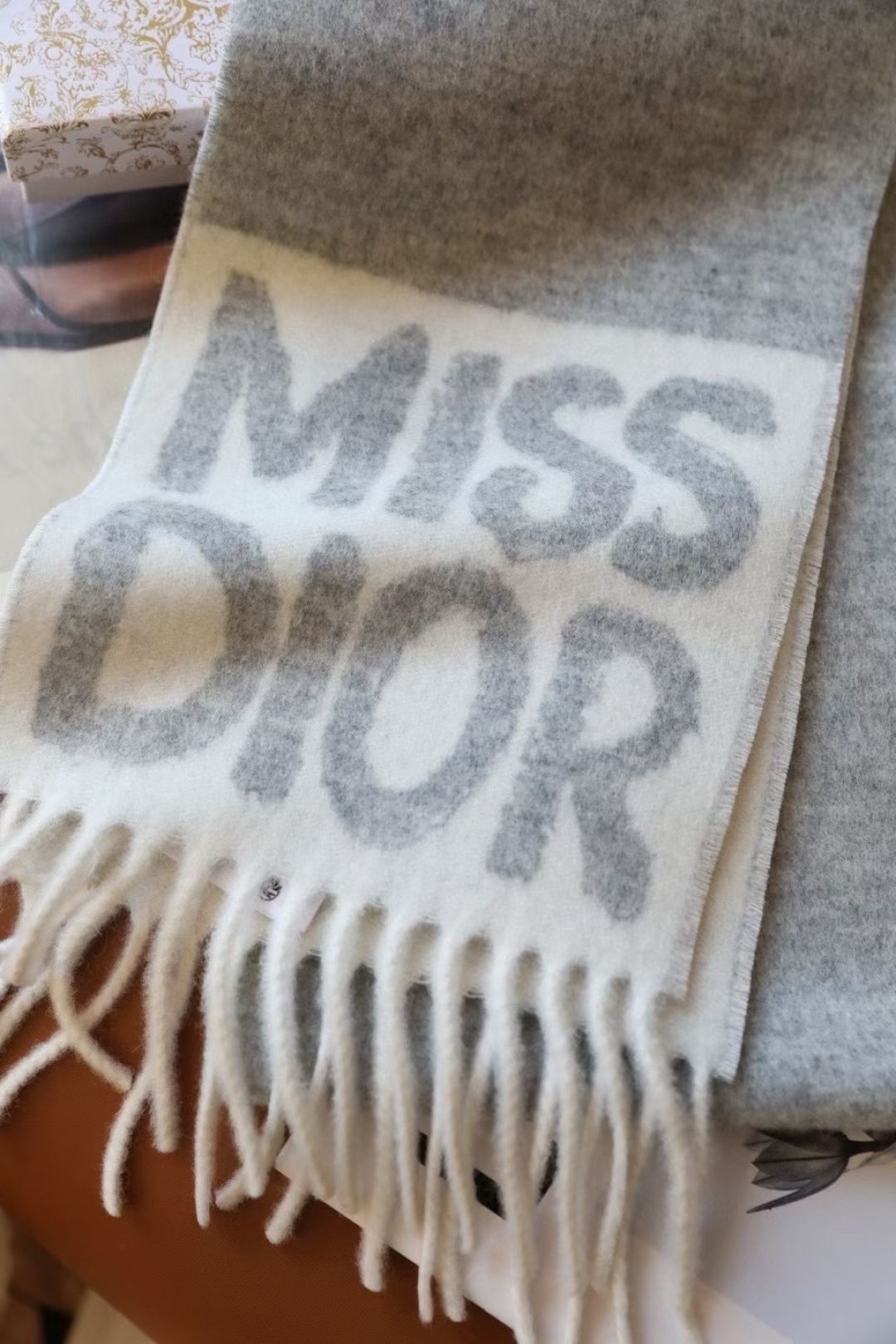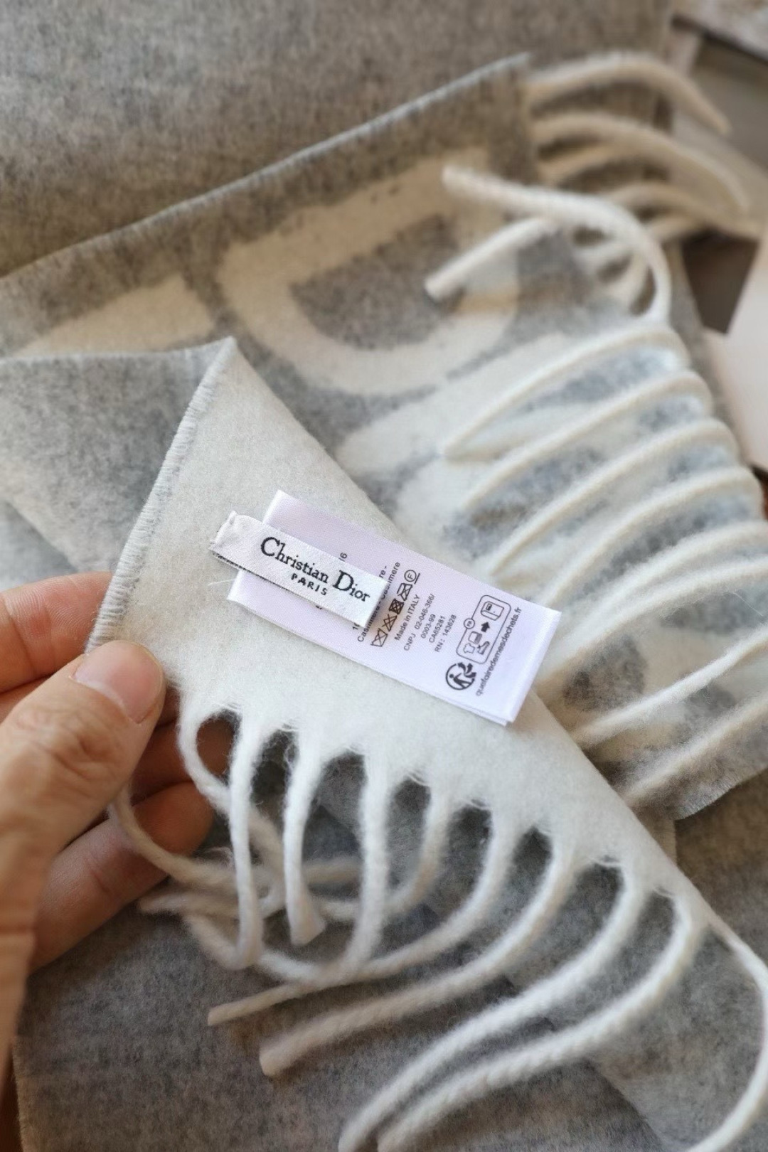 P120🆕 我的天 真要給每人都要入的款 ! DIOR 冬季爆款羊絨围巾 尺寸比常规細点,但不会累贅! 撘大衣的绝配👍🏻重点价格格真的便宜😂 品质非常柔软,上身又真是好看, 货量不多快来抢👍🏻 尺寸:17 x 140 厘米(不含流苏) 成份:100%羊羔绒