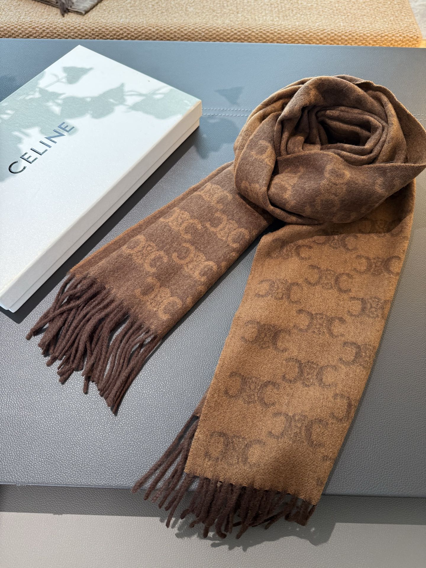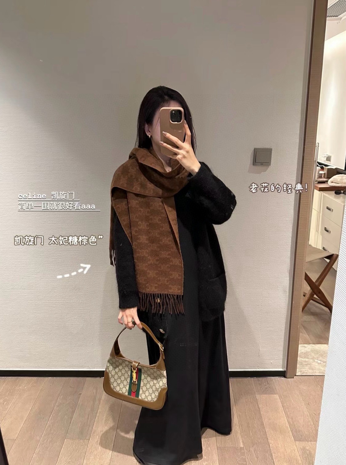 P130 P2040年CELINE凯旋门散林老花羊绒围巾终于出货了……很多宝宝要的上身图来啦!羊绒的质地戴起来软乎乎超舒服!双面明暗对比色,围起来不会那么单调.冬秋季必入款材料超级亲肤柔软,超级无敌百搭又显白,风衣大衣羽绒服的绝配仙女们🉑️冲!!浅栗色和巧克力二色可选;尺寸36x190