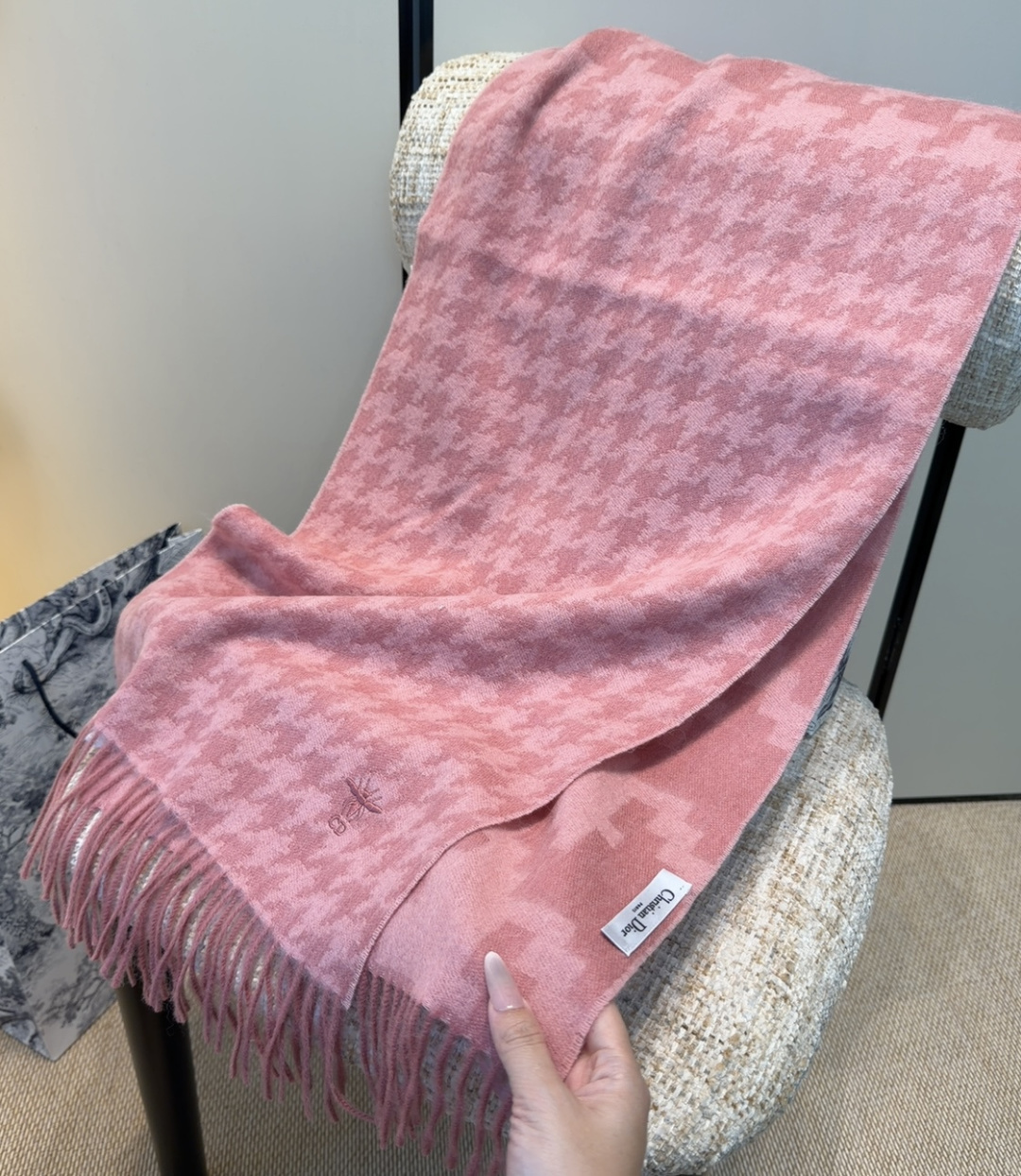 P145 迪奥(Dior)明星同款dd围巾。经典款永远不会过时,而且超百搭。超级好看!!果断自留!精致散须 率真不拘泥 适合各种造型 精妙绝伦 不多介绍 自己看,32*180cm。