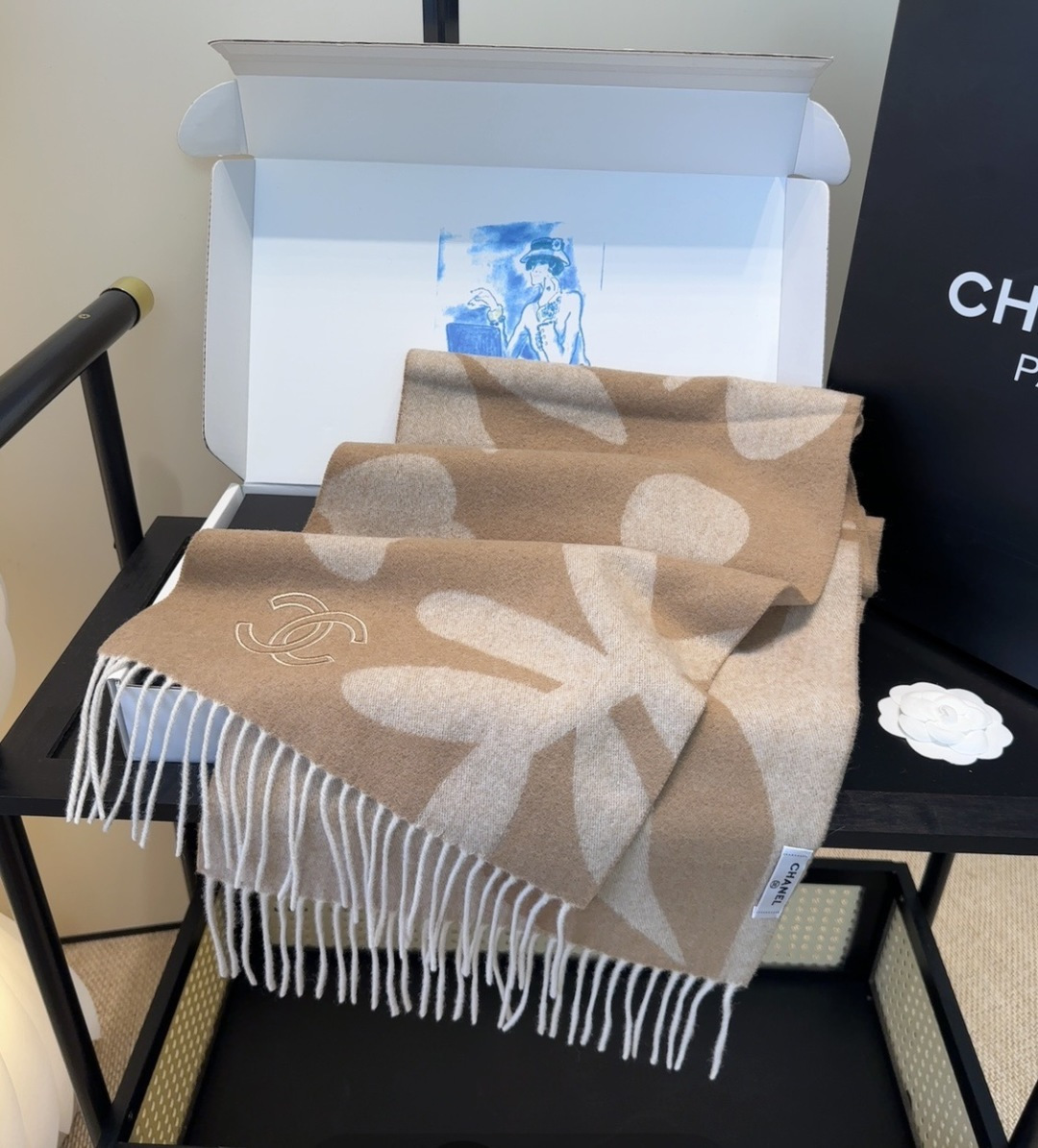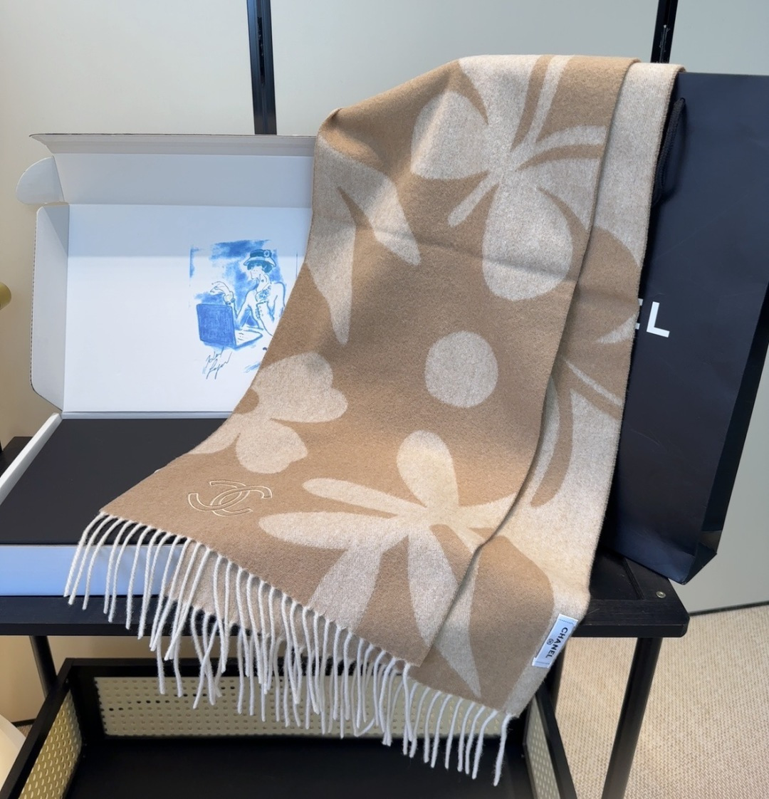 P130 【▪Chanel · 香奈儿难得一见的温柔配色,超级迷恋❗️气质低调恬静又不失优雅❗️】重点推荐❗️高级舒适时髦气质,简约却又不简单,大牌范十足,超级安利❗️香奶奶这款触动内心的柔美围巾,点睛之笔确又不失美感,成功人士的追求,色彩绝对💯❗️有点独有的仙气,绝对的情侣款不二之选,颜色淡雅,不妖娆❗️规格:35 x 180cm❗️