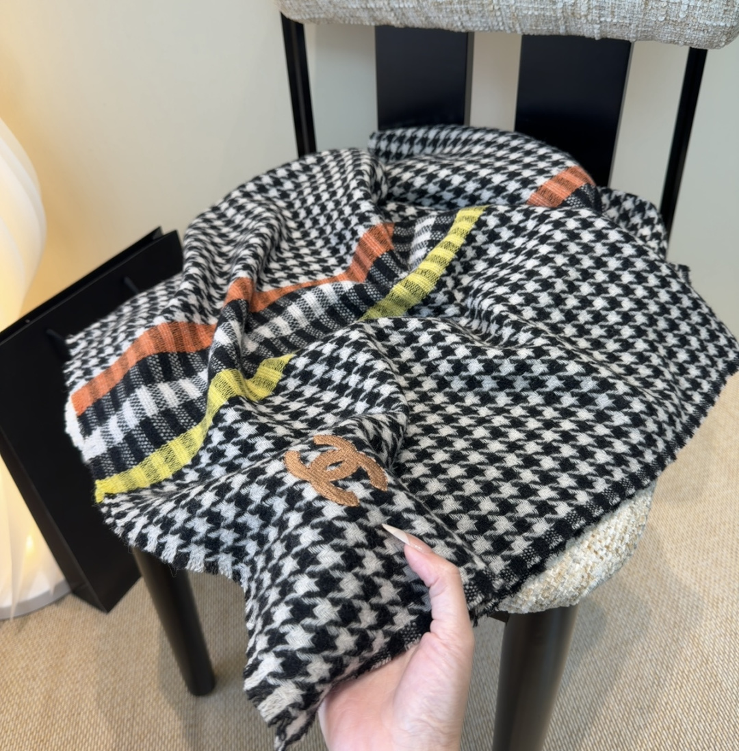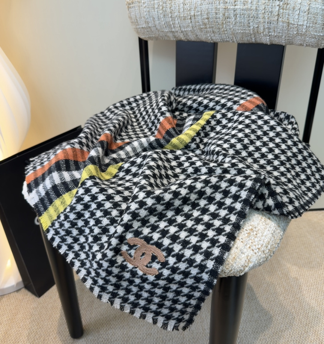 P155 上新!2025秋冬香奈儿男女同款,同步,高端羊绒针织围巾! 可正式,可随意,非常Classical的设计。这款织法比较难,又很费纱线,工艺难度非常大!!!这样的围巾,绝对是一条审美不过时的单品!随便围都会好看,版型真是一绝!!太实用百搭了,其实没有多余的设计,怎么围都好看!有垂坠感,温暖且非常显瘦!搭配正装或者搭配休闲装都很合适~对折挂围或者绕圈围都完全可以,有温度的风度‼️ 尺寸:30*180 克重:175g 材质:100%细羊毛