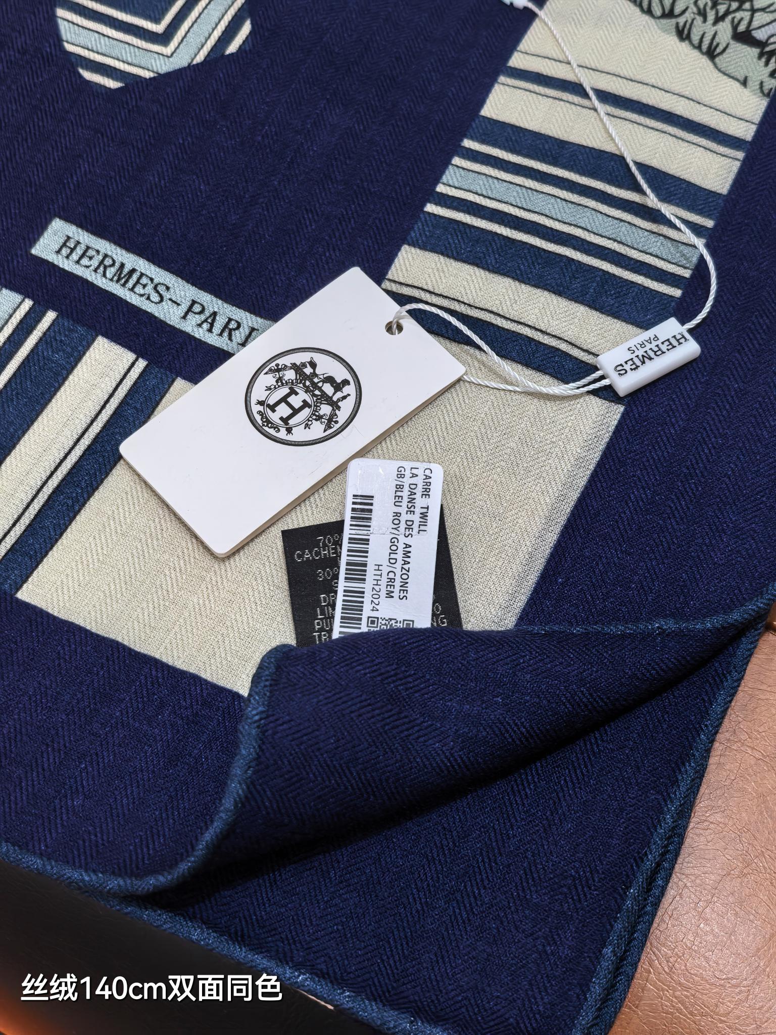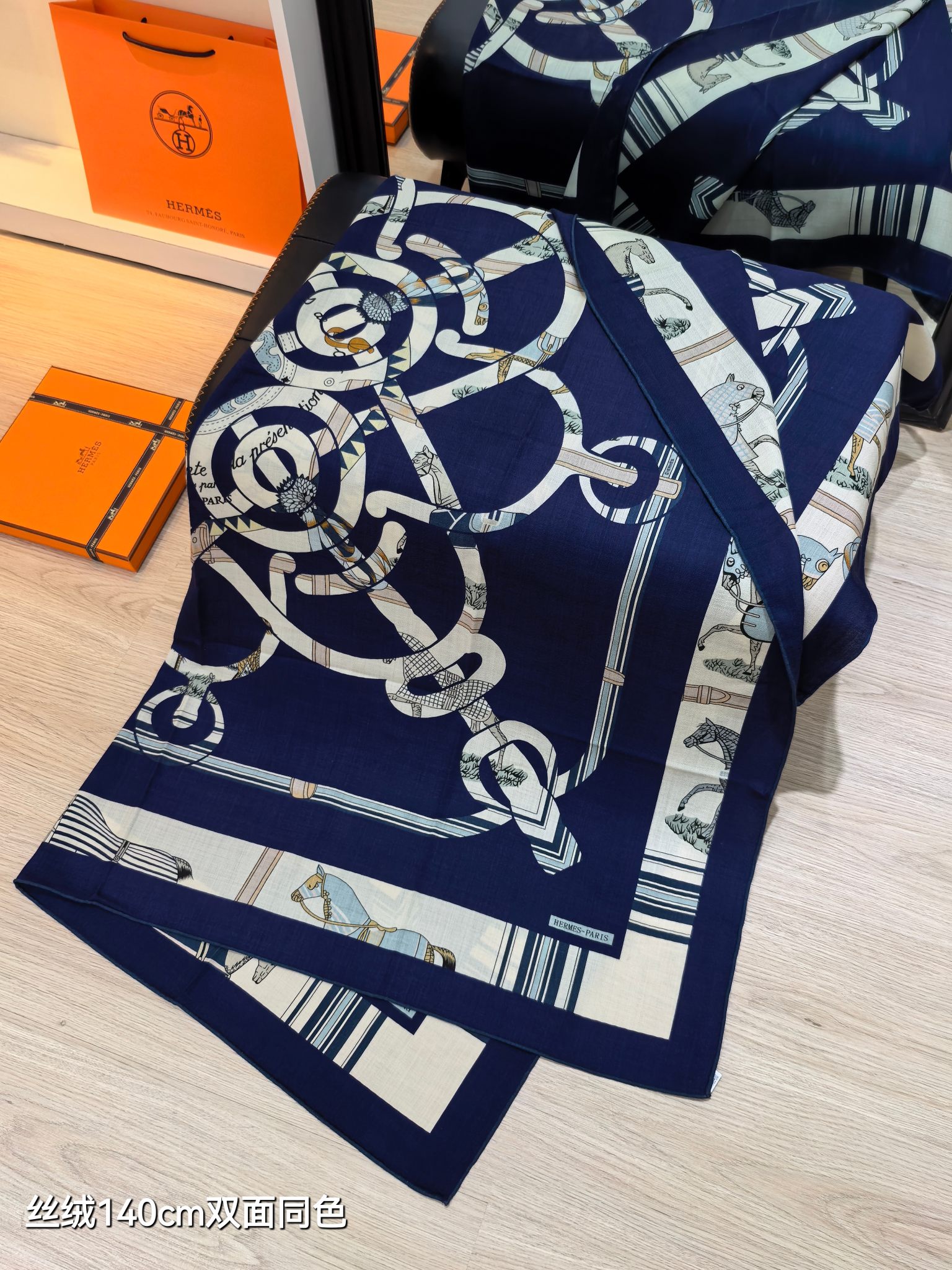 P220❄RHMS2561 双面同色 140x140cm 70%羊绒30%真丝 爱马仕《金质马刺与骏马的披挂叠印版》