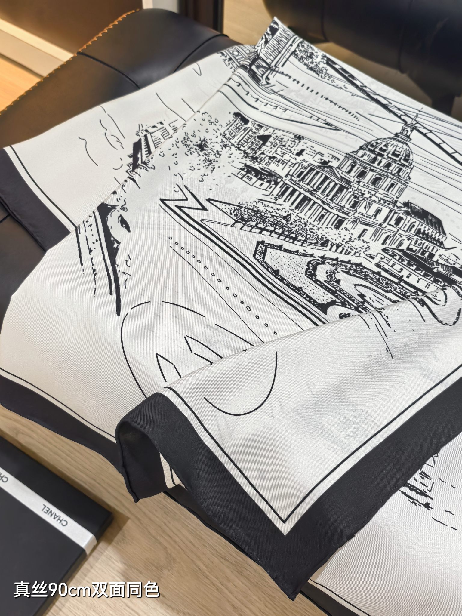 P160🌼SCC2585 18姆米双面 90x90cm斜纹真丝 香奈儿《》