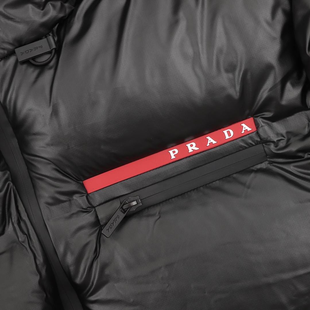 P530 款号Y528 Prada/普拉达 24Fw 红条标识羽绒服 此款廓形丰满的羽绒外套采用Linea rossa独特的双层轻质粘合尼龙面料打造,搭配连帽衣领、直裁衣袖和正面拉链拉合,与横向绗缝,元素和下摆弹力束绳共同塑造鲜明廓形,轻质粘合尼龙科技面料具有防风、耐磨、防水和透气等,高科技性能,是一款多功能科技面料,衬里采用精细密实的可再生微纤维面料打造,触感轻盈,柔软,鹅绒和 Graphene加衬有助于调节体温,别具功能性,鸭绒材质赋予加衬填料更加轻盈的特色,提升服装的保温性能003 Size:S-XXL