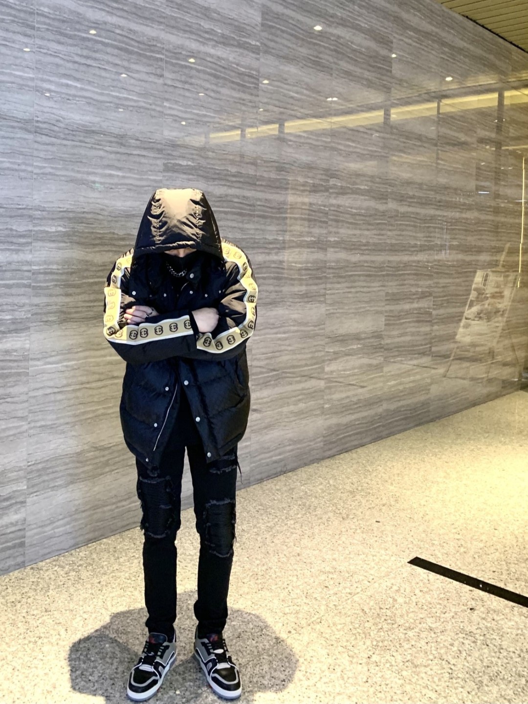 Gucci/古驰20Fw反光G提花条纹羽绒服 上身效果#