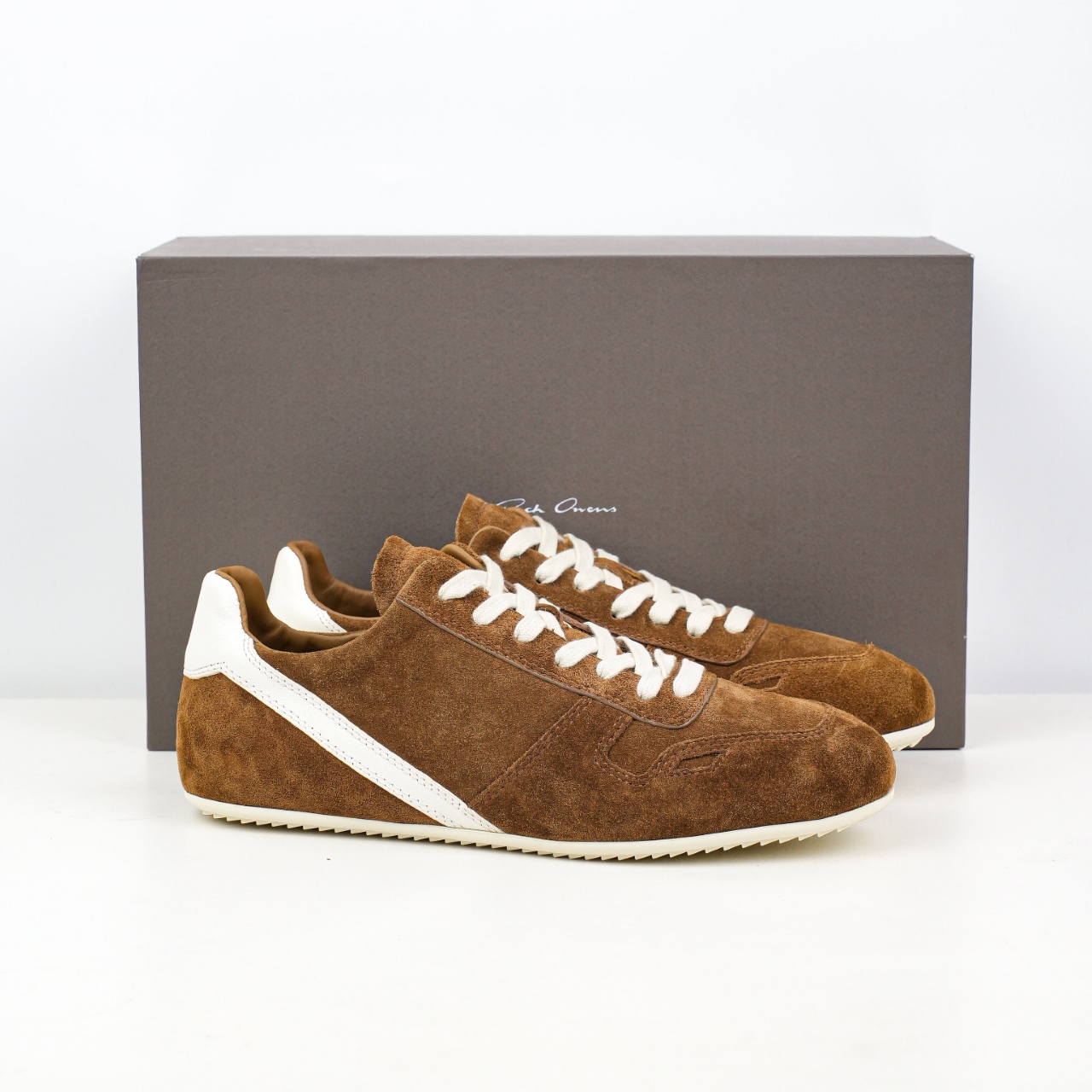 RICK OWENS/RO Minimal Sneak 瑞克欧文斯小牛绒面革 圆头系带低帮生活休闲鞋 在纸样剪裁学校学习了两年之后,来自加利福尼亚南部的 RickOwens 开启了自己的设计生涯,他的修身皮夹克和做日针织衫在这些社区备受推崇。2001年,Owens 将其品牌的生产转移到意大利,然后又迁至巴黎。在 Michele Lamy 的强势入驻下,他的系列设计融汇了野兽派设计的经典元素和苦行僧式的部落主义文化。不对称长袍、短裤和长裤、瘦长T恤和 Owens 的标志性 Geobasket 运动鞋,以及与 adidas 经常推出的合作系列,呈现出一种强烈的阳刚之气、未来主义、适于僧侣而又世俗的气质。