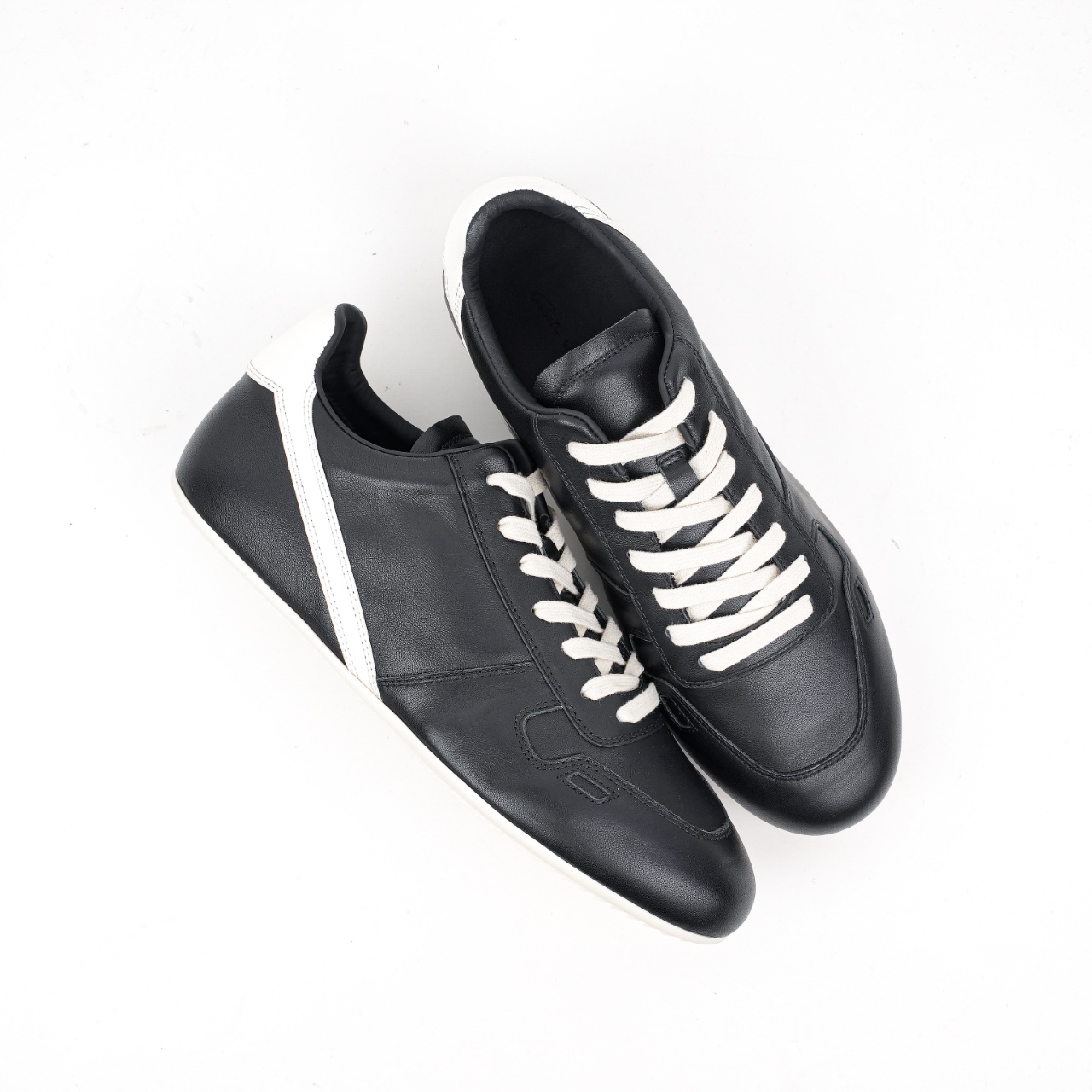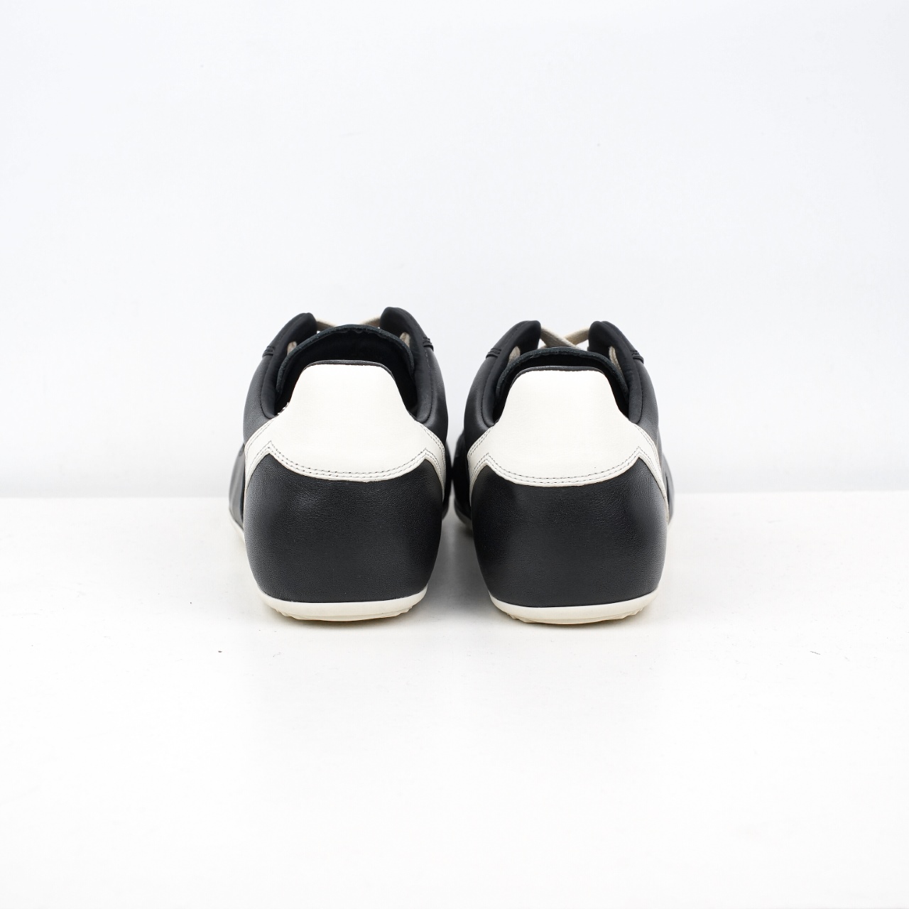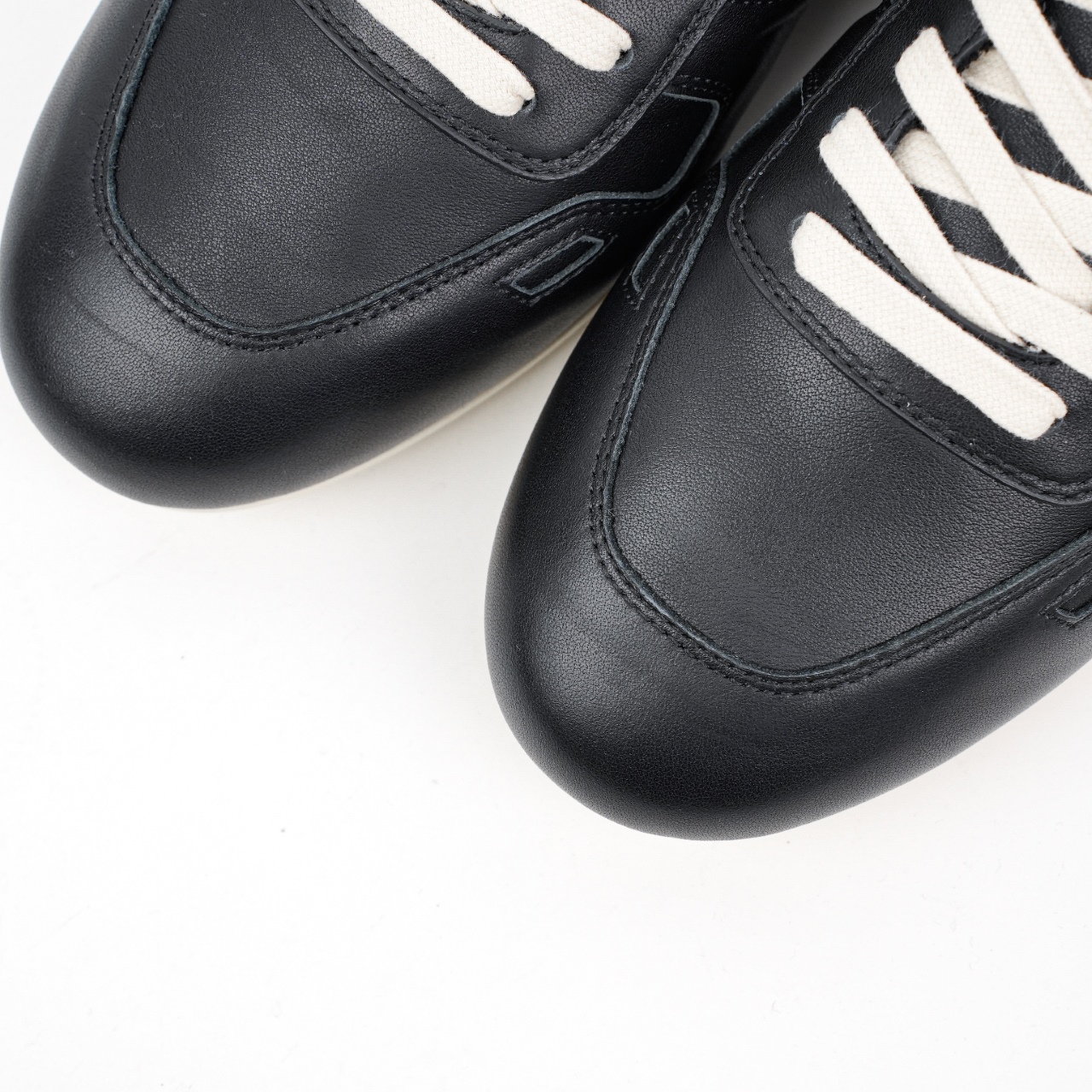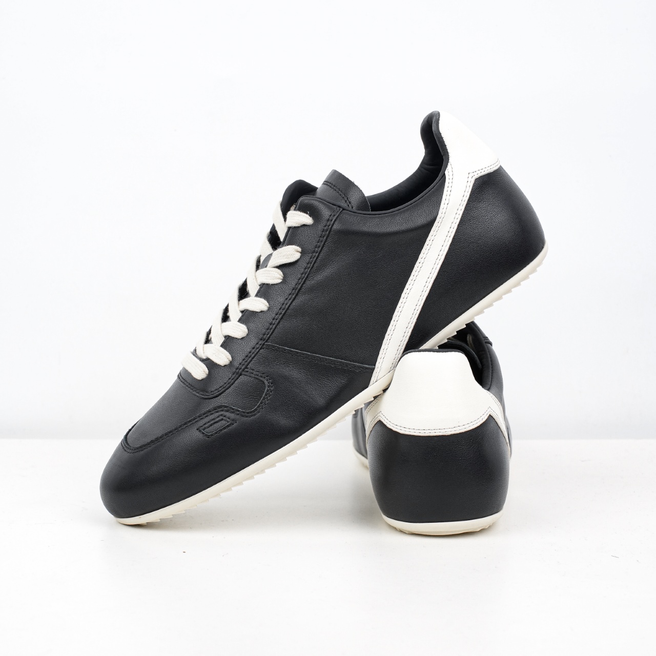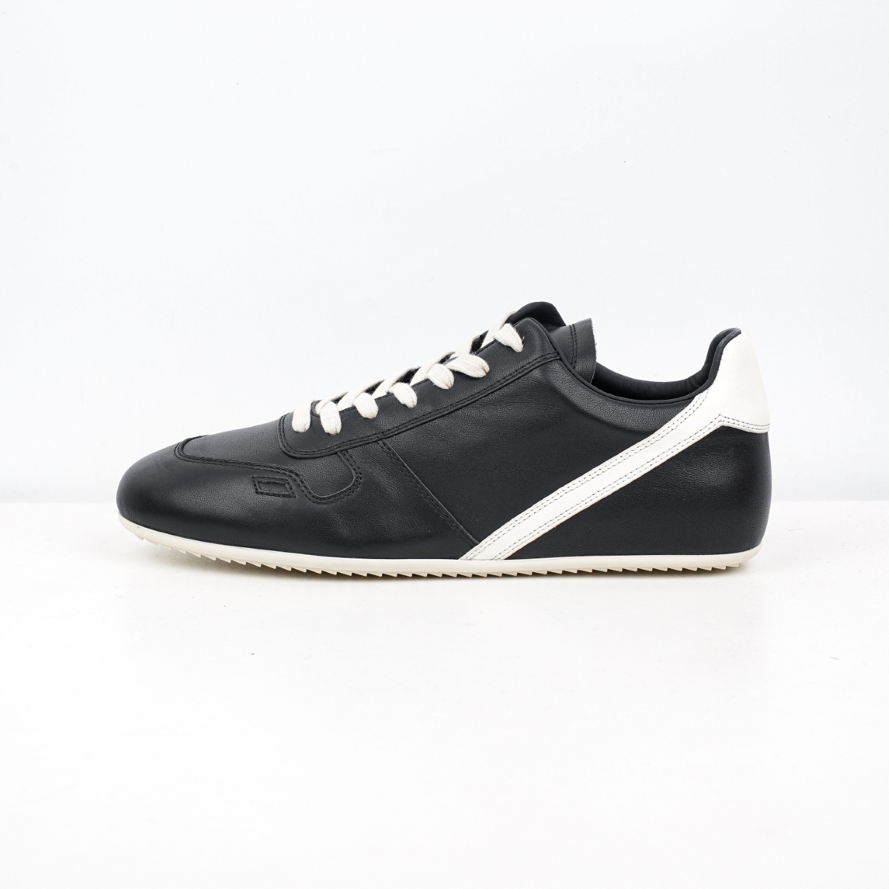RICK OWENS/RO Minimal Sneak 瑞克欧文斯小牛绒面革 圆头系带低帮生活休闲鞋 在纸样剪裁学校学习了两年之后,来自加利福尼亚南部的 RickOwens 开启了自己的设计生涯,他的修身皮夹克和做日针织衫在这些社区备受推崇。2001年,Owens 将其品牌的生产转移到意大利,然后又迁至巴黎。在 Michele Lamy 的强势入驻下,他的系列设计融汇了野兽派设计的经典元素和苦行僧式的部落主义文化。不对称长袍、短裤和长裤、瘦长T恤和 Owens 的标志性 Geobasket 运动鞋,以及与 adidas 经常推出的合作系列,呈现出一种强烈的阳刚之气、未来主义、适于僧侣而又世俗的气质。