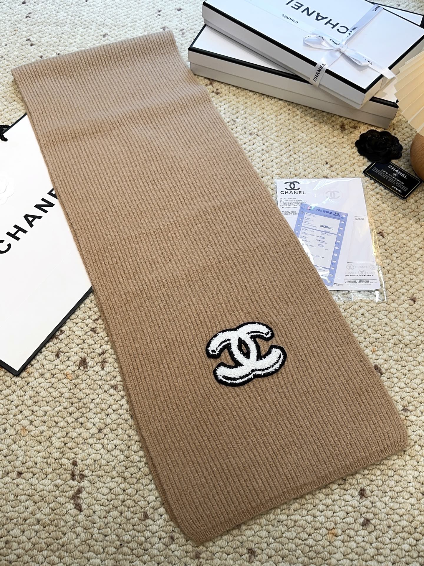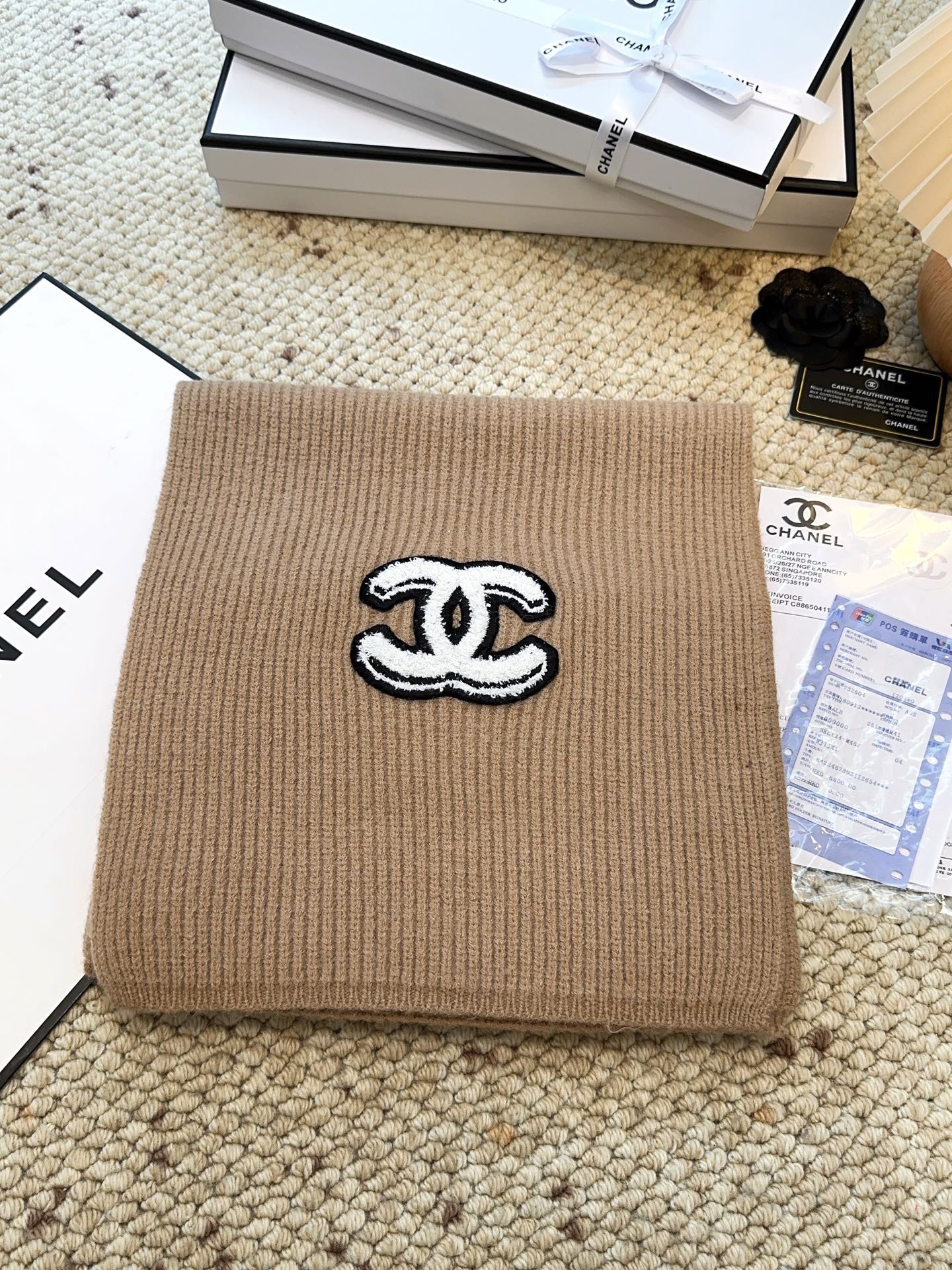 P160 CHANEL【新款来袭】香奈儿专柜最新编织系列!这是一个特别稀有的款式,这也是小香家第一款采用纯色针织工艺的围巾!肯定会成为小香家秋冬季的主打款式!质地非常柔软亲肤,非常好搭配好驾驭,超值回馈~拿到手绝对觉得值!尺寸:175*30cm!90%羊毛10%羊绒!
