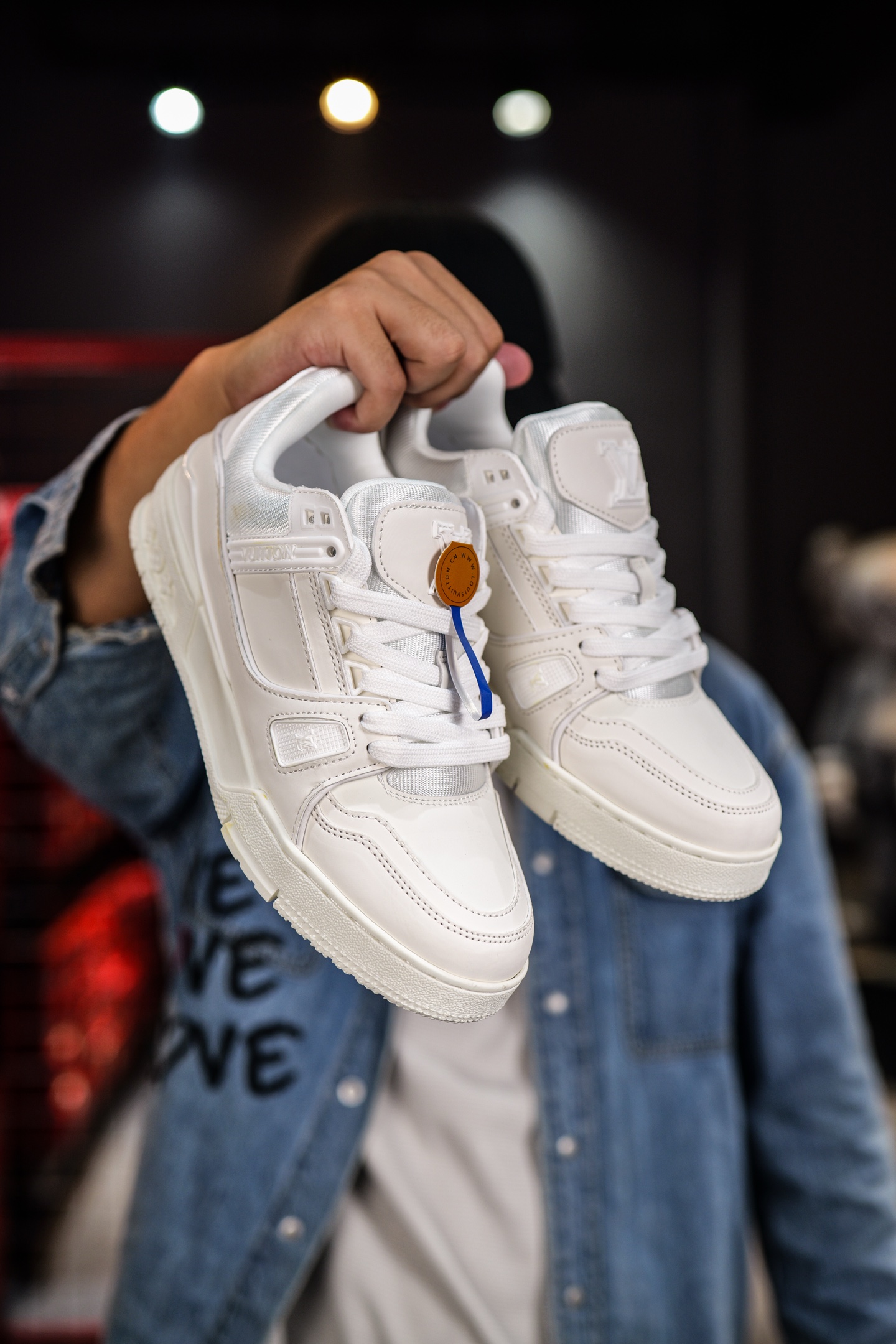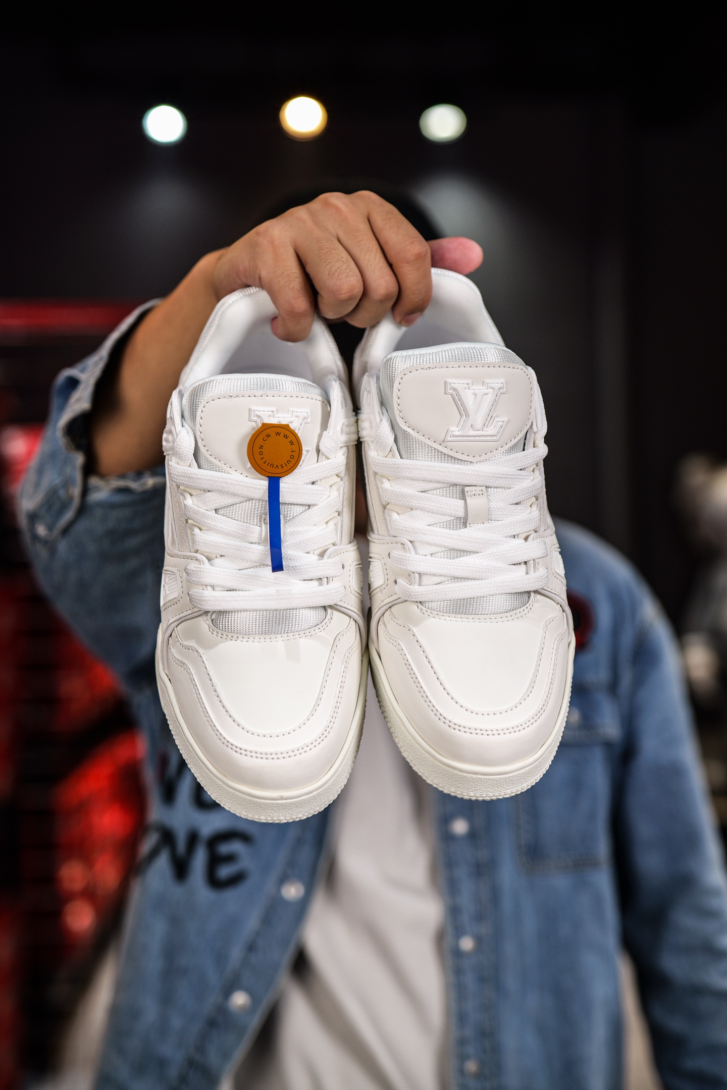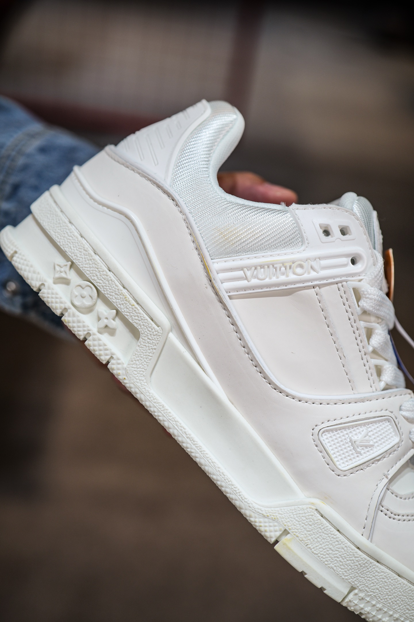110💰L8版市面最高性价比版本💯底气十足 空胶工艺 驴家LV Trainer 原版完美楦型 品控胜过市面百分之95。 欢迎大家拿去与市面高于几十元的版本相互对比 TPU大底材料全部纯原色料打造的鞋底 区别 市面上小作坊省工料描涂漆上脚两天就掉色。 独家底磨 开发费5w+ 质感媲美原版 密集度超高 区别于同行色泽质感 意大利进口头层一刀切小牛皮 皮料厚实度韧性高于市面 垫脚聚米微料加透气英伦网布 都是按正品一比一打造开发 不偷半点料 不掺半点假 细节原版一致 可对比 全包套原版包装配件 目前市面一梯队级别 ⚠市场太杂请注意混卖版本 可区别材料 版型 质感 包装配件 一切肉眼可见的细节。 尺码男女鞋35 36 37 38 39 40 41 42 43 44 45 46