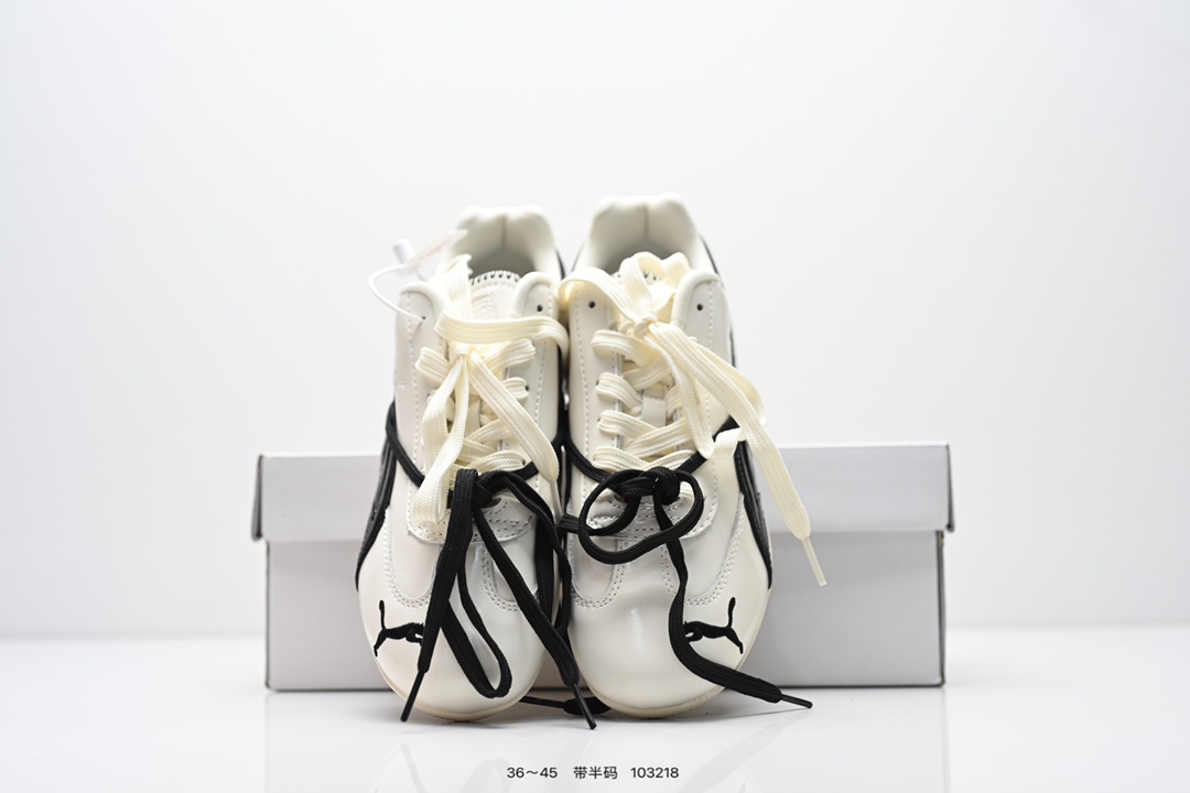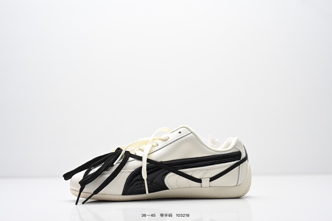 合集 90💰Z版 内饰配件齐全 Rose x PUMA彪马 Speedcat 系列 情侣 薄底 赛车 德训双鞋带 舒适百搭 生活休闲鞋 男女同款 PUMA Speedcat为蓝本,融入Rosé品牌标志性的蝴蝶结双鞋带设计,鞋侧及后跟新增鞋带穿孔,可自由缠绕鞋身打造蝴蝶结造型,为硬朗的赛车鞋增添柔美气质。 鞋面采用细腻的头层牛皮,质感柔软,油光锃亮,侧面的白色LOGO也是皮质的,鞋舌处和鞋垫上印有彪马和Rose的联名LOGO。 鞋底厚度仅1.8cm,比普通运动鞋轻20%以上,搭配加厚鞋垫,缓震表现出色,走路轻盈舒适,久走不累。鞋面采用亲肤透气网布+环保PU材质,夏天穿也不闷脚。 有黑色和奶油色等配色,黑色款经典百搭,奶油色款则以温柔奶杏白+浅灰条纹为主,搭配牛仔裤、短裙等都超有氛围感,适合多种场合穿着。 size:36 37 37.5 38 38.5 39 40 40.5 41 42 42.5 43 44 44.5 45偏小半码