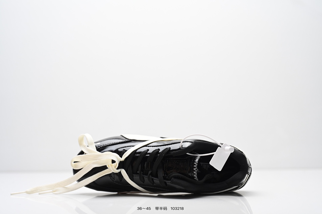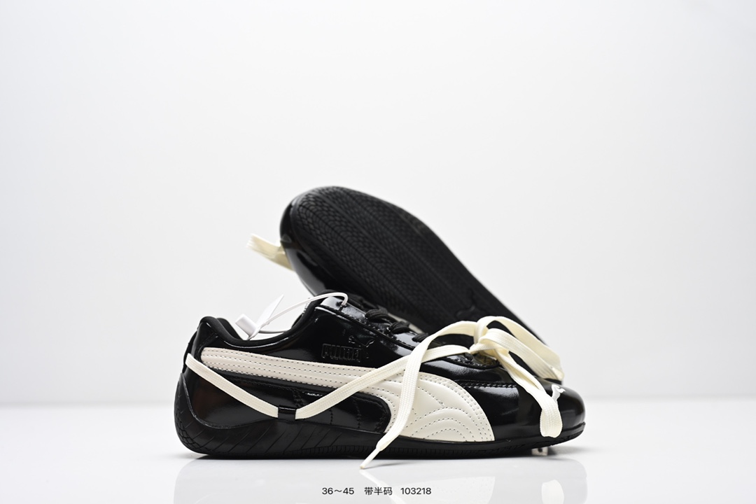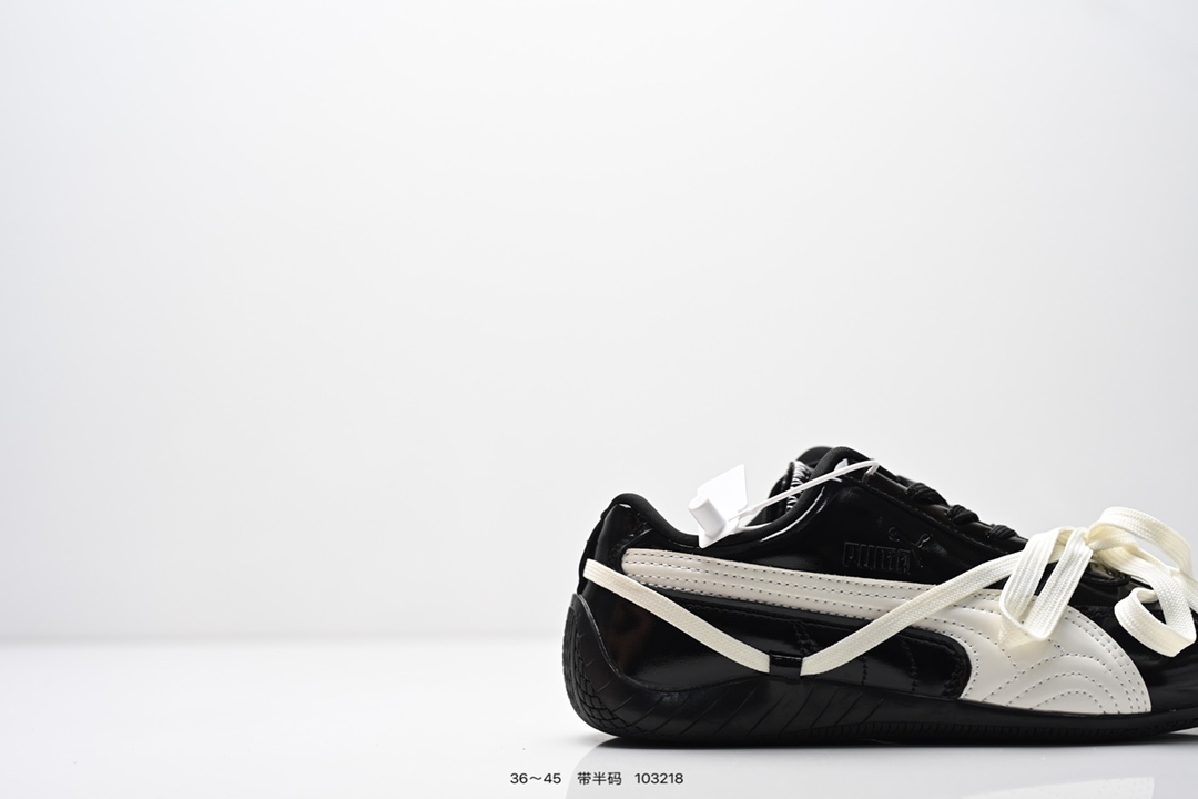 90💰Z版 内饰配件齐全 Rose x PUMA彪马 Speedcat 系列 情侣 薄底 赛车 德训双鞋带 舒适百搭 生活休闲鞋 男女同款 PUMA Speedcat为蓝本,融入Rosé品牌标志性的蝴蝶结双鞋带设计,鞋侧及后跟新增鞋带穿孔,可自由缠绕鞋身打造蝴蝶结造型,为硬朗的赛车鞋增添柔美气质。 鞋面采用细腻的头层牛皮,质感柔软,油光锃亮,侧面的白色LOGO也是皮质的,鞋舌处和鞋垫上印有彪马和Rose的联名LOGO。 鞋底厚度仅1.8cm,比普通运动鞋轻20%以上,搭配加厚鞋垫,缓震表现出色,走路轻盈舒适,久走不累。鞋面采用亲肤透气网布+环保PU材质,夏天穿也不闷脚。 有黑色和奶油色等配色,黑色款经典百搭,奶油色款则以温柔奶杏白+浅灰条纹为主,搭配牛仔裤、短裙等都超有氛围感,适合多种场合穿着。 size:36 37 37.5 38 38.5 39 40 40.5 41 42 42.5 43 44 44.5 45偏小半码