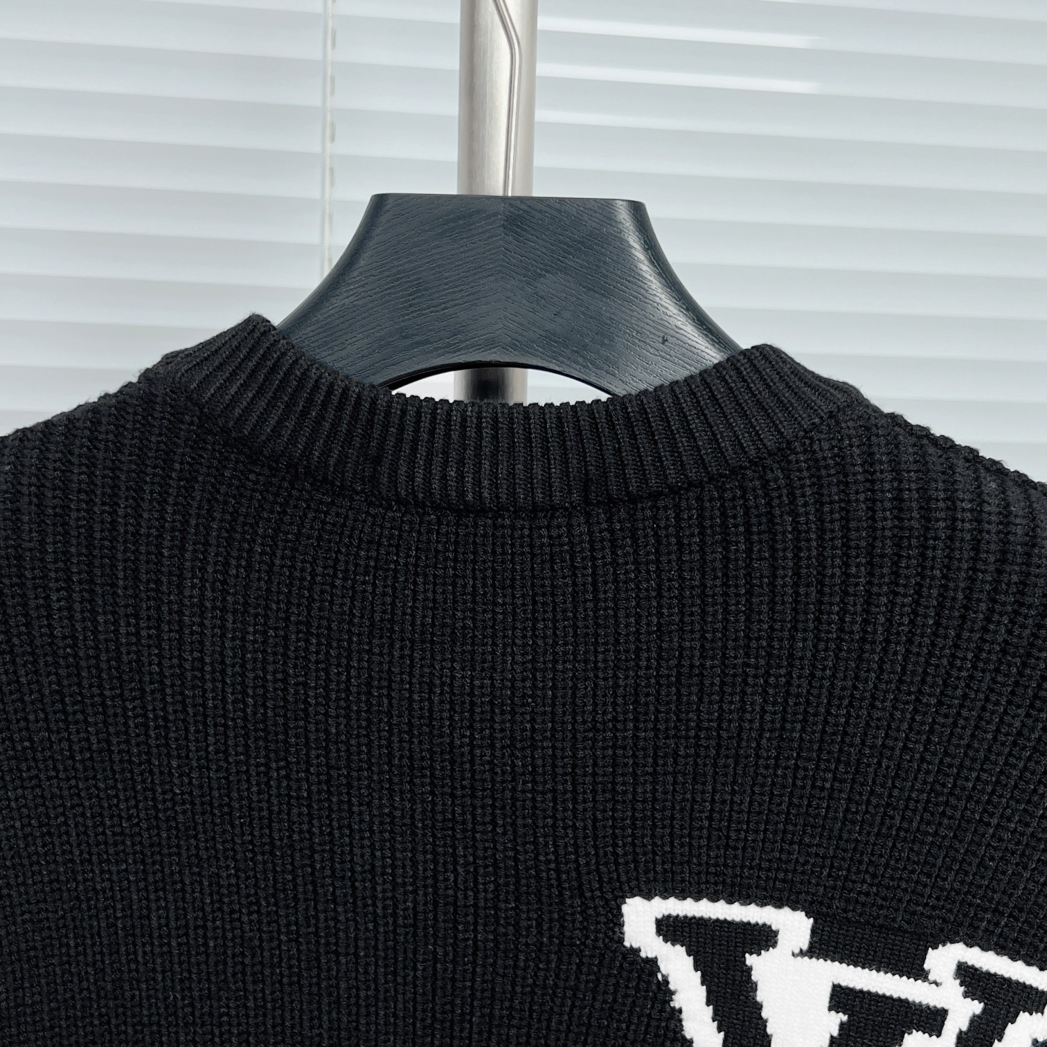 P210 T95#Louis BUTTON 路易威登logo提花针织工艺。简约廓形尽显高级质感,细腻针织面料亲肤舒适,无论是内搭衬衫打造学院风,还是单穿配阔腿裤走极简轻奢路线,都能轻松拿捏优雅氛围感。 纹理感针织提升穿搭层次,宽松版型适配各种身形,可酷飒可随性,是街头潮范与高奢格调的完美融合。 颜色:黑色 白色 码数:XS S M L