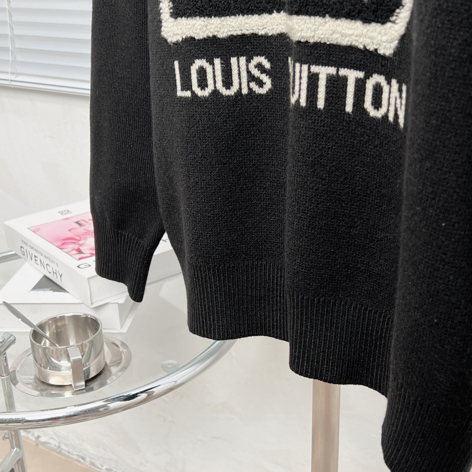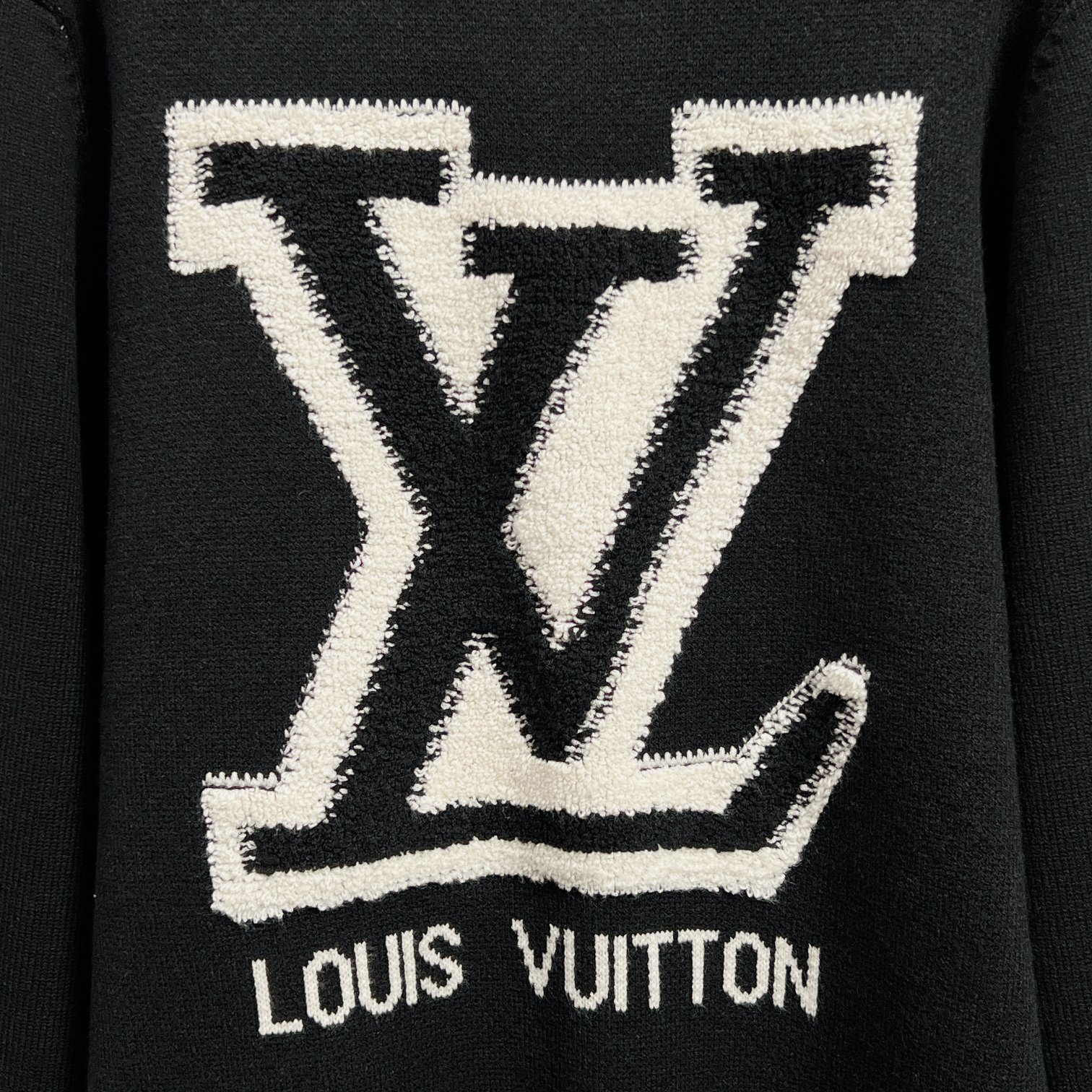 P220 T94#Louis BUTTON 路易威登logo提花针织工艺。简约廓形尽显高级质感,细腻针织面料亲肤舒适,无论是内搭衬衫打造学院风,还是单穿配阔腿裤走极简轻奢路线,都能轻松拿捏优雅氛围感。 立体植绒LV标识极具视觉冲击力,纹理感针织提升穿搭层次,宽松版型适配各种身形,可酷飒可随性,是街头潮范与高奢格调的完美融合。 颜色:黑色 灰色 码数:XS S M L