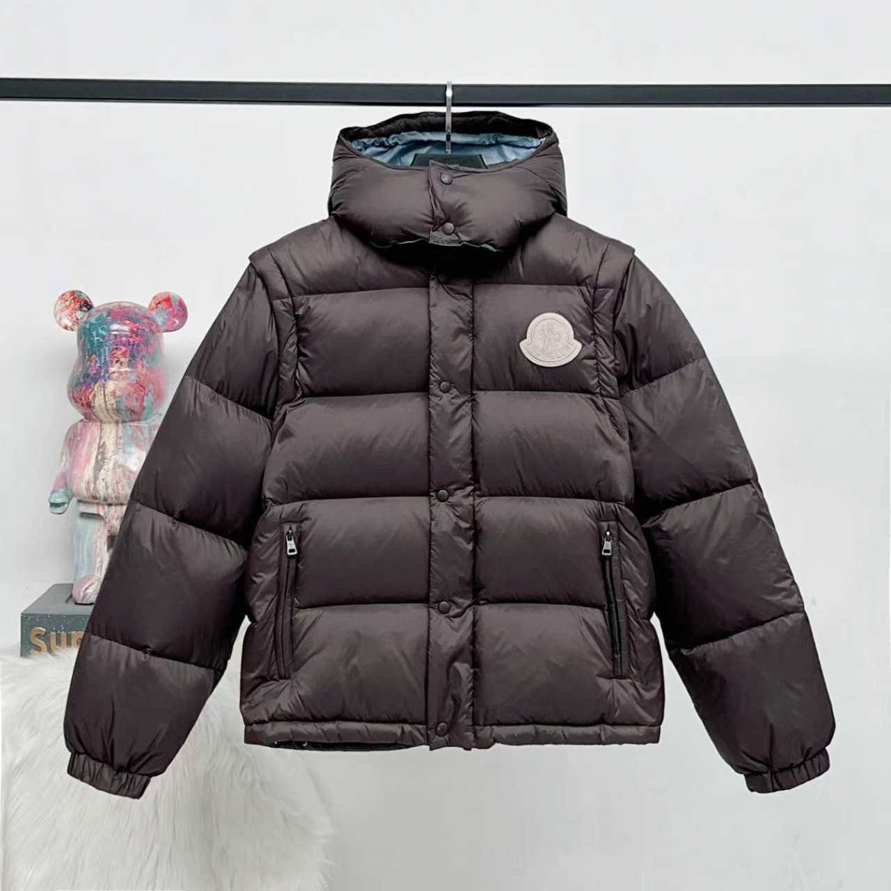 P530 【顶级版本】 大货挂拍图 Moncler Cyclone二合一羽绒夹克外套. 一件轻松过冬.秒变/夹克/连帽马甲/立领马甲/连帽羽绒外套. Cyclone羽绒服搭配可拆卸衣袖,可作为马甲或夹克穿着。 采用焕新的简约版型设计。这款短款羽绒服由尼龙面料制成,衣袖可轻松拆卸,便于将夹克转换为马甲穿着。可拆卸兜帽和撞色衬里为设计锦上添花。 做到了原版Nfc感应式防伪芯片,国标95%纯白鸭绒,市面独家使用顶级羽绒,绝不吹虚鹅绒等一系列的错误理解。运用直充绒技术的完美填充,蓬松质感非常好。轻盈保暖御寒能力提升到了最大限度。原代加工厂出品电镀五金,全部原厂定制,非市场各类复刻版。 款号:5610 颜色:黑色.咖啡色 码数:1.2.3.4.5