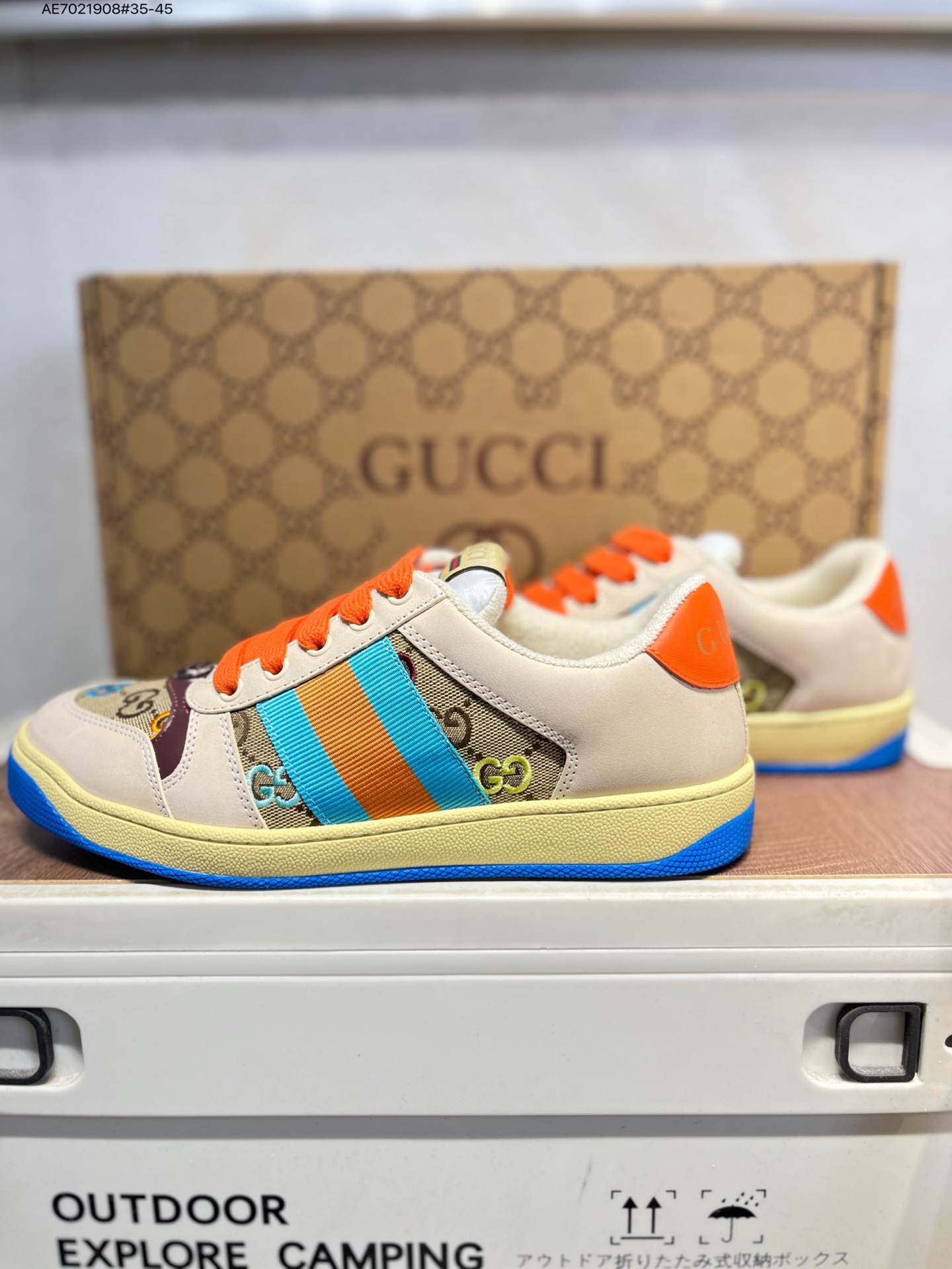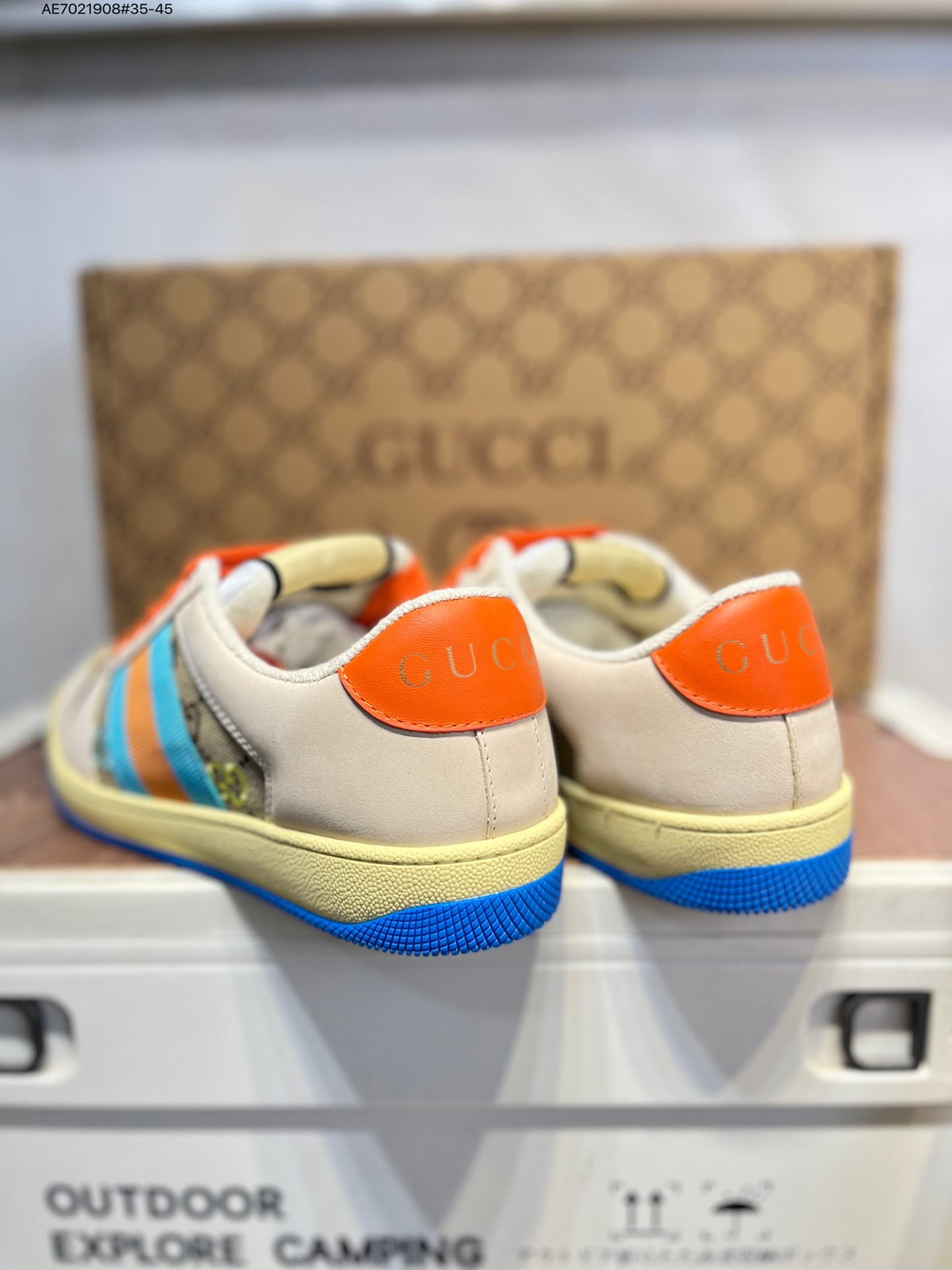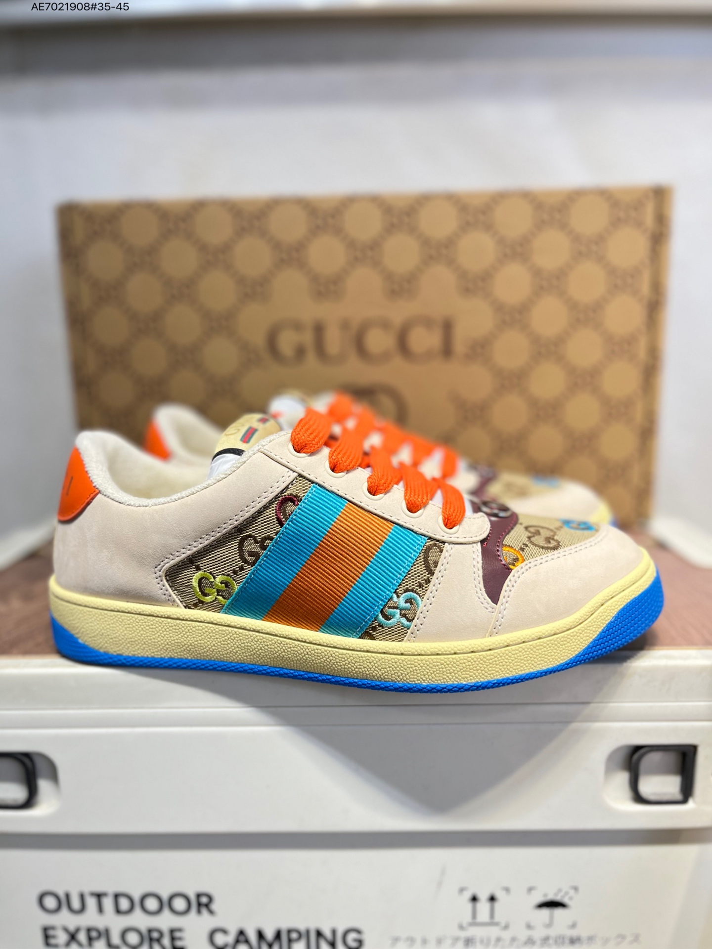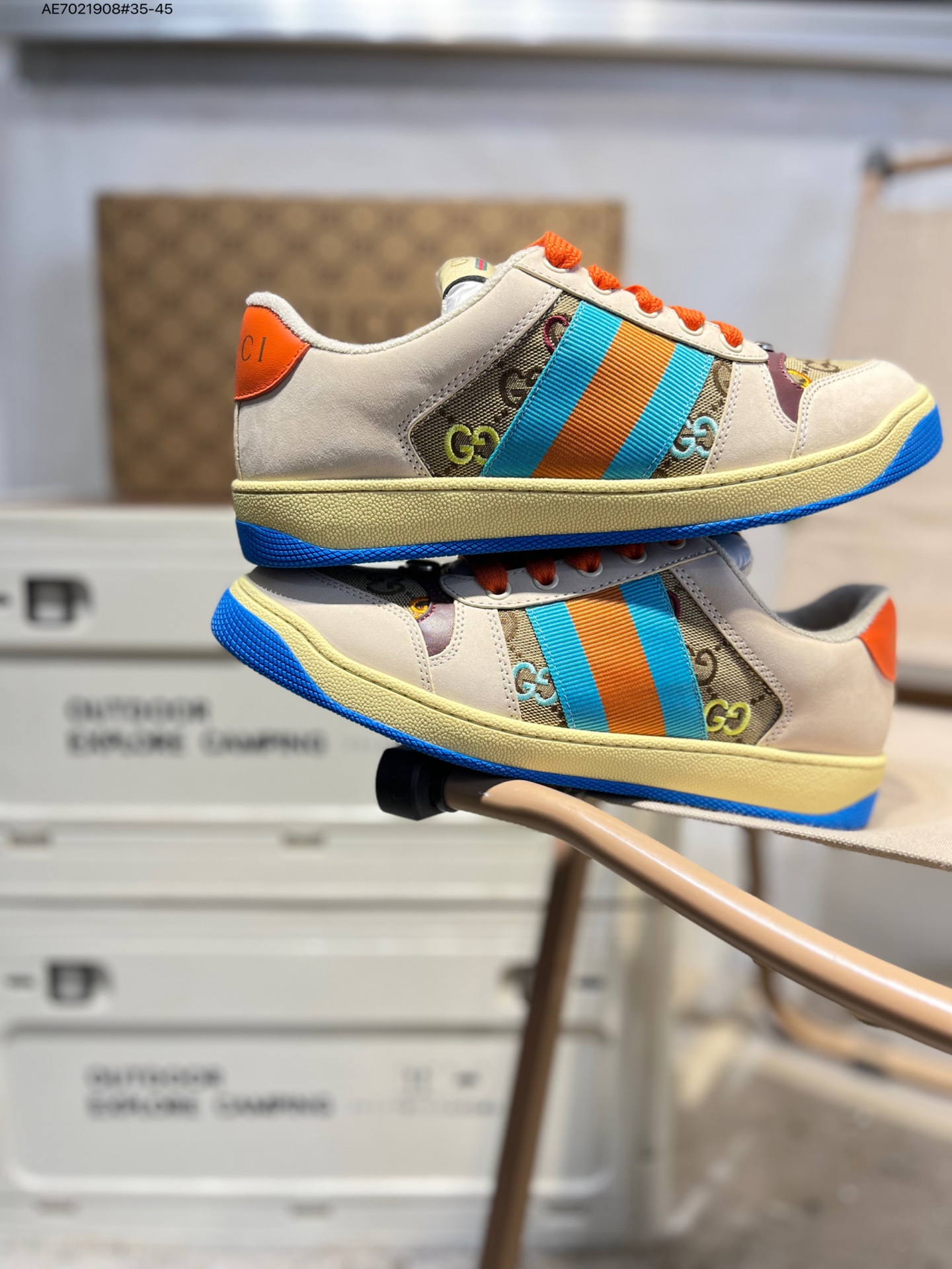放店💰250 广东原厂# Gucci Distressed Screener sneaker古驰经典小脏鞋原型复古百搭老爹板鞋/复古学院风AE7021908#35-45