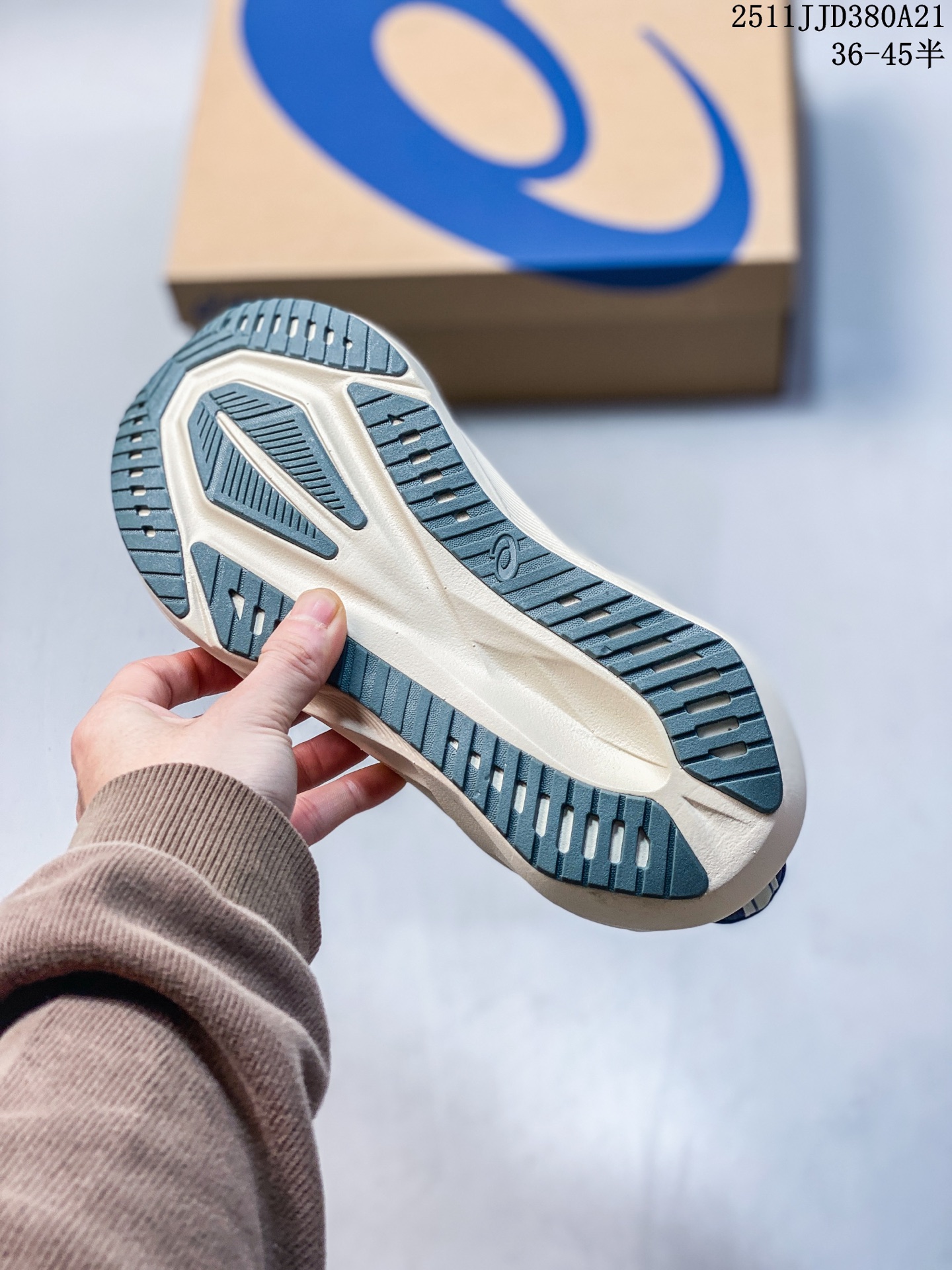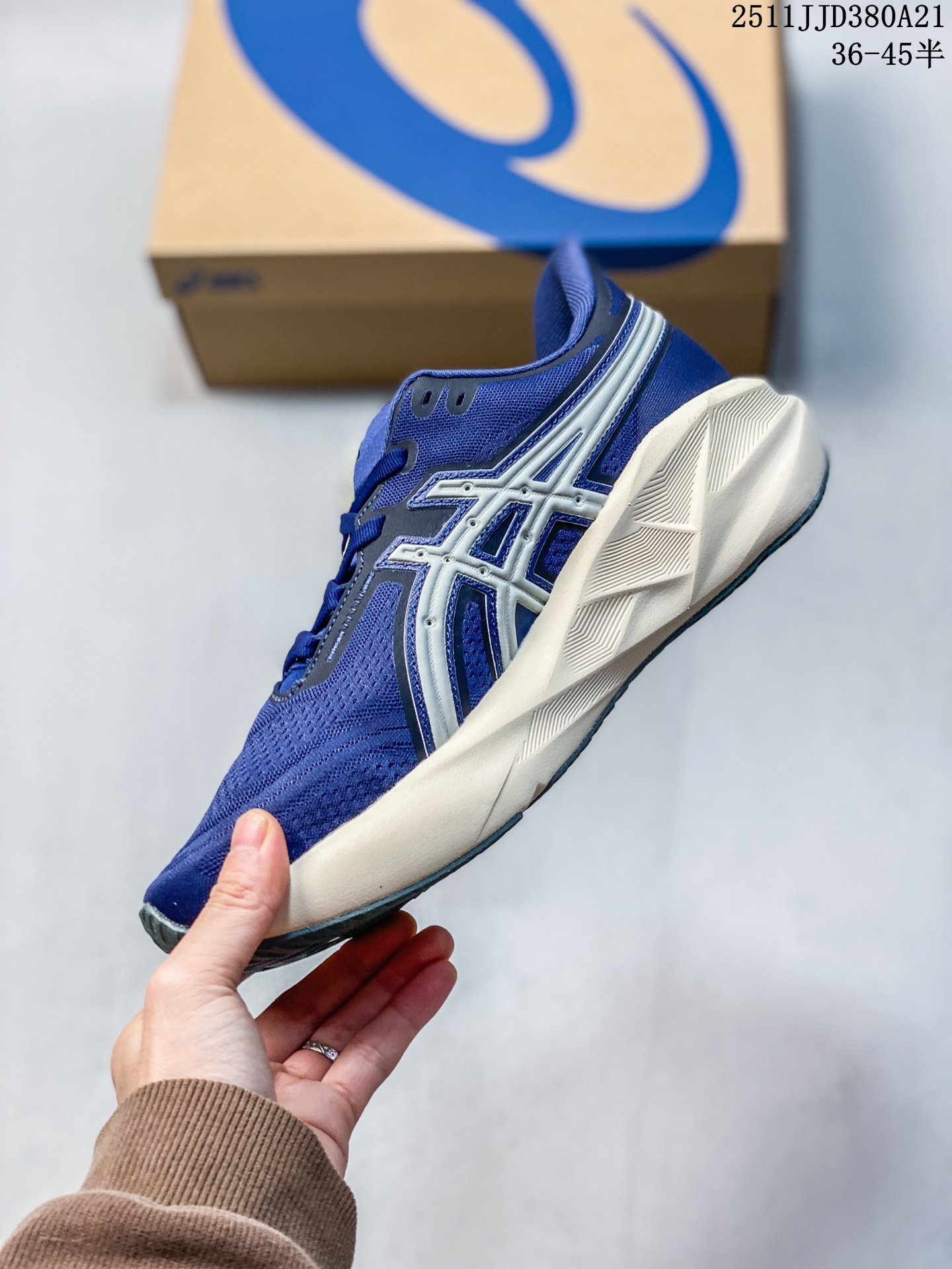 💰130 Asics/亚瑟士 男女鞋半码制,采用人体工学一体式轻质贾卡双层编织鞋面材质,全掌FF BLAST PLUS ECO轻量高能回弹泡棉材料中底,AHAR橡胶,兼顾抓地及耐久性底片❗️颜值与脚感并存,轻!软!耐磨!日本专业跑鞋品牌-亚瑟士/Asics Novavlast 5新星执行者5代系列低帮轻量化厚底有氧运动慢跑鞋 11JJD380A21