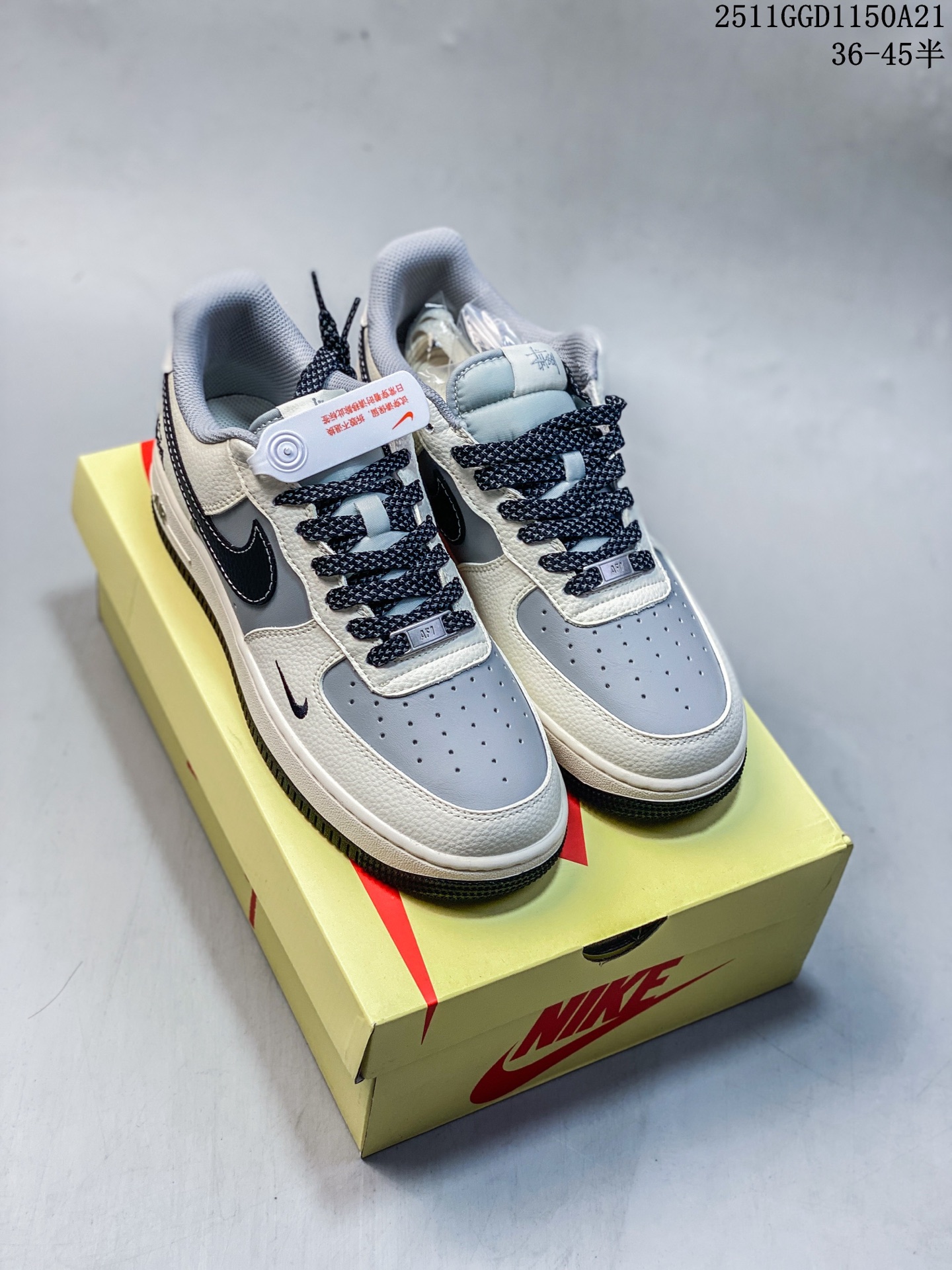 💰240 海外限量发售!公司级NIke Air Force 1 '07 Low “斯图西联名——米黑灰拼接”空军一号 低帮 运动鞋 休闲鞋 折边针车 工艺难度大 原楦头原纸板 原装鞋盒 定制五金配件 内置全掌气垫 原厂鞋底 货号:JS8028-017 Size:36 36.5 37.5 38 38.5 39 40 40.5 41 42 42.5 43 44 44.5 45 11GGD1150A21