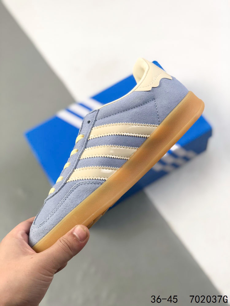 💰120 真标带半码! 阿迪达斯Adidas Gazelle Indoor 三叶草休闲防滑耐磨低帮板鞋 鞋头出色设计 塑就出众贴合感 稳固的后跟贴合足部曲线设计 软弹舒适 不易磨脚 橡胶鞋底配合防滑纹路设计 平稳抓地 尺码:36 36.5 37 38 38.5 39.5 40 49.5 41 42 42.5 43 44 45 ID:702037G