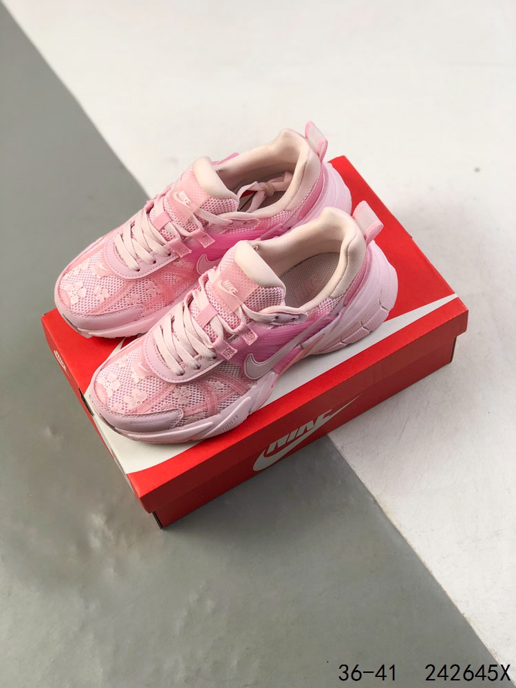 🈴️ 💰150 真标带半码! 耐克 NIKE V2K RUN跑步鞋 复古风潮 网面透气运动鞋 紧致的鞋面材质提供良好的包裹性 鞋侧 Swoosh以及鞋头部分搭配增添不少亮点的镀铬细节 鞋垫上印有Bill Bowerman头像 将细节拉满 中底饰有独特的做旧效果 最后搭载黑色外底 凸显整双鞋的复古气质 ID:242645X