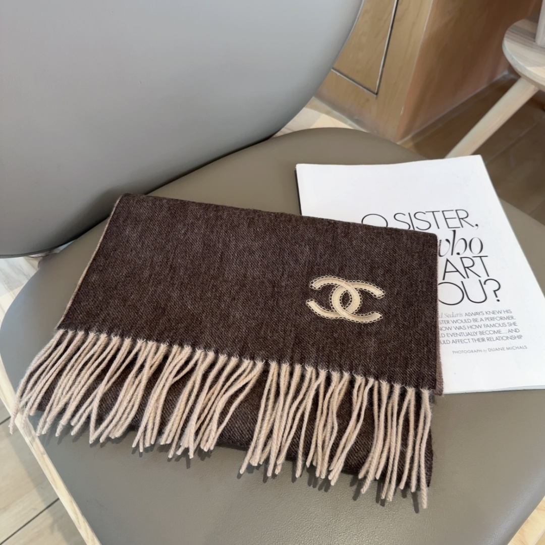 P165 【▪香奈儿· 难得一见的温柔配色,超级迷恋❗️气质低调恬静又不失优雅❗️】重点推荐❗️高级舒适时髦气质,简约却又不简单,大牌范十足,超级安利❗️这款触动内心的柔美围巾,渐变拼色的颜色设计搭配抢眼的镂空经典马车标志,点睛之笔确又不失美感,成功人士的追求,色彩绝对💯❗️有点独有的仙气,绝对的情侣款不二之选,颜色淡雅,不妖娆❗️规格:35 x 180cm❗️