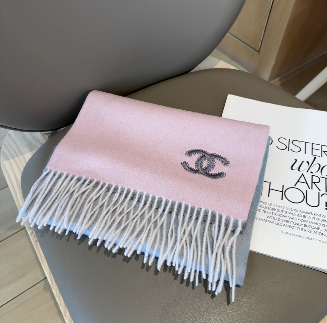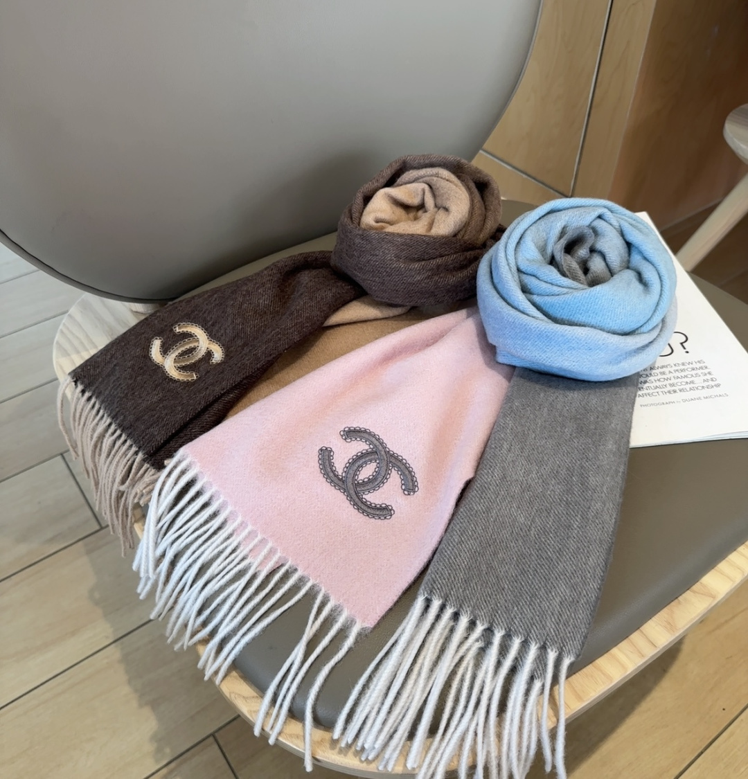 P165 【▪香奈儿· 难得一见的温柔配色,超级迷恋❗️气质低调恬静又不失优雅❗️】重点推荐❗️高级舒适时髦气质,简约却又不简单,大牌范十足,超级安利❗️这款触动内心的柔美围巾,渐变拼色的颜色设计搭配抢眼的镂空经典马车标志,点睛之笔确又不失美感,成功人士的追求,色彩绝对💯❗️有点独有的仙气,绝对的情侣款不二之选,颜色淡雅,不妖娆❗️规格:35 x 180cm❗️