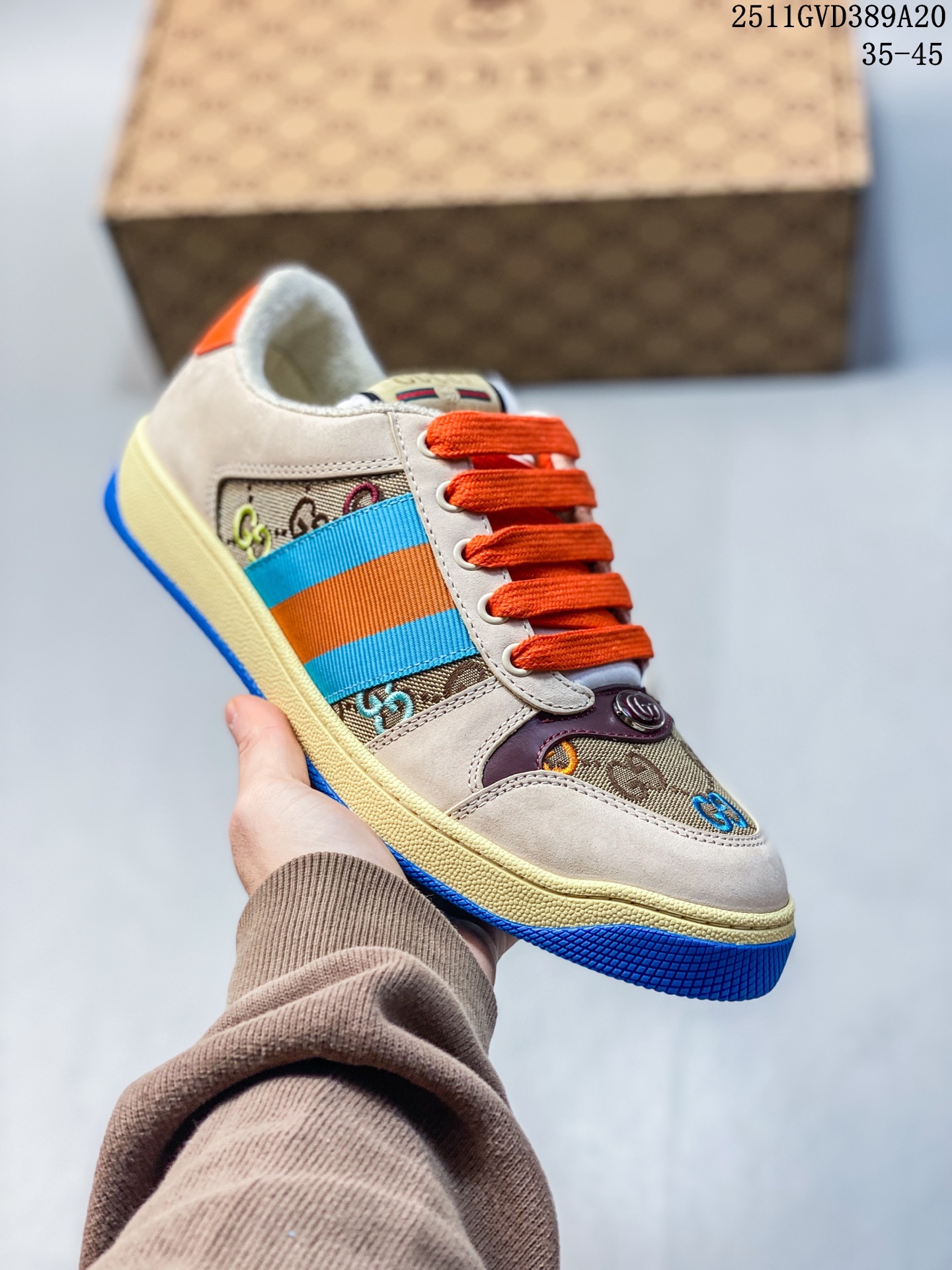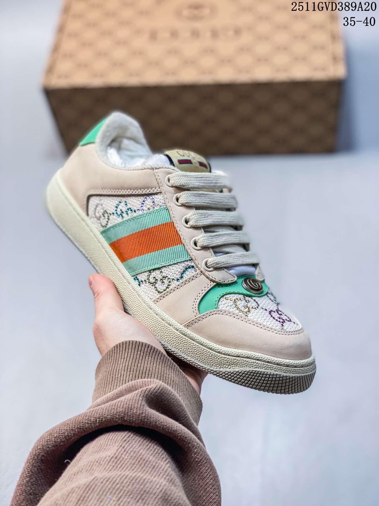 🈴️💰290 广东原装品市售高端版本 Gucci 古驰 Screener 小脏鞋系列 订单官方经典款板鞋 原鞋生产工艺 附送原装一致鞋舌仿磨环保纸垫全套专柜包装物及配件 外盒标嵌入核心防伪芯片装置 意大利进口超软小牛皮+同源出厂真丝绸防尘鞋套袋 原装雪梨形超软沙绒纸团 高工艺无缝细空胶技术 贴楦误差0.05mm 鞋底采用固特异内外锁死工艺 最大限度弯折永不开胶 原鞋一致效果环保无味 11GVD389A20