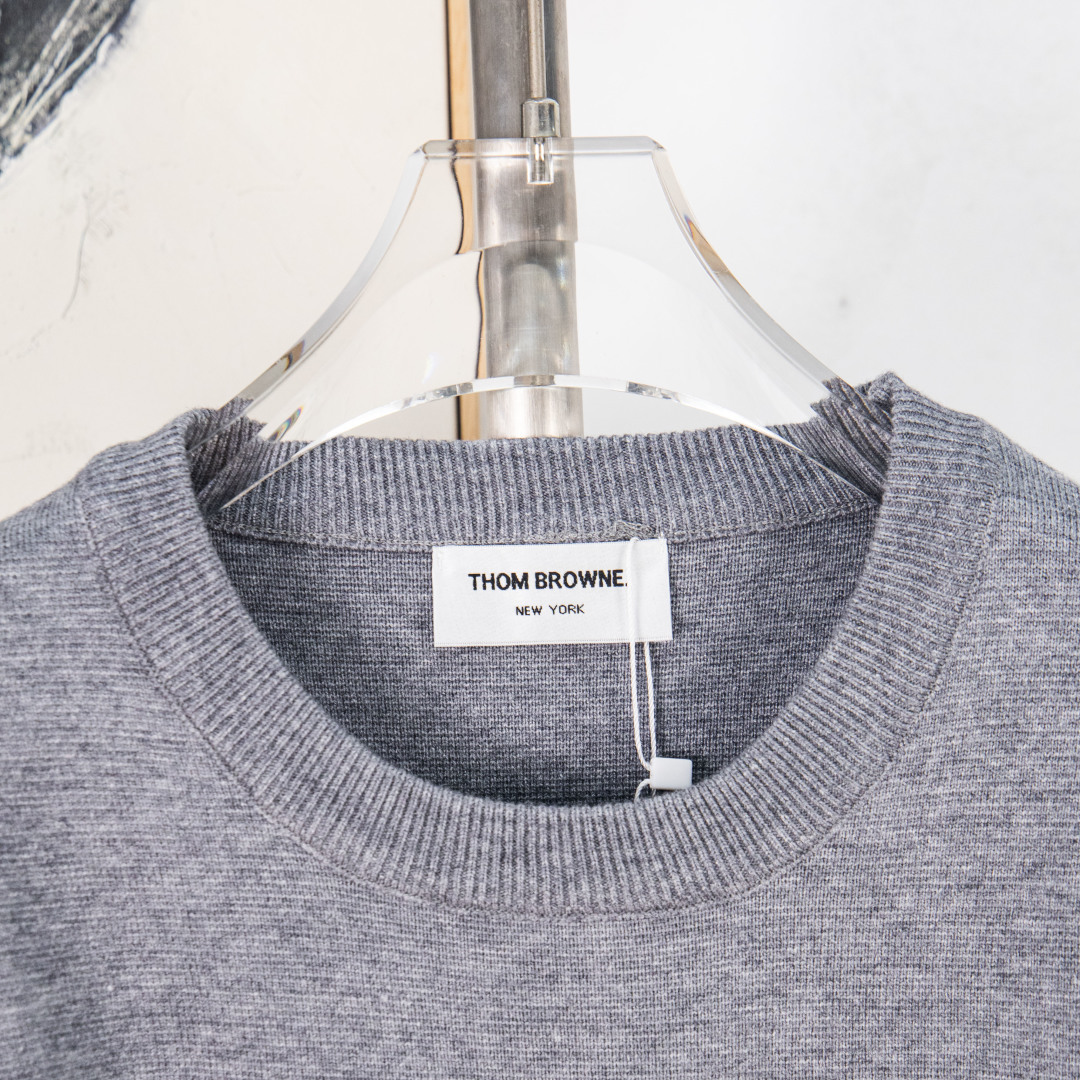 P235 zp版本[独家供应] Thom Browne ➡️汤姆布朗 华夫格圆领毛衣 TB经典四条杠基础风格 年年都穿的经典款必须选择品质⚠️全部对色定染含羊毛的棉纱线,柔软亲肤,双层针织很厚实,手感无敌好,拿到手里就能感受出它的质感❗️❗️随便一套就能出门很万能,盛装出席搭大衣穿着它上班也无违和感!下面搭配牛仔裤或TB系列百褶裙,高级感拿捏,减龄学院风! 颜色:黑 白 灰 淡蓝 尺码:M L XL XXL 编号:YK10556