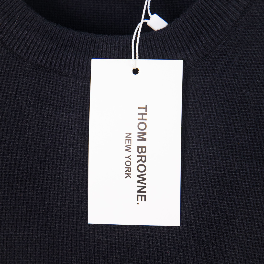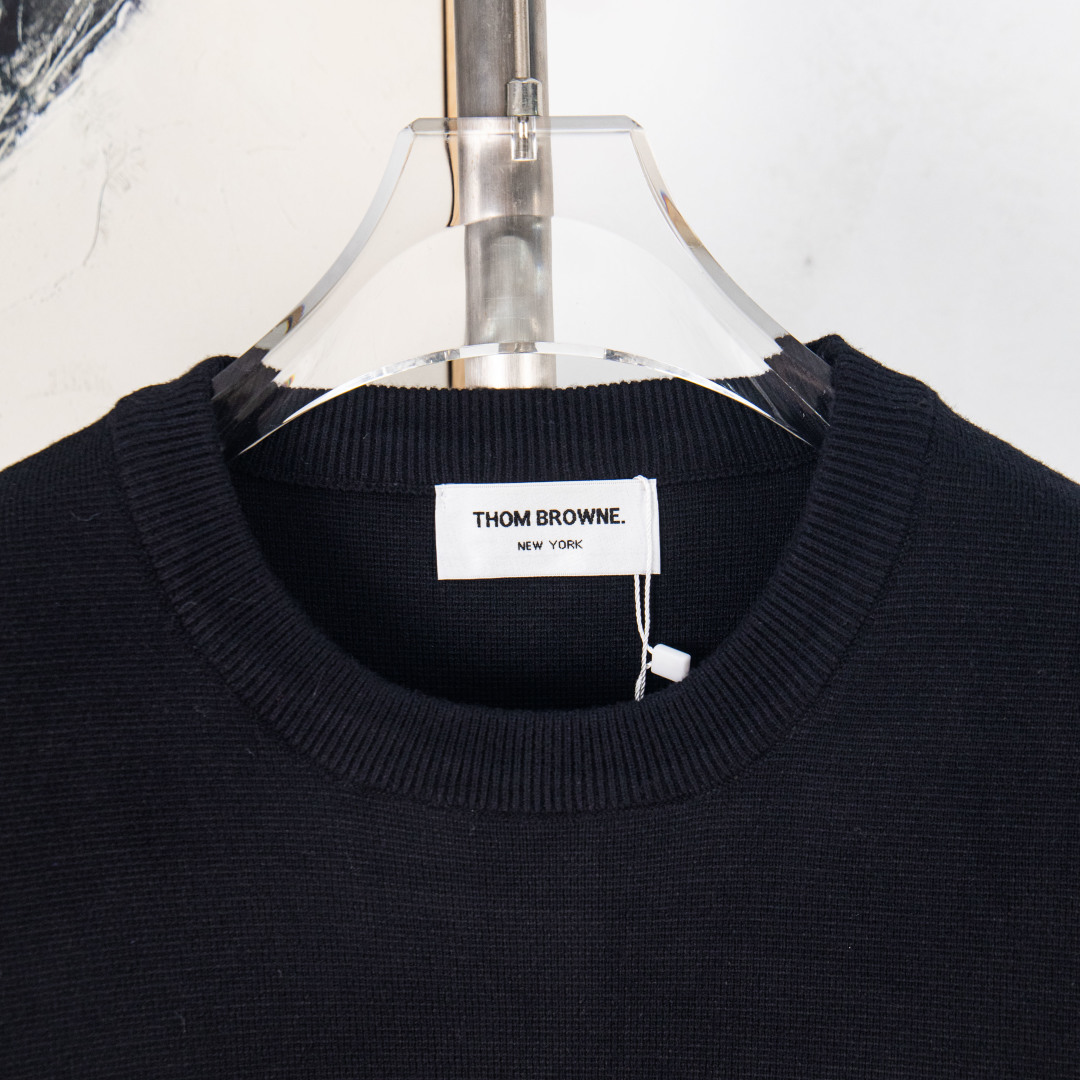 P235 zp版本[独家供应] Thom Browne ➡️汤姆布朗 华夫格圆领毛衣 TB经典四条杠基础风格 年年都穿的经典款必须选择品质⚠️全部对色定染含羊毛的棉纱线,柔软亲肤,双层针织很厚实,手感无敌好,拿到手里就能感受出它的质感❗️❗️随便一套就能出门很万能,盛装出席搭大衣穿着它上班也无违和感!下面搭配牛仔裤或TB系列百褶裙,高级感拿捏,减龄学院风! 颜色:黑 白 灰 淡蓝 尺码:M L XL XXL 编号:YK10553