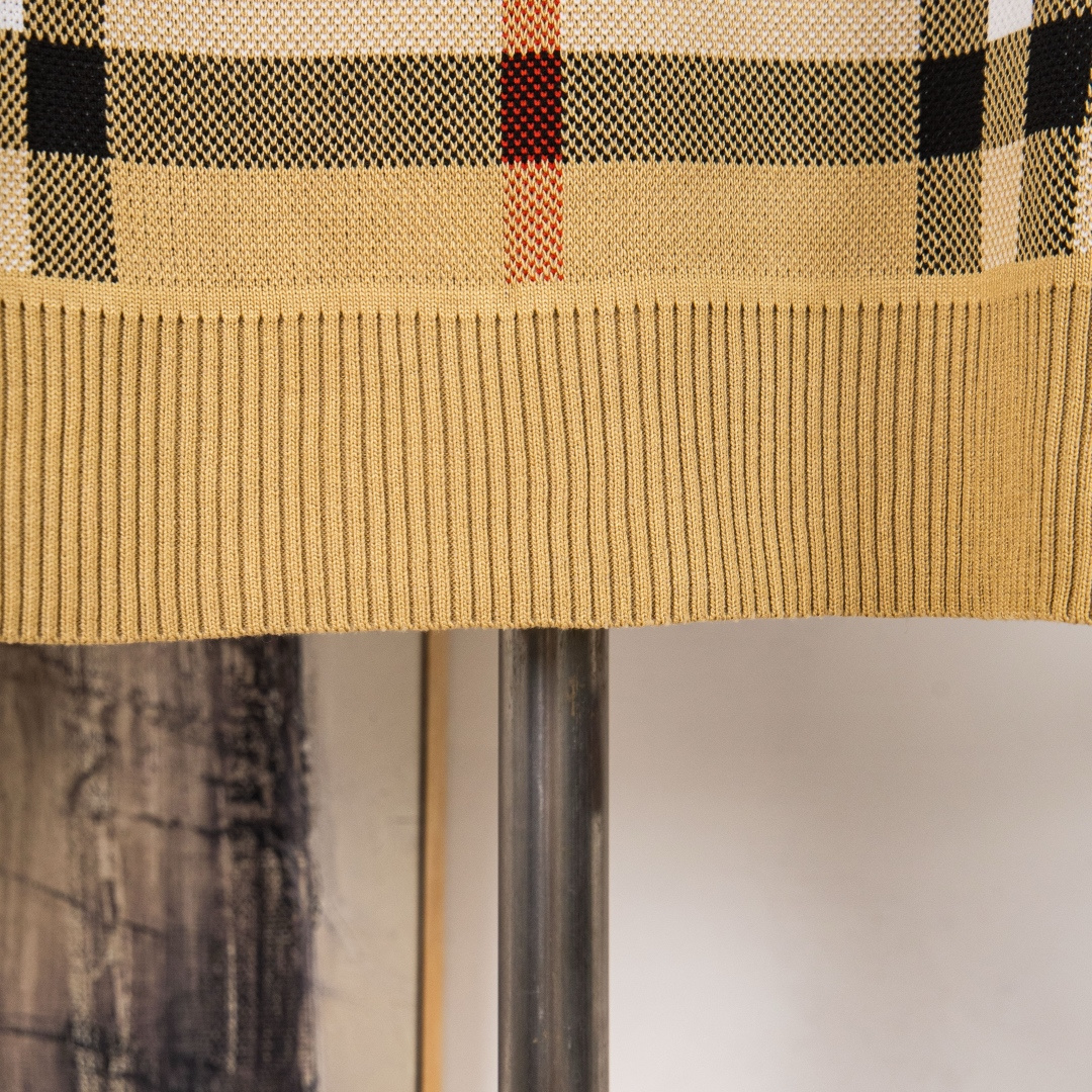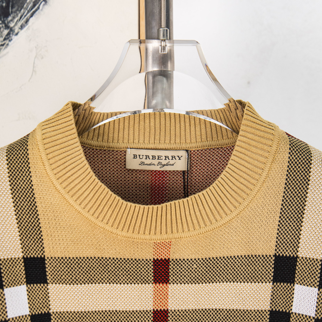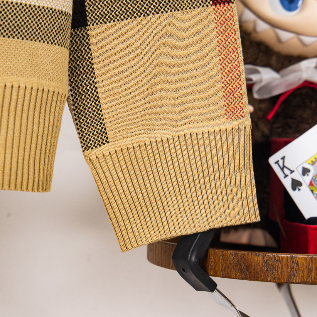 P225 zp版本[独家供应] BURBERRY/巴宝莉 经典拼色格子套头针织毛衣羊毛衫 进口羊毛混纺面料 升级,灵感源自八十年代复古 高级感拿捏 减龄学院风 原版面料 官方同款 圆领 长袖 套装 定制 网纱毛衣针织面料 手感非常舒服 2025ss春夏最新砖柜同步 时尚又个性 超级百搭好看款 男女都非常合适 人手必备款 吊牌 领标 水洗麦 三标齐全 颜色: 卡其色 尺码:M L XL 2XL 编号:YK10550