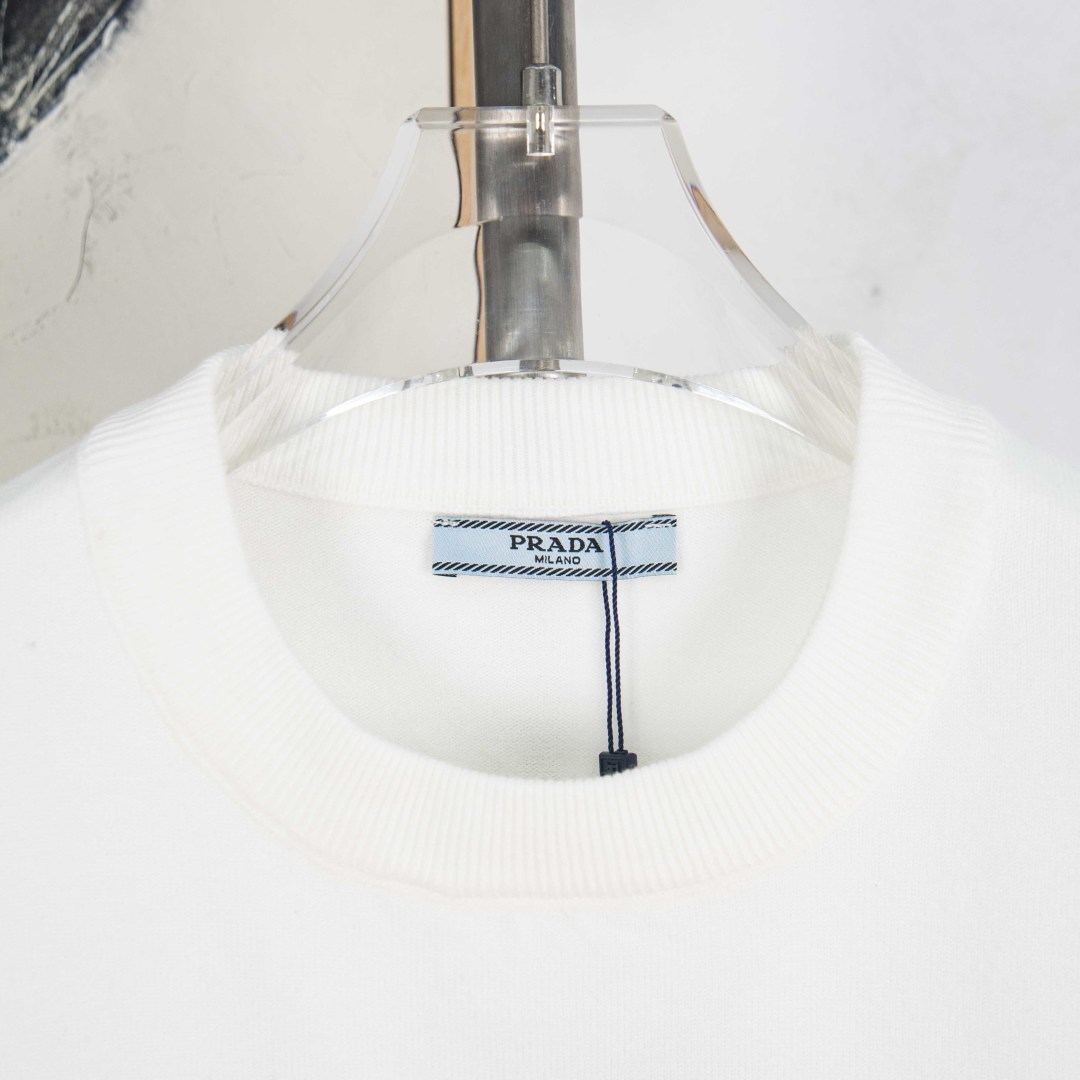 P225 zp版本[独家供应] PRADA/普拉达 2025Fw 经典款胸前徽章logo字母标识 简约休闲套头毛衣羊毛衫 进口羊毛混纺面料 升级,灵感源自八十年代复古 原版面料 官方同款 圆领 长袖 套装 定制 网纱毛衣针织面料 手感非常舒服 春夏最新砖柜同步 时尚又个性 超级百搭好看款 男女都非常合适 人手必备款 吊牌 领标 水洗麦 三标齐全 颜色: 黑 白 灰 尺码:M L XL 2XL 3XL 编号:YK10507