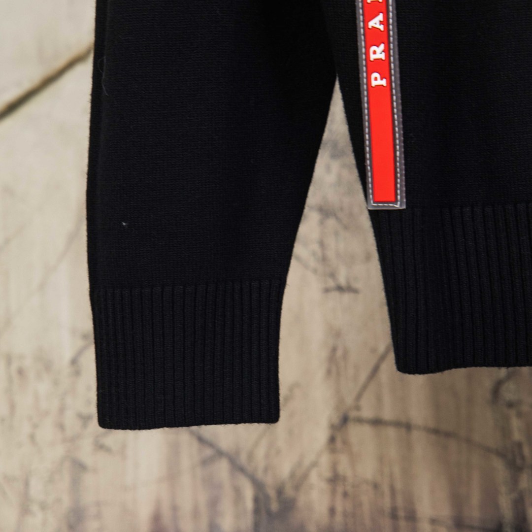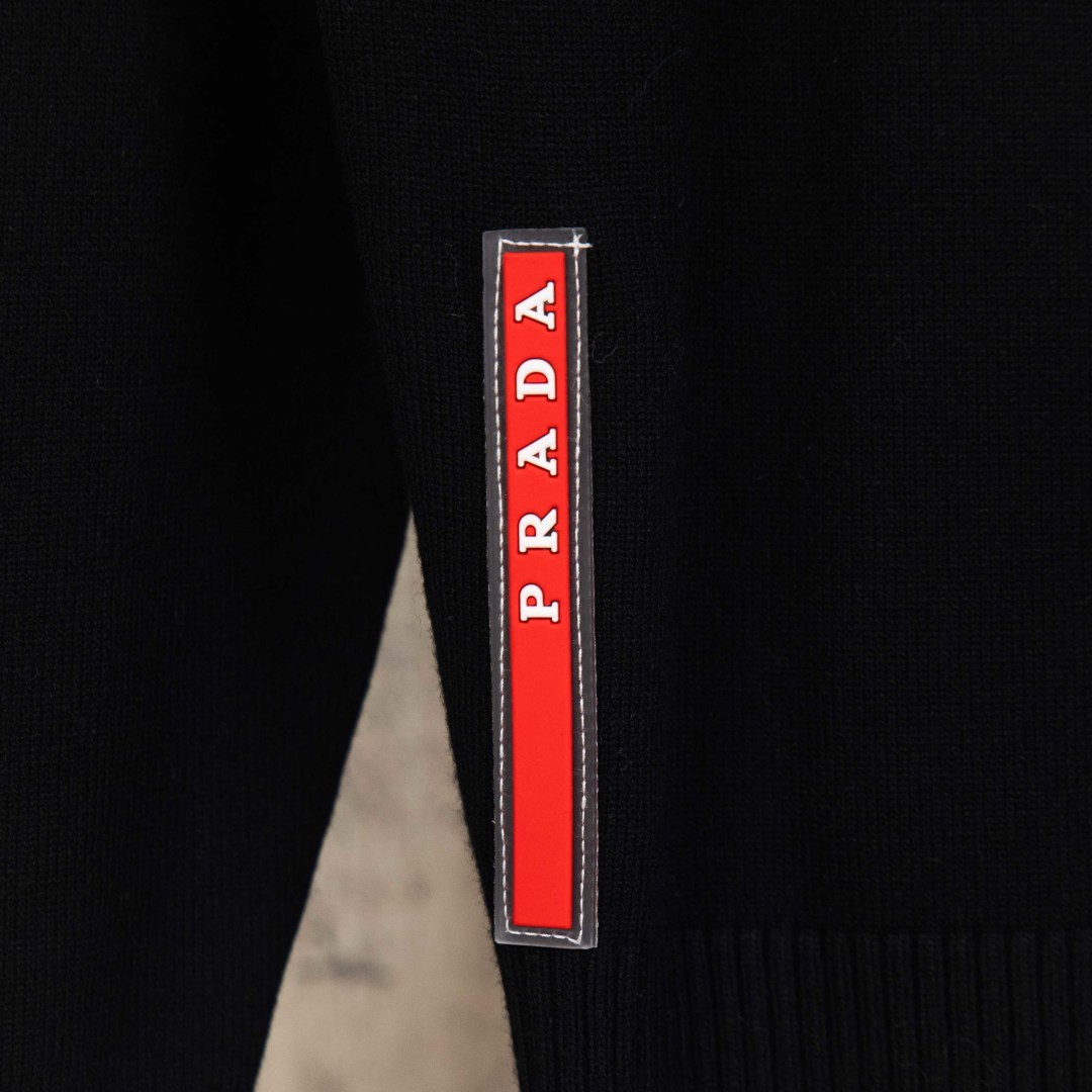 P225 zp版本[独家供应] PRADA/普拉达 2025Fw 经典款胸前徽章logo字母标识小织带 简约休闲套头毛衣羊毛衫 进口羊毛混纺面料 升级,灵感源自八十年代复古 原版面料 官方同款 圆领 长袖 套装 定制 网纱毛衣针织面料 手感非常舒服 春夏最新砖柜同步 时尚又个性 超级百搭好看款 男女都非常合适 人手必备款 吊牌 领标 水洗麦 三标齐全 颜色: 黑 白 灰 尺码:M L XL 2XL 3XL 编号:YK10502
