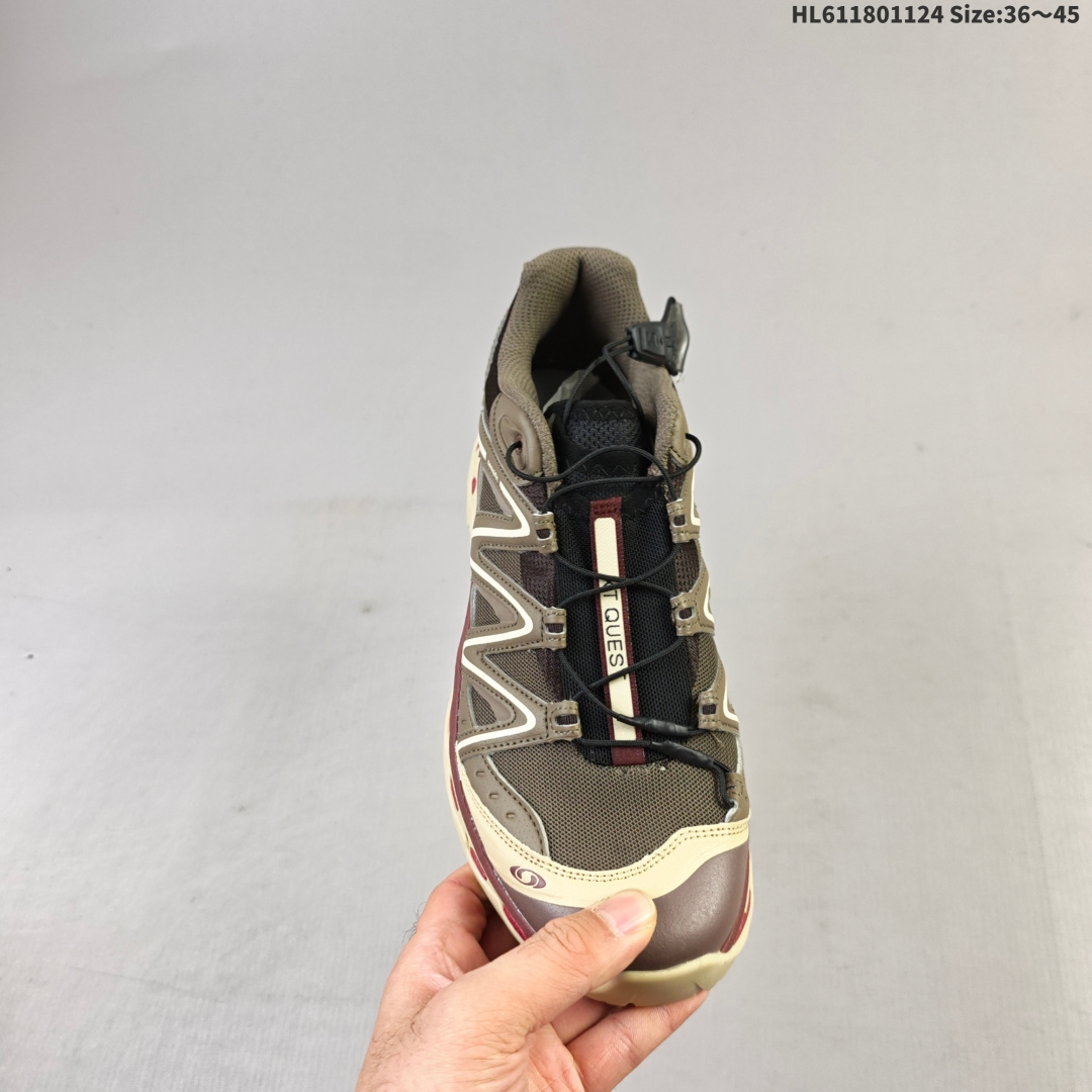 💰180 公司级✅SALOMON萨洛蒙XT-QUEST PANHUI 时尚 舒适減震防滑耐磨 低帮跑步鞋 鞋面采用SENSIFIT贴合技术 全方位贴合包裹脚型 鞋跟部鞋底牵引设计 提供强大的抓地性能 更适应野外崎岖不平的道路 其3D ADVANCED CHASSIS底盘 材料轻量大化 钉齿设计更具稳定性、防护性 鞋底易磨损区运用CONTAGRIP高耐磨材料 应对城市硬质路面长距离跑考验 编码:HL611801124 Size:36~45
