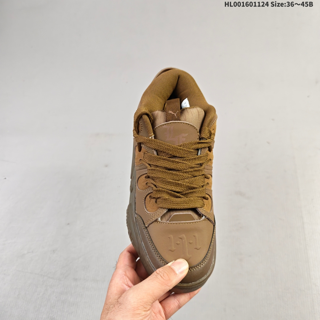 💰160 真标带半码 多版本 LaMelo Ball x Puma LaFrancé 彪马 低帮 联名款 棕色 百搭防滑耐磨低邦生活休闲鞋 这款鞋子是夏洛特黄蜂队当家球星LaMelo Ball与Puma合作推出的联名款,鞋款整体采用透气网布与质感皮革拼接,网布保证双脚随时干爽,皮革则提升了整体的耐用性与支撑力。鞋身线条流畅,鞋舌与鞋后跟处的"1 Of 1"压纹的个人Logo品牌标识,简洁醒目,彰显联名身份;鞋侧立体浮雕式联名Logo,以拉梅洛个人元素重新解构Puma经典跑道标,中底搭载革命性Nitro Foam Rideh缓震科技,将球场爆发力转化为日常步伐的极致舒适,后跟处"Lafrances"家族徽章刺绣,低调彰显鲍尔家族篮球血统。 货号:310465-02HL001601124 Size:36~45B