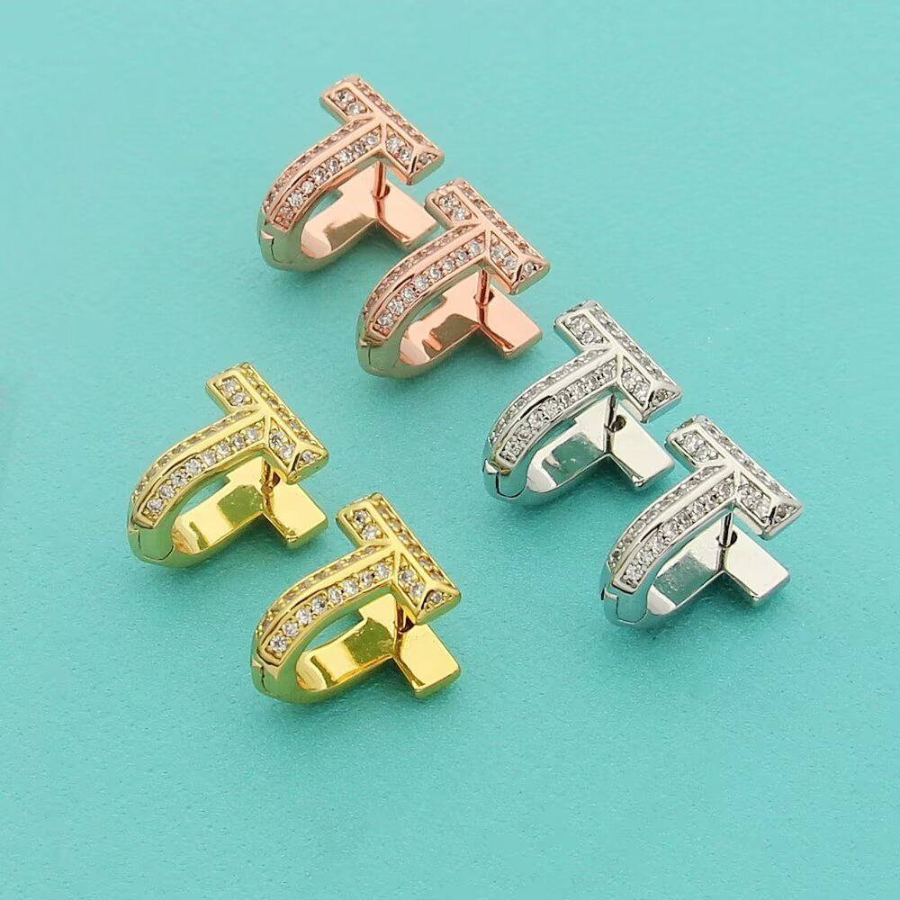 tiff蒂芙尼耳钉U型耳钉 T1系列半铺镶钻易扣耳环满钻 镶嵌明亮式切割钻石大气典雅 亚金电镀厚金 三色28616593035
