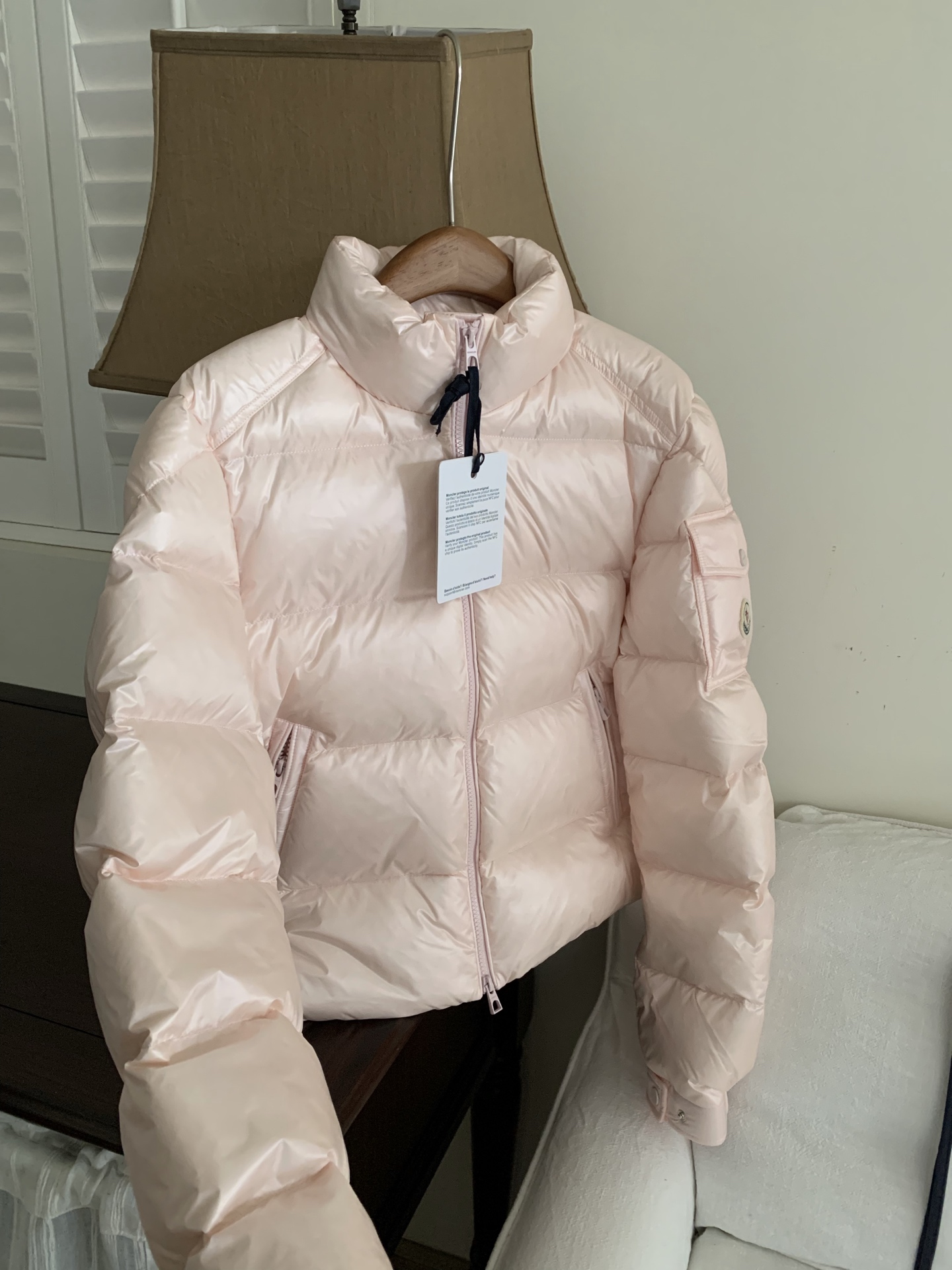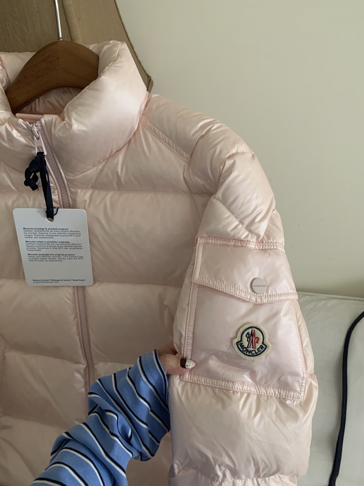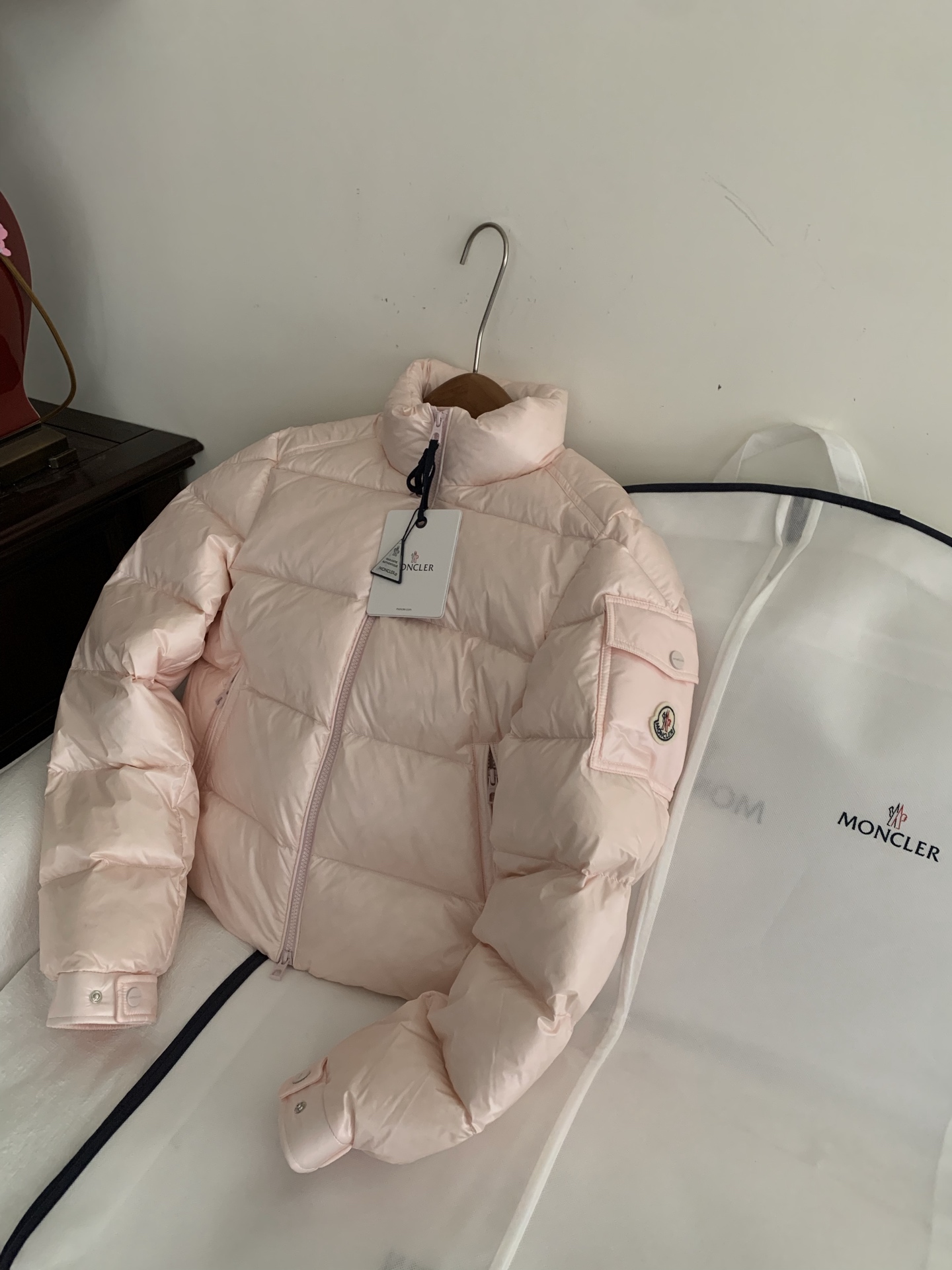 粉色细节. Moncler盟可睐 蒙口Petra系列 鹅绒短款羽绒服女款 填充:90白鹅绒