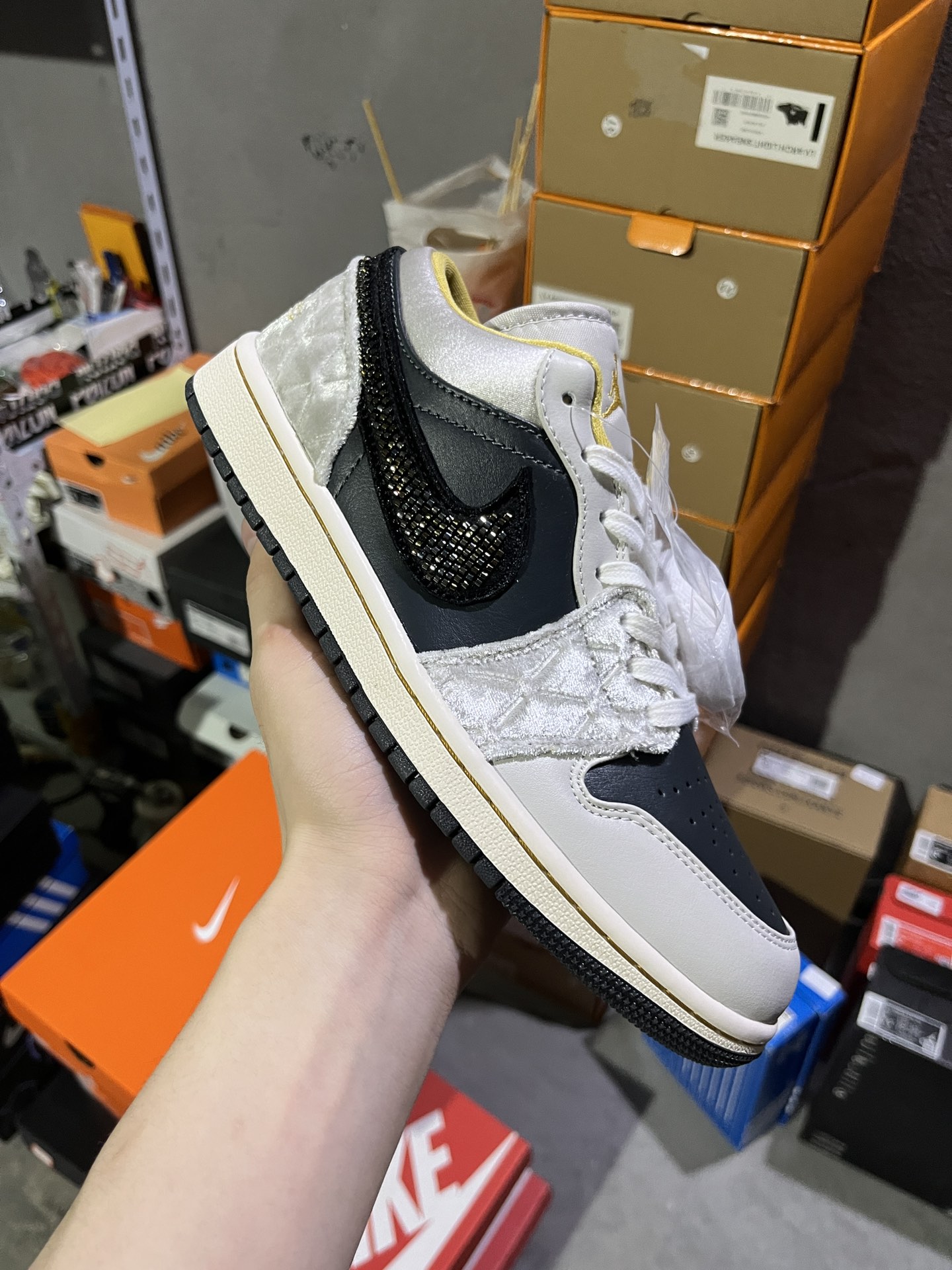 #实拍鉴赏 #仓库随手拍上新 #Y版头层/小DT版 贵色💰100 Jordan Air Jordan 1 low se 绸缎 低帮 复古篮球鞋 男款 黑灰 货号:DV1762-001 尺码:36-45